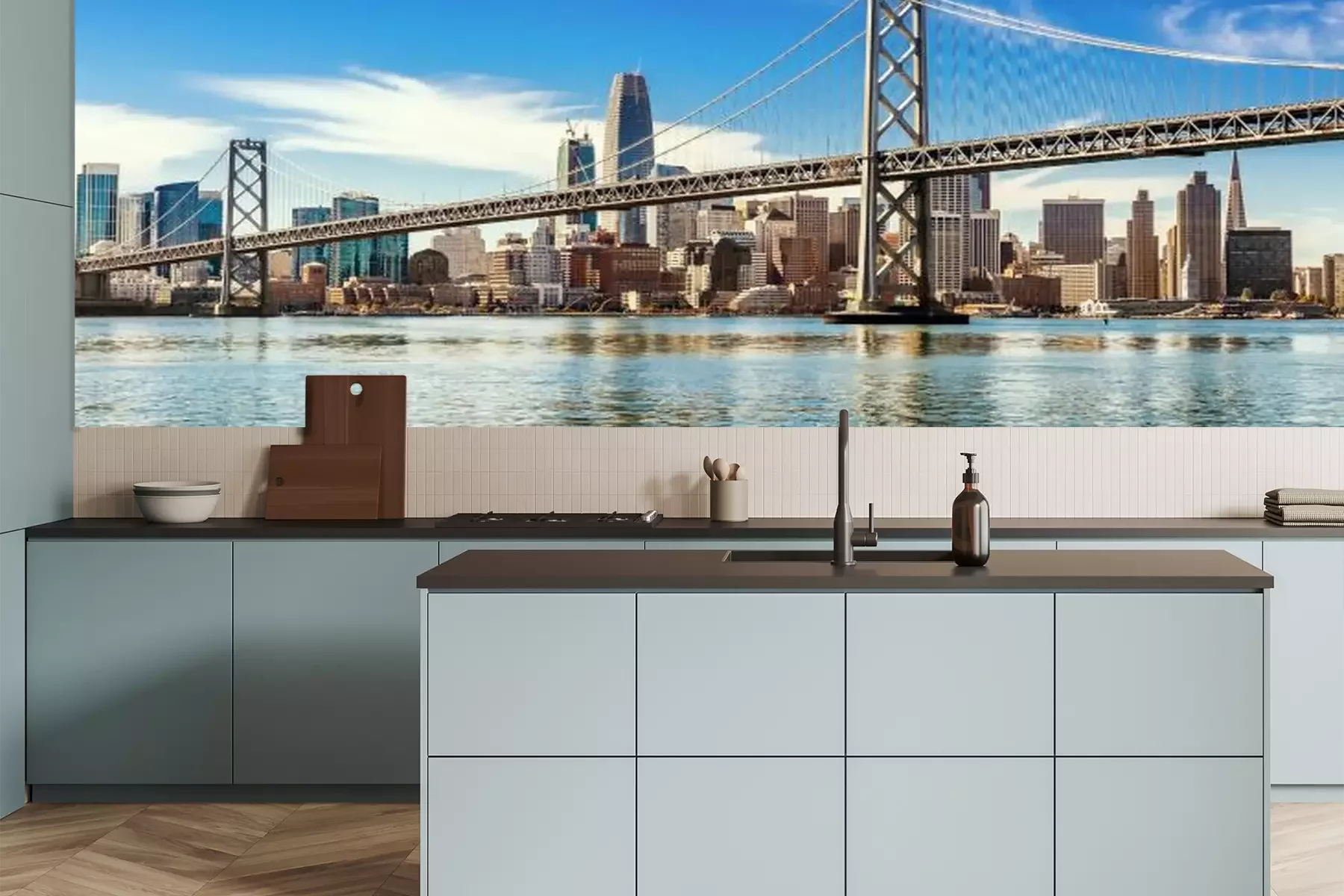 Fotobehang San Francisco-Oakland Bay Bridge met skyline van de stad