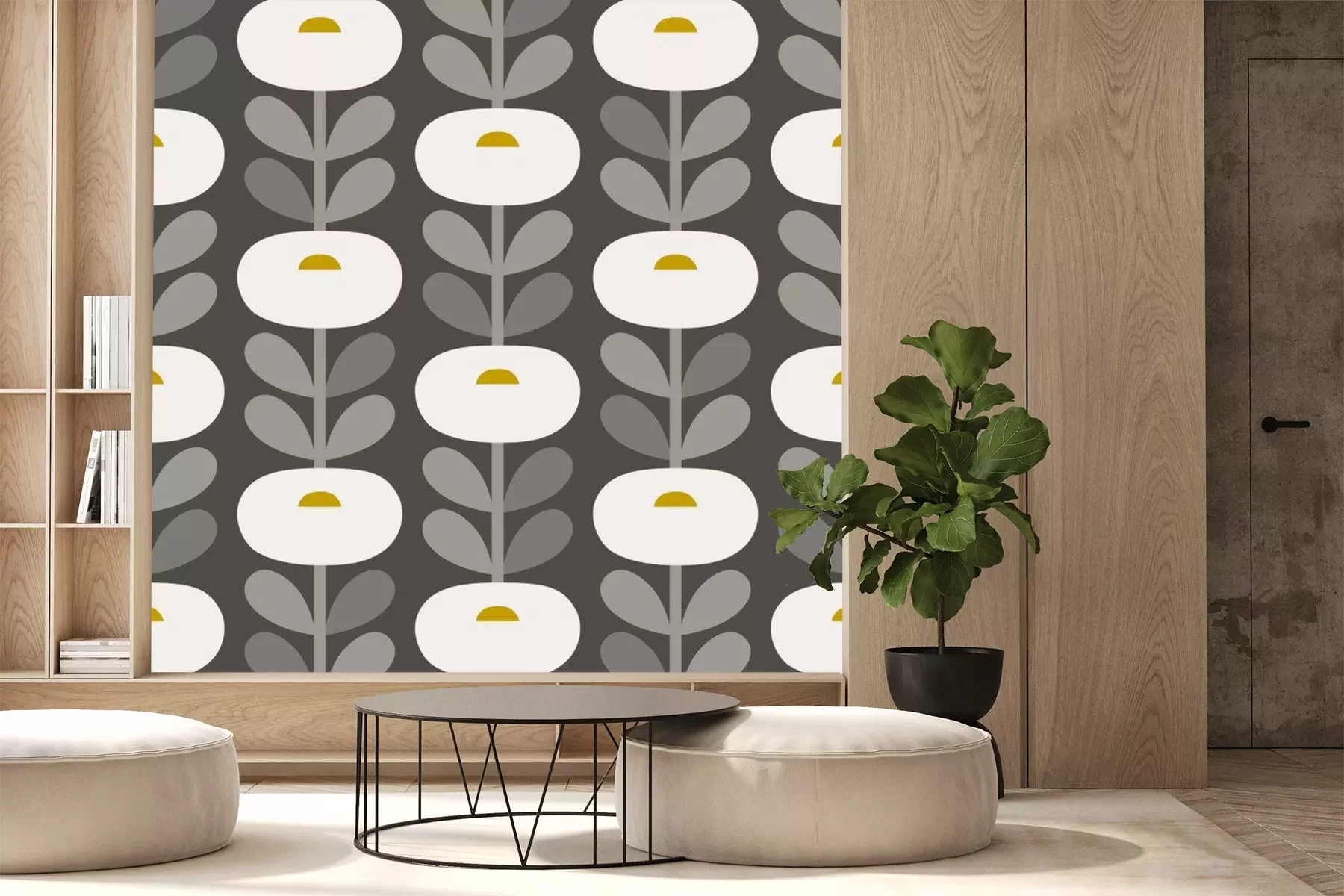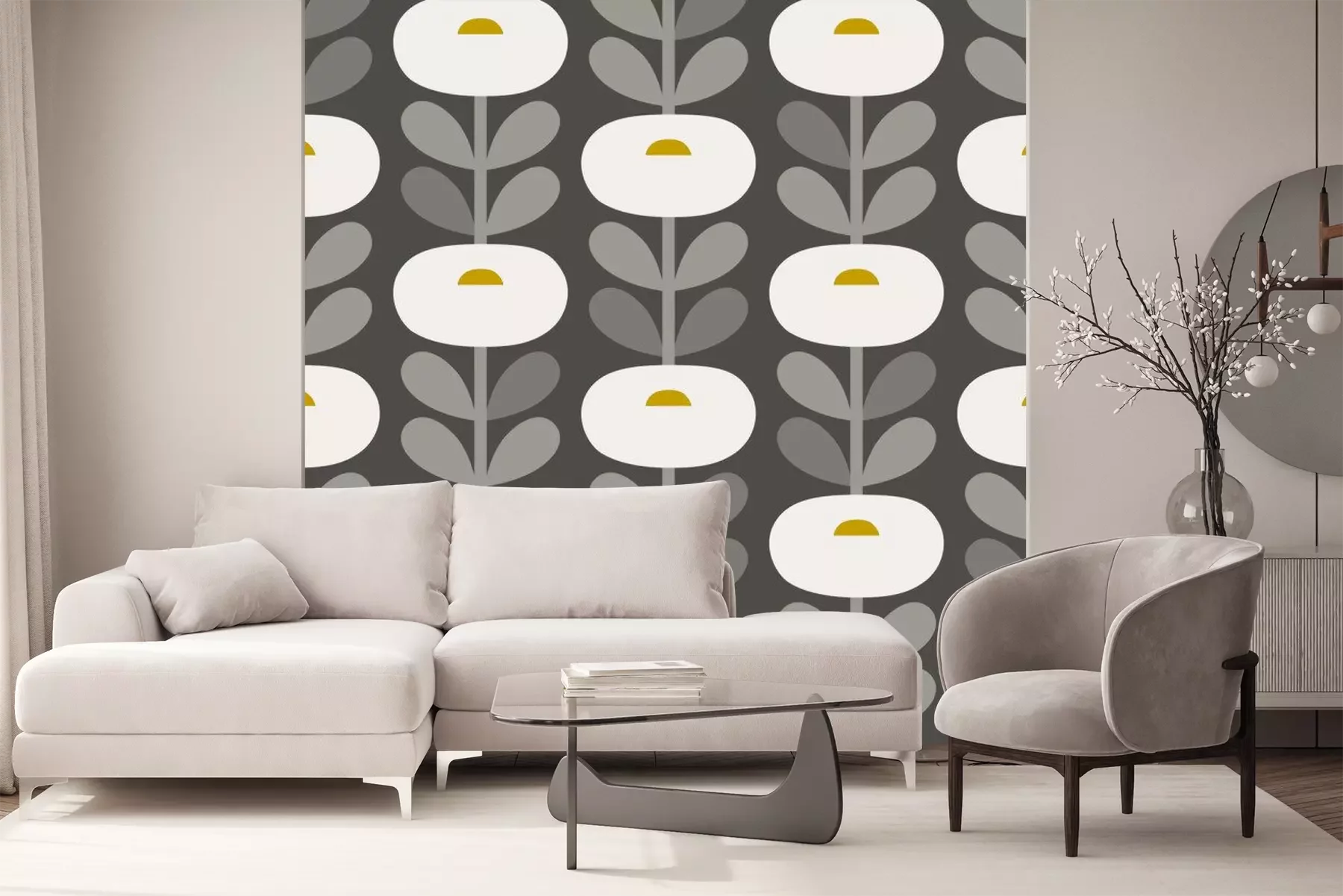 Fotobehang Scandinavian style daisies gray vector seamless pattern.