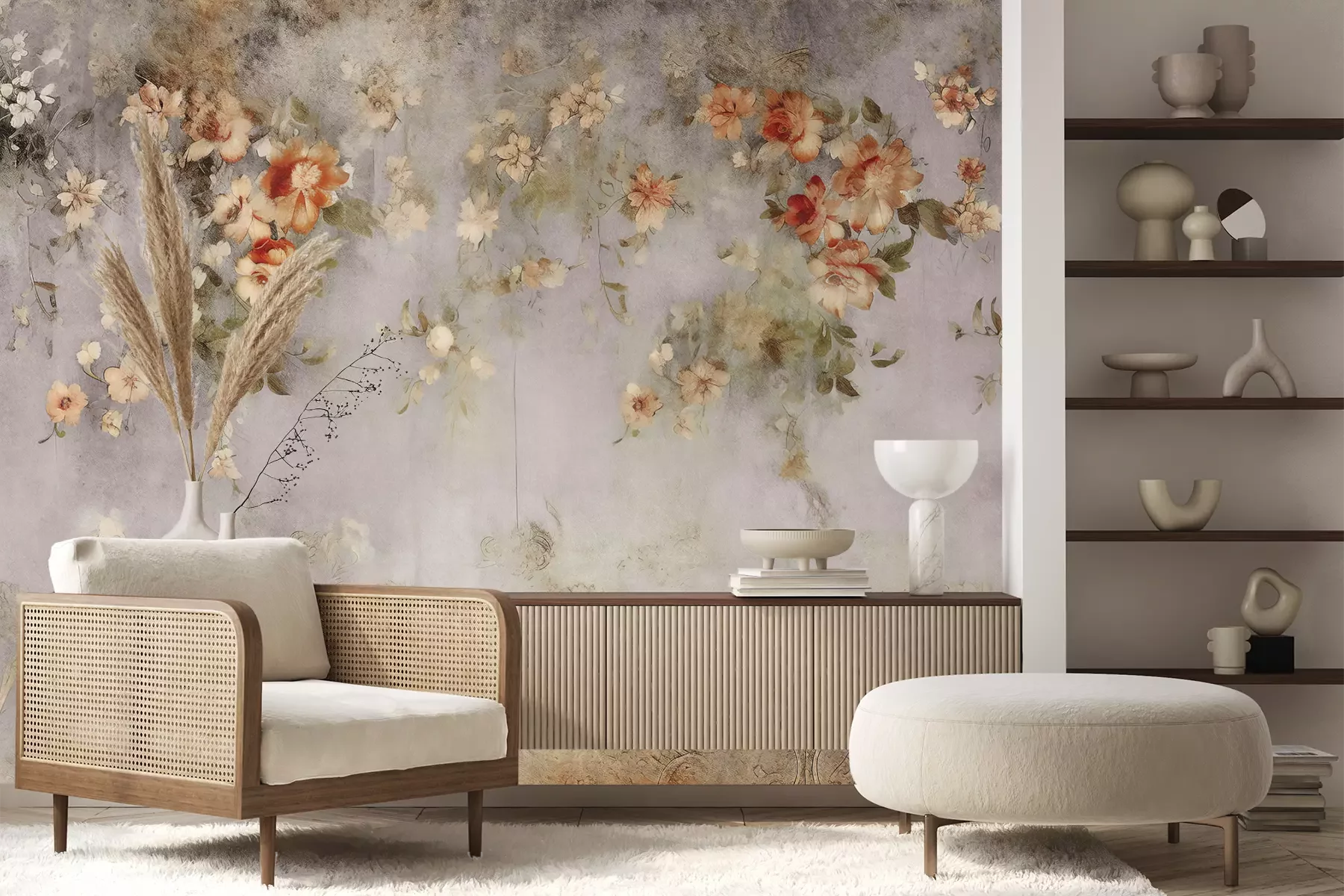 Het materiaal Premium+ is een gestructureerd vinyl op vlies met een gewicht van 255 g/m², dat kleine oneffenheden in de muur effectief camoufleert. De subtiele structuur van fijn zand geeft het oppervlak een exclusieve uitstraling, terwijl de halfmatte afwerking de diepte van de kleuren benadrukt. Het materiaal is dampdoorlatend, waardoor het ook in de keuken en badkamer kan worden gebruikt. De maximale breedte van één baan bedraagt 100 cm – bij grotere afmetingen wordt het fotobehang in meerdere gelijke banen verdeeld. De lijm wordt direct op de muur aangebracht en het behang wordt rand-aan-rand geplakt, wat zorgt voor een esthetisch resultaat zonder zichtbare naden. Het oppervlak kan gemakkelijk worden schoongemaakt door het voorzichtig af te nemen met een vochtige doek.
