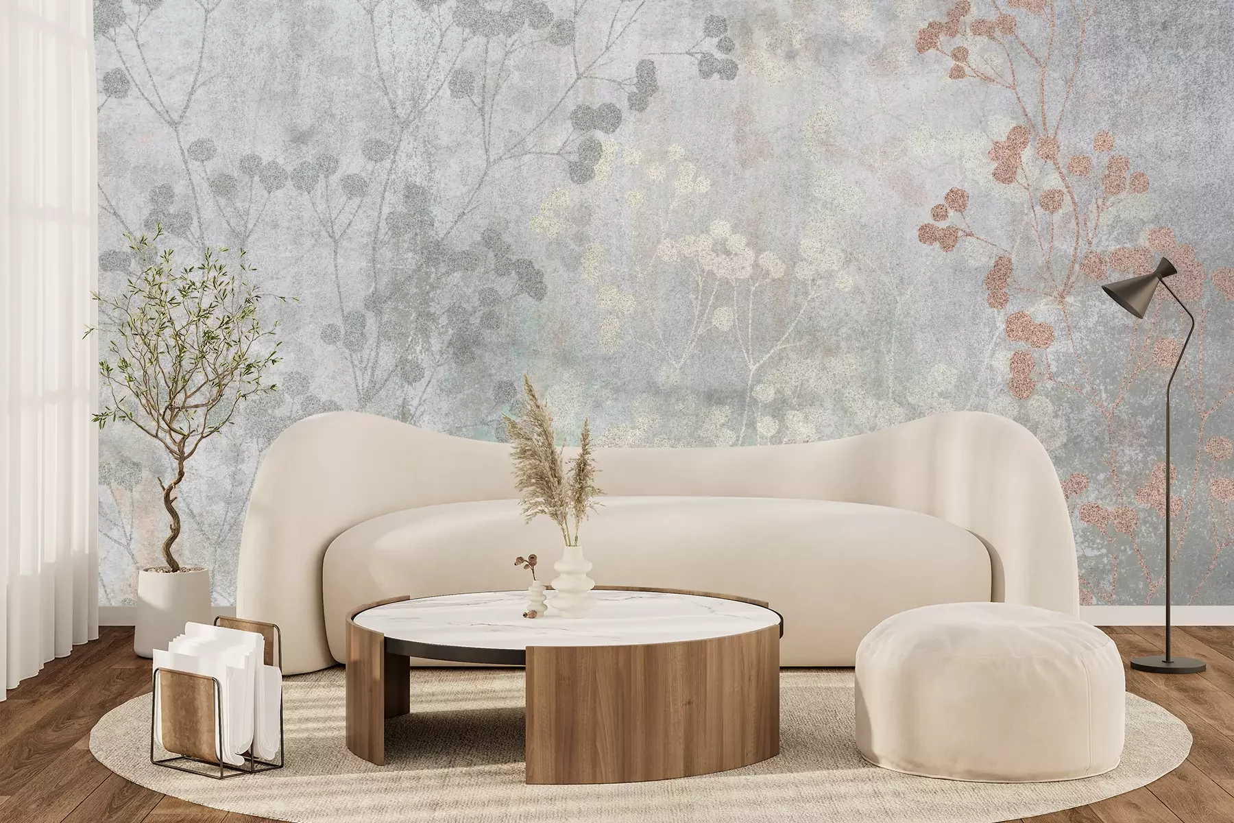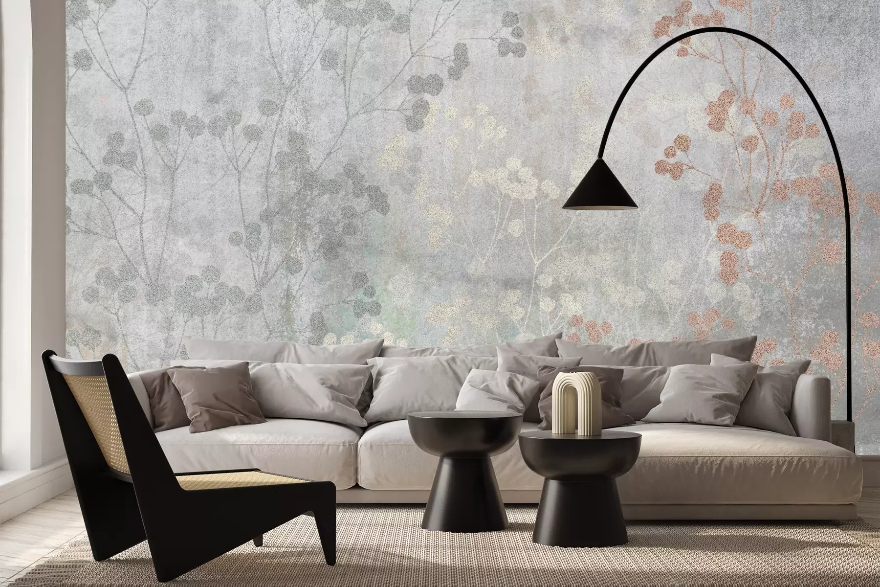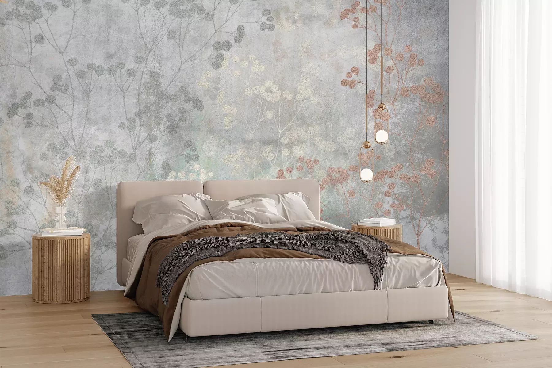 Het materiaal Premium+ is een gestructureerd vinyl op vlies met een gewicht van 255 g/m², dat kleine oneffenheden in de muur effectief camoufleert. De subtiele structuur van fijn zand geeft het oppervlak een exclusieve uitstraling, terwijl de halfmatte afwerking de diepte van de kleuren benadrukt. Het materiaal is dampdoorlatend, waardoor het ook in de keuken en badkamer kan worden gebruikt. De maximale breedte van één baan bedraagt 100 cm – bij grotere afmetingen wordt het fotobehang in meerdere gelijke banen verdeeld. De lijm wordt direct op de muur aangebracht en het behang wordt rand-aan-rand geplakt, wat zorgt voor een esthetisch resultaat zonder zichtbare naden. Het oppervlak kan gemakkelijk worden schoongemaakt door het voorzichtig af te nemen met een vochtige doek.