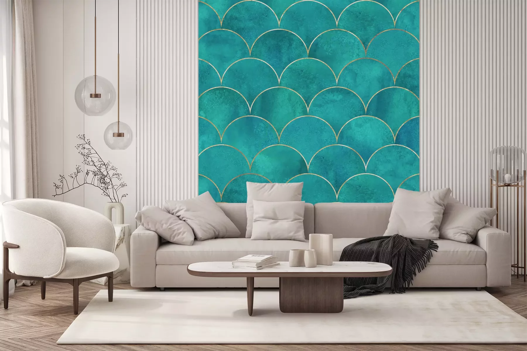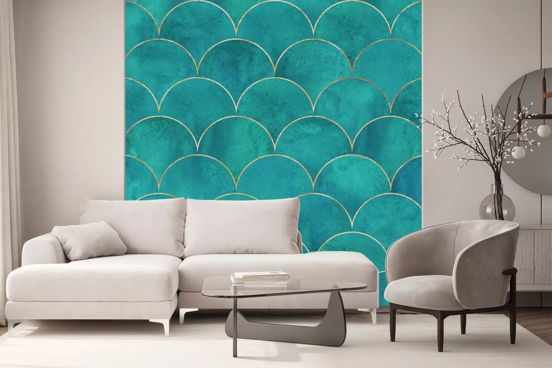 Het materiaal Standard is een hoogwaardig latexmateriaal met een glad, mat oppervlak. Dankzij de HP Latex-printtechnologie zijn de kleuren intens, duurzaam en UV-bestendig, waardoor het patroon jarenlang een onberispelijke uitstraling behoudt. Vervuilde oppervlakken kunnen voorzichtig worden afgeveegd met een droge doek. De maximale breedte van één baan bedraagt 95 cm of 105 cm – afhankelijk van de bestelde fotobehangbreedte. Bij grotere afmetingen wordt het patroon verdeeld over meerdere gelijkmatige banen. Het fotobehang wordt rand-aan-randaangebracht, wat vrijwel onzichtbare naden mogelijk maakt.