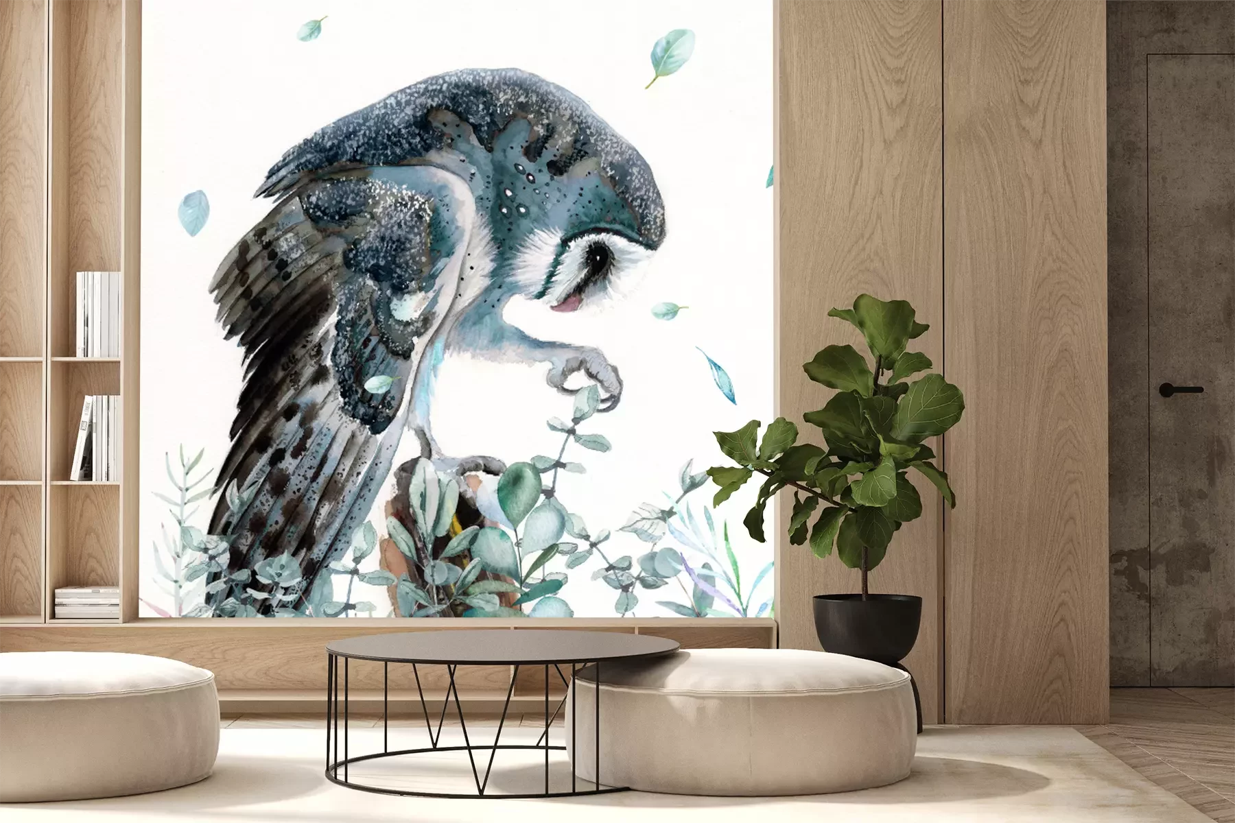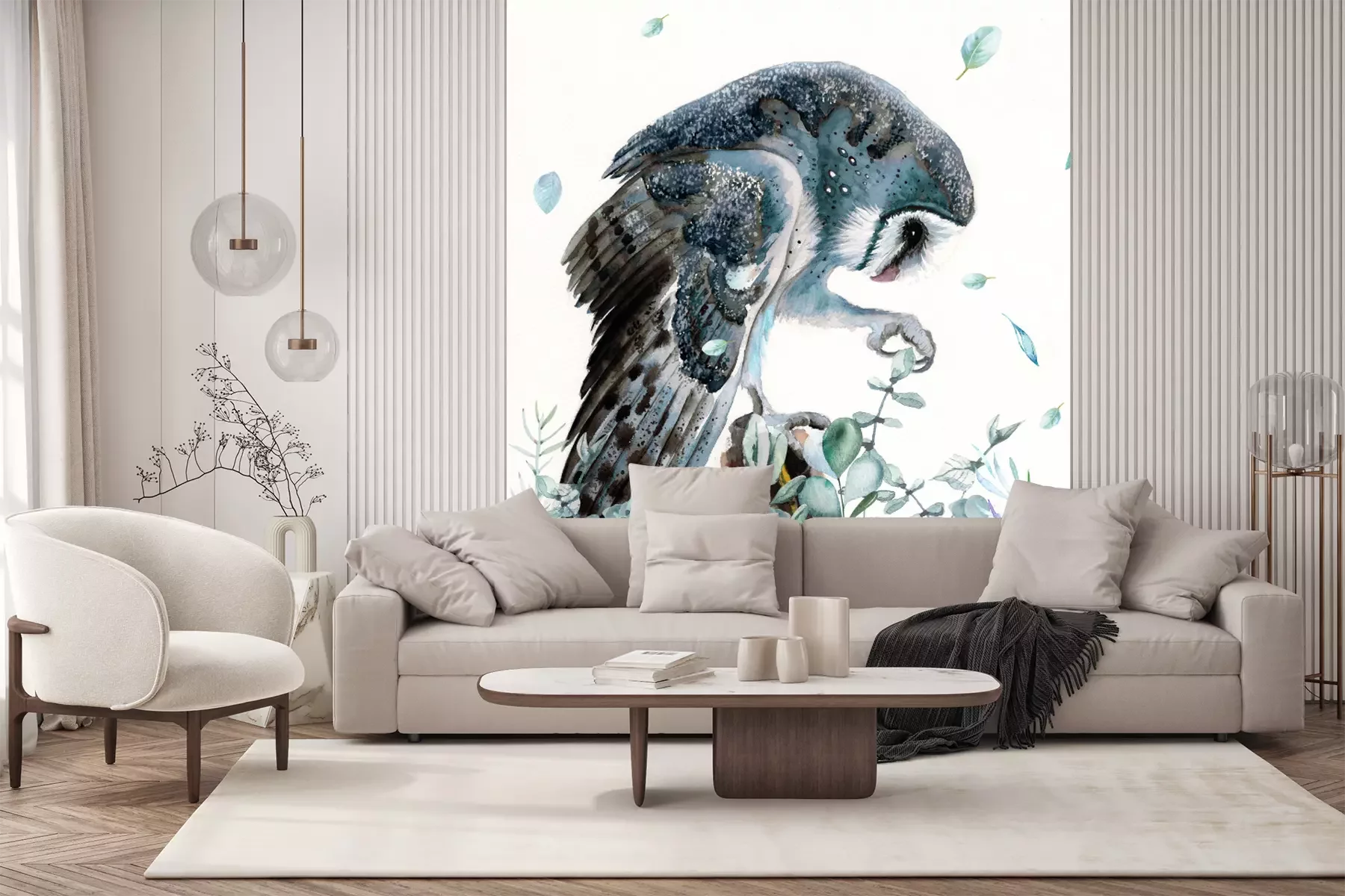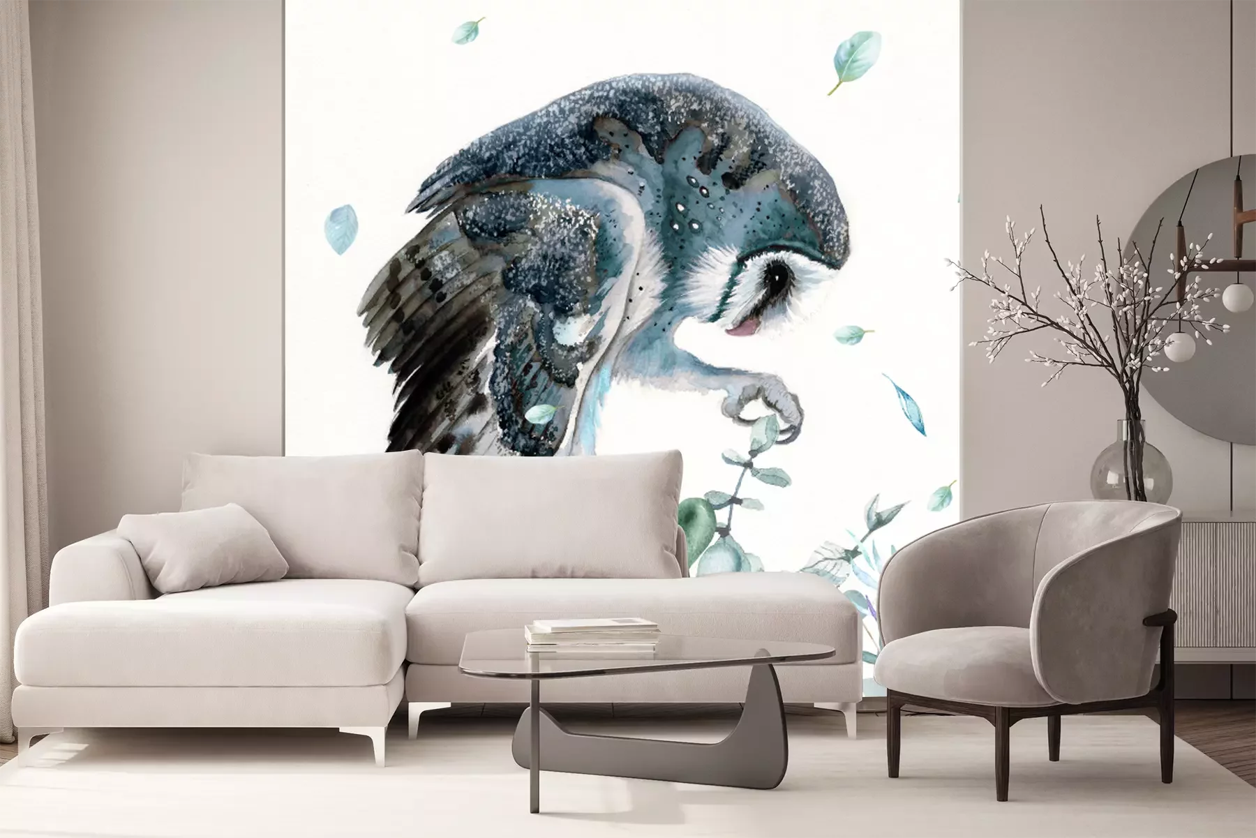 Fotobehang Schattige kerkuil geschilderd in aquarel