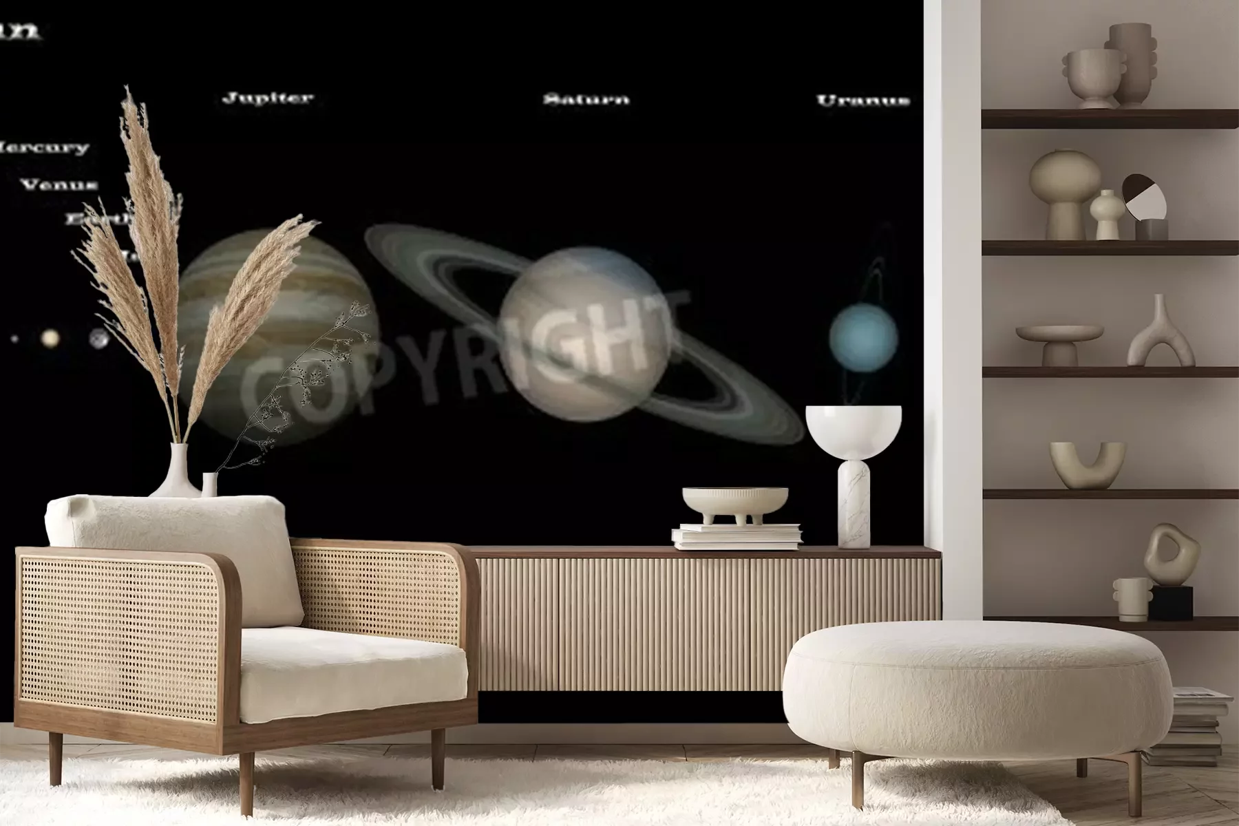 Fotobehang Schematische voorstelling van het zonnestelsel