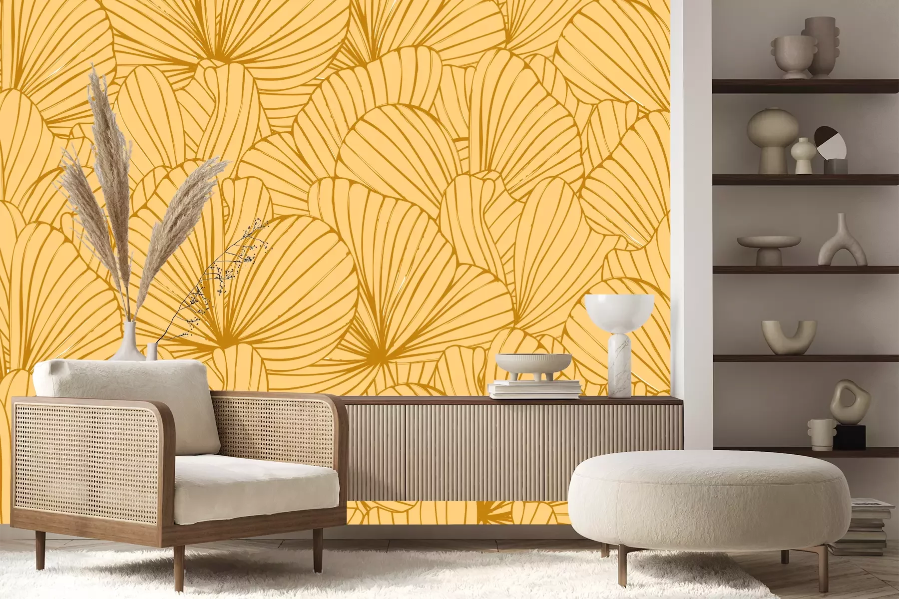 Het materiaal Standard is een hoogwaardig latexmateriaal met een glad, mat oppervlak. Dankzij de HP Latex-printtechnologie zijn de kleuren intens, duurzaam en UV-bestendig, waardoor het patroon jarenlang een onberispelijke uitstraling behoudt. Vervuilde oppervlakken kunnen voorzichtig worden afgeveegd met een droge doek. De maximale breedte van één baan bedraagt 95 cm of 105 cm – afhankelijk van de bestelde fotobehangbreedte. Bij grotere afmetingen wordt het patroon verdeeld over meerdere gelijkmatige banen. Het fotobehang wordt rand-aan-randaangebracht, wat vrijwel onzichtbare naden mogelijk maakt.