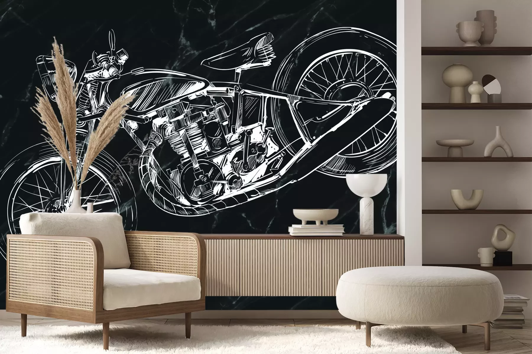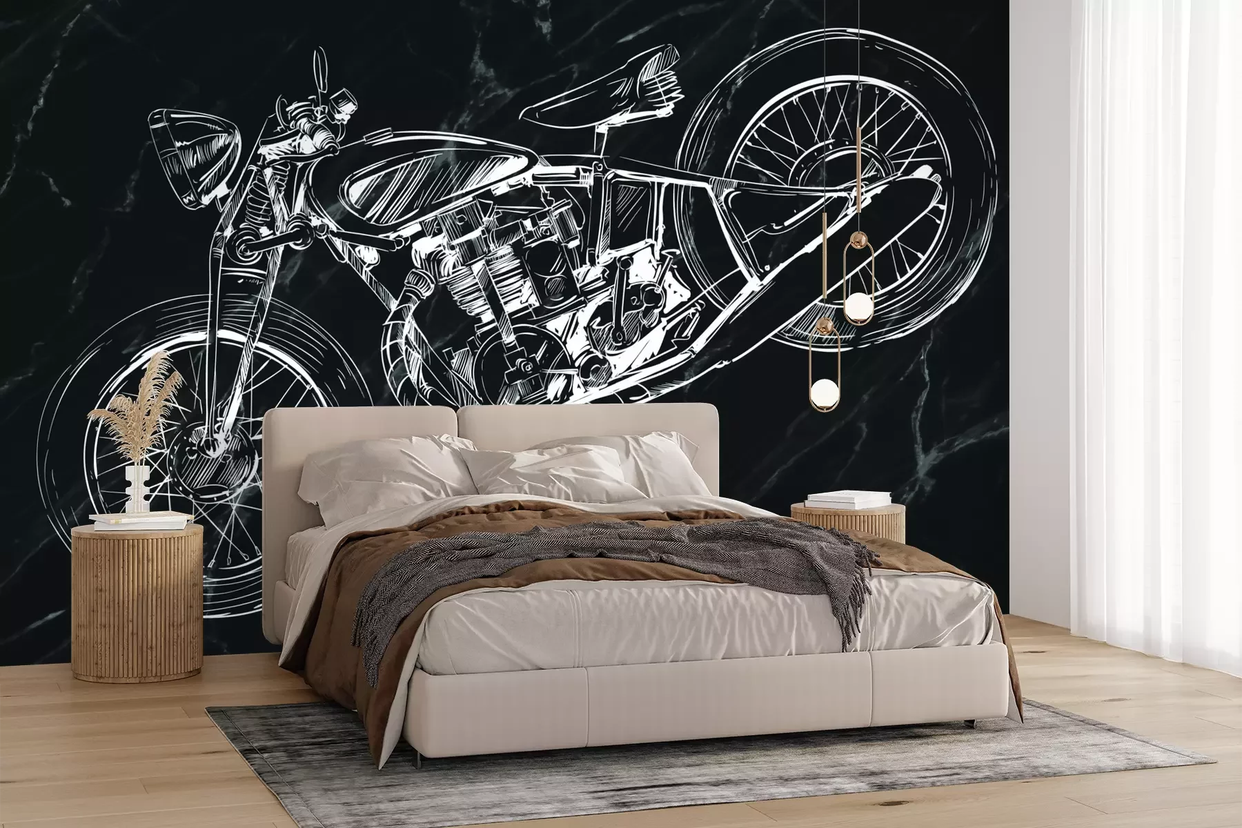Het materiaal Premium+ is een gestructureerd vinyl op vlies met een gewicht van 255 g/m², dat kleine oneffenheden in de muur effectief camoufleert. De subtiele structuur van fijn zand geeft het oppervlak een exclusieve uitstraling, terwijl de halfmatte afwerking de diepte van de kleuren benadrukt. Het materiaal is dampdoorlatend, waardoor het ook in de keuken en badkamer kan worden gebruikt. De maximale breedte van één baan bedraagt 100 cm – bij grotere afmetingen wordt het fotobehang in meerdere gelijke banen verdeeld. De lijm wordt direct op de muur aangebracht en het behang wordt rand-aan-rand geplakt, wat zorgt voor een esthetisch resultaat zonder zichtbare naden. Het oppervlak kan gemakkelijk worden schoongemaakt door het voorzichtig af te nemen met een vochtige doek.