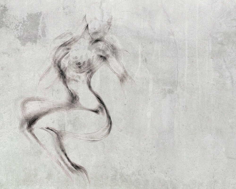 Fotobehang: Schetsstijl vrouwelijk silhouet op een gestructureerde achtergrond