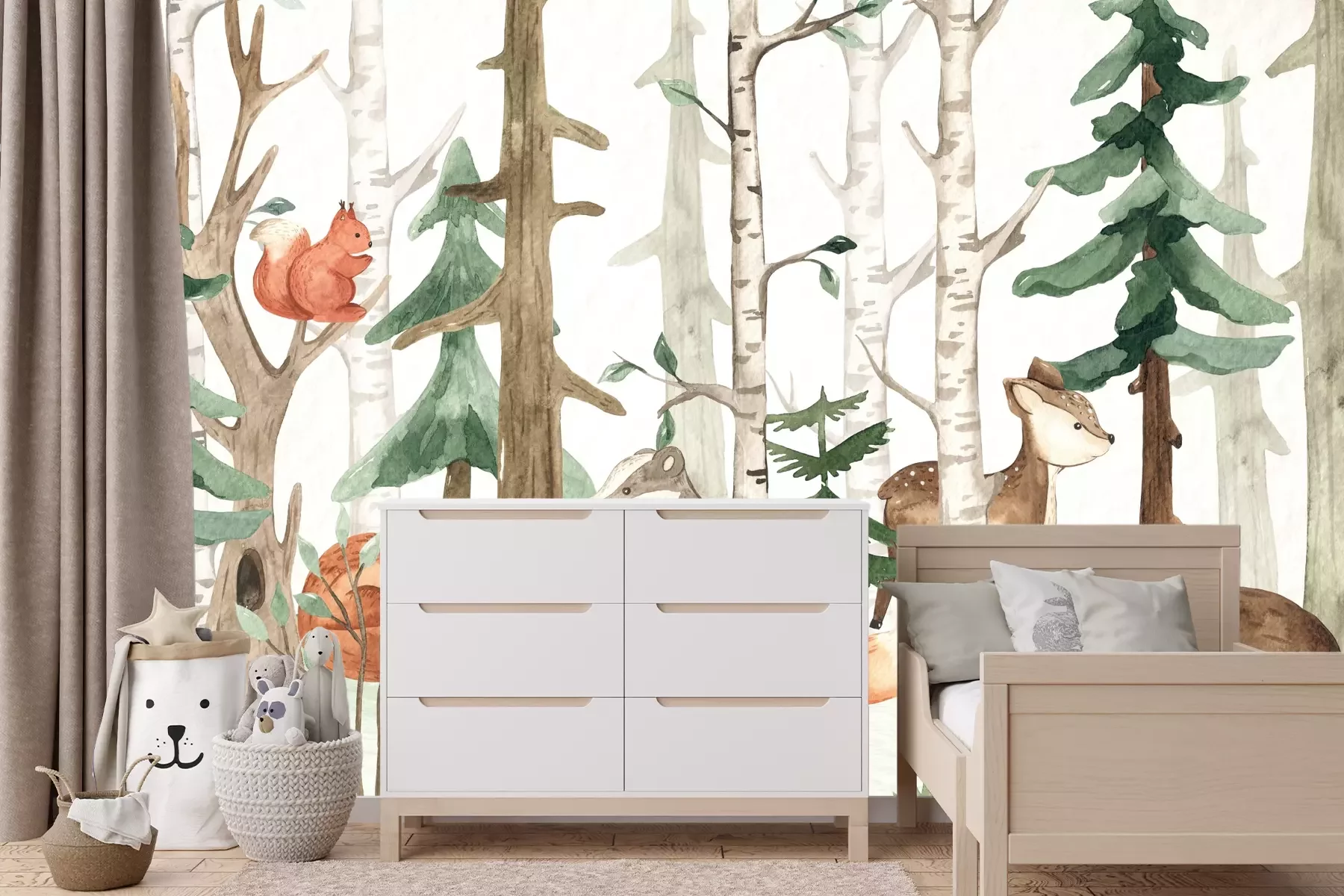Het materiaal Premium+ is een gestructureerd vinyl op vlies met een gewicht van 255 g/m², dat kleine oneffenheden in de muur effectief camoufleert. De subtiele structuur van fijn zand geeft het oppervlak een exclusieve uitstraling, terwijl de halfmatte afwerking de diepte van de kleuren benadrukt. Het materiaal is dampdoorlatend, waardoor het ook in de keuken en badkamer kan worden gebruikt. De maximale breedte van één baan bedraagt 100 cm – bij grotere afmetingen wordt het fotobehang in meerdere gelijke banen verdeeld. De lijm wordt direct op de muur aangebracht en het behang wordt rand-aan-rand geplakt, wat zorgt voor een esthetisch resultaat zonder zichtbare naden. Het oppervlak kan gemakkelijk worden schoongemaakt door het voorzichtig af te nemen met een vochtige doek.