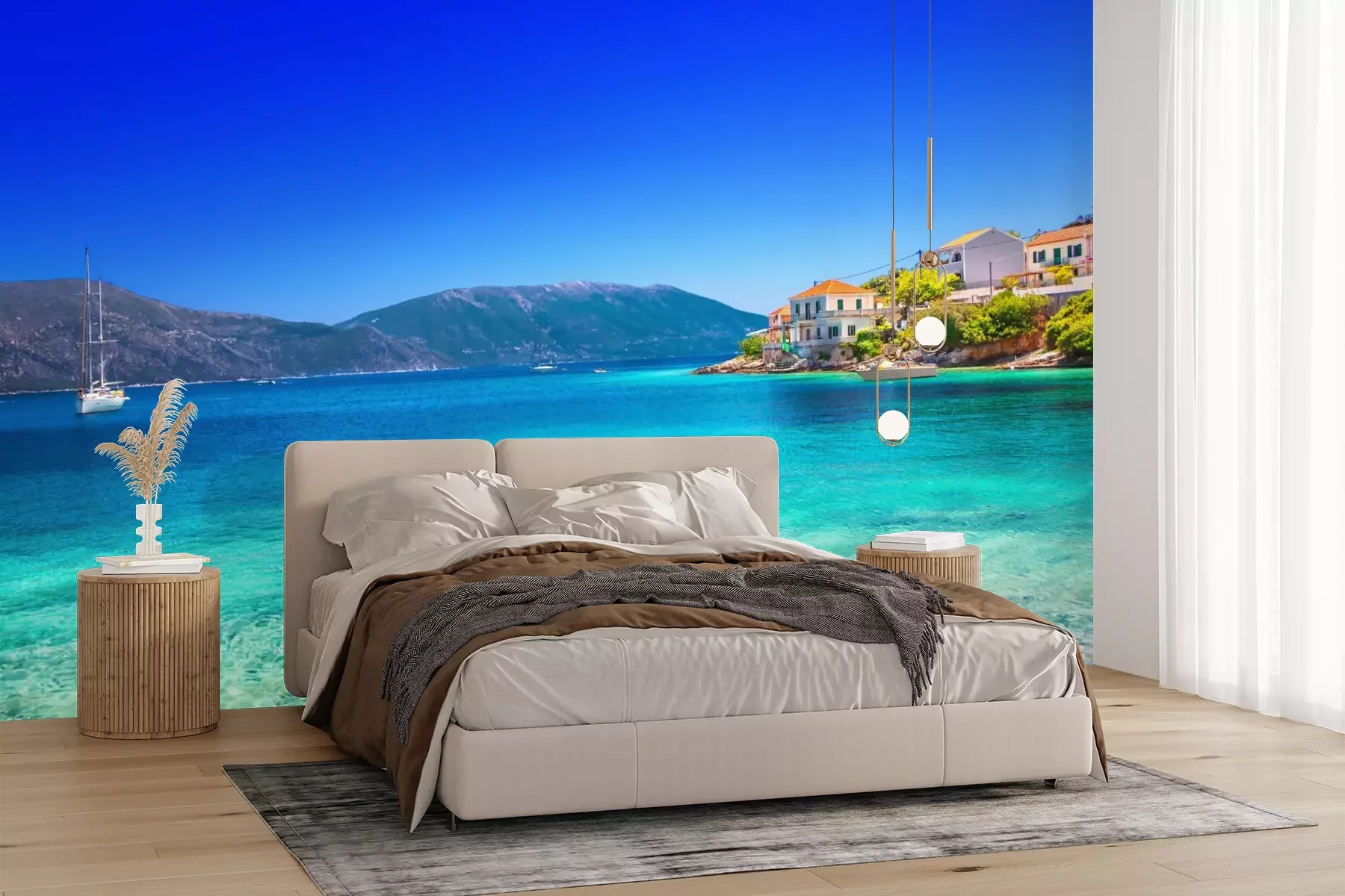Het materiaal Premium+ is een gestructureerd vinyl op vlies met een gewicht van 255 g/m², dat kleine oneffenheden in de muur effectief camoufleert. De subtiele structuur van fijn zand geeft het oppervlak een exclusieve uitstraling, terwijl de halfmatte afwerking de diepte van de kleuren benadrukt. Het materiaal is dampdoorlatend, waardoor het ook in de keuken en badkamer kan worden gebruikt. De maximale breedte van één baan bedraagt 100 cm – bij grotere afmetingen wordt het fotobehang in meerdere gelijke banen verdeeld. De lijm wordt direct op de muur aangebracht en het behang wordt rand-aan-rand geplakt, wat zorgt voor een esthetisch resultaat zonder zichtbare naden. Het oppervlak kan gemakkelijk worden schoongemaakt door het voorzichtig af te nemen met een vochtige doek.