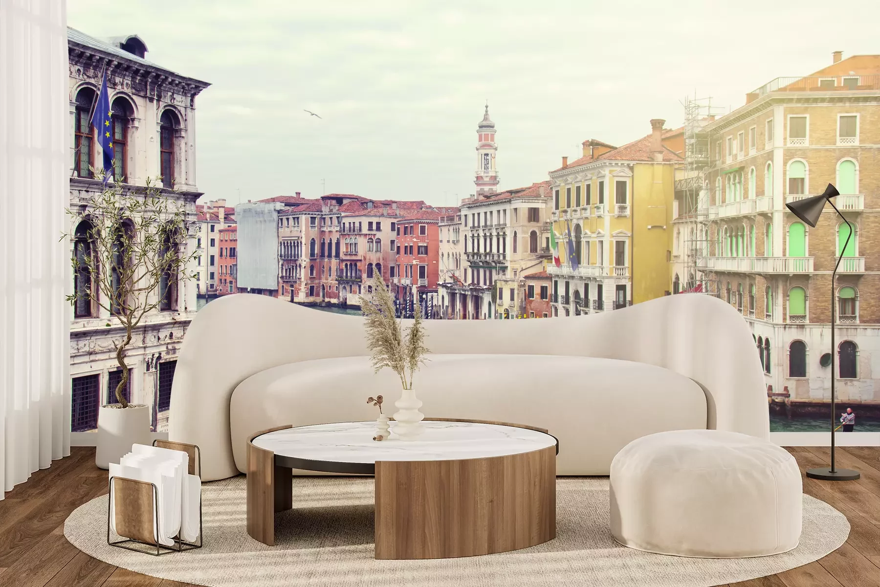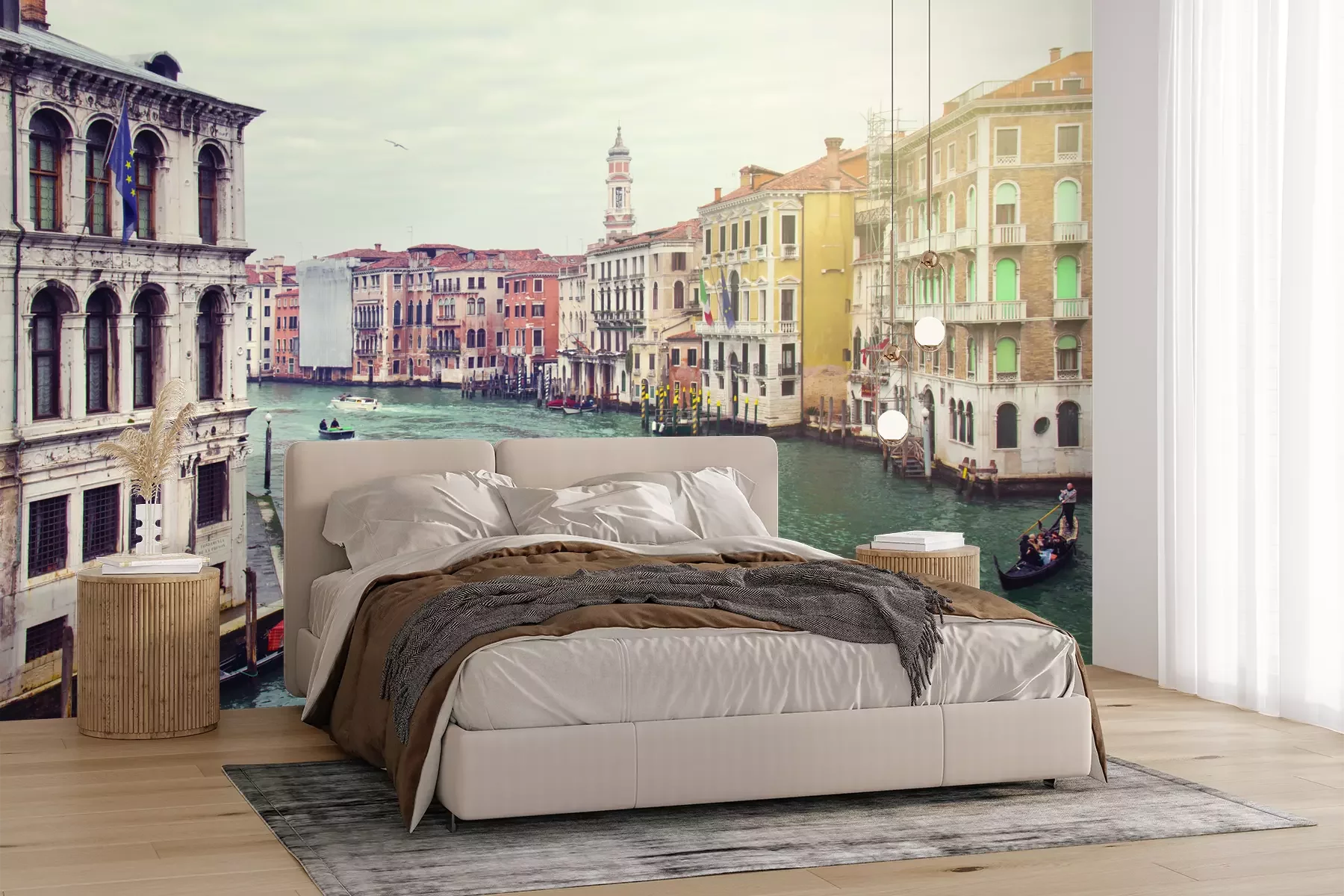 Het materiaal Premium+ is een gestructureerd vinyl op vlies met een gewicht van 255 g/m², dat kleine oneffenheden in de muur effectief camoufleert. De subtiele structuur van fijn zand geeft het oppervlak een exclusieve uitstraling, terwijl de halfmatte afwerking de diepte van de kleuren benadrukt. Het materiaal is dampdoorlatend, waardoor het ook in de keuken en badkamer kan worden gebruikt. De maximale breedte van één baan bedraagt 100 cm – bij grotere afmetingen wordt het fotobehang in meerdere gelijke banen verdeeld. De lijm wordt direct op de muur aangebracht en het behang wordt rand-aan-rand geplakt, wat zorgt voor een esthetisch resultaat zonder zichtbare naden. Het oppervlak kan gemakkelijk worden schoongemaakt door het voorzichtig af te nemen met een vochtige doek.