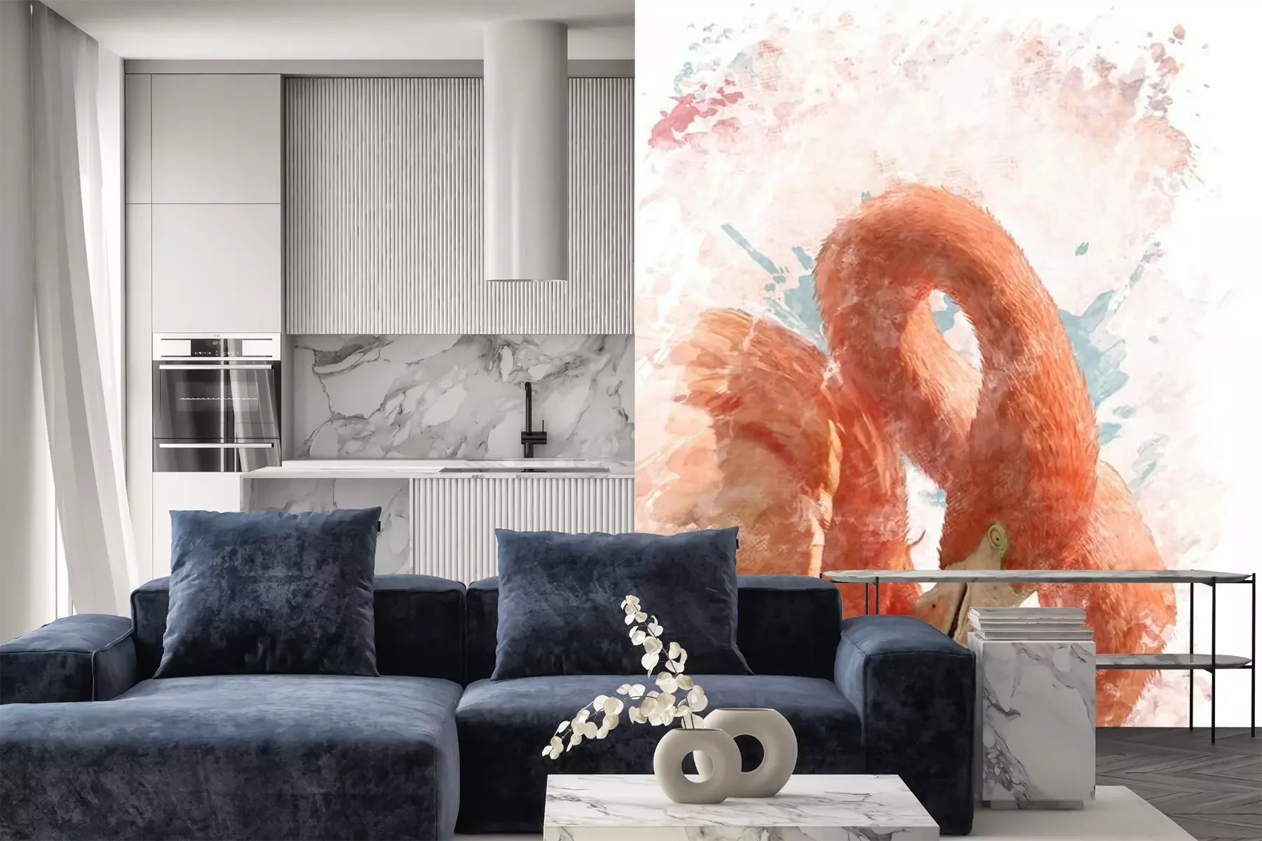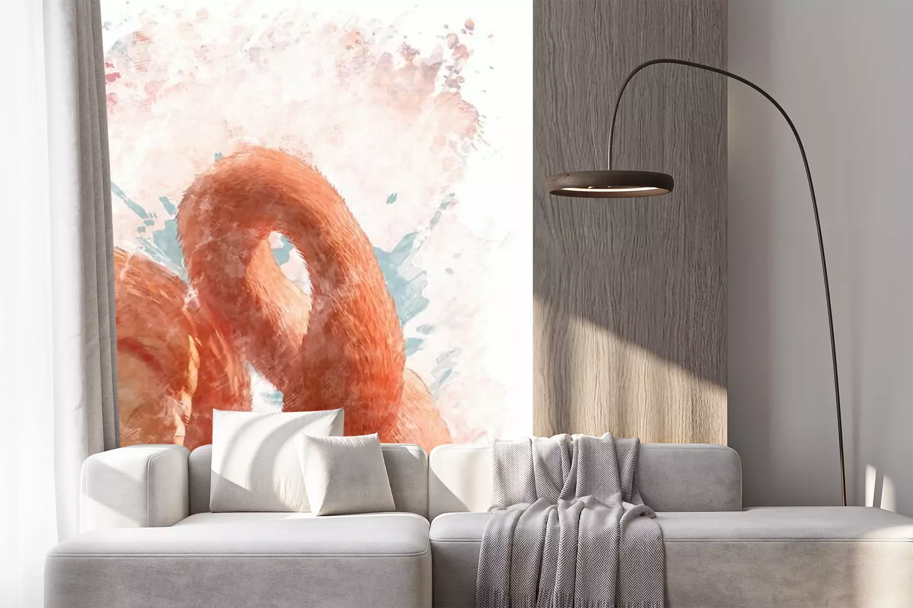 Fotobehang Schilderachtige illustratie van een roze vogel
