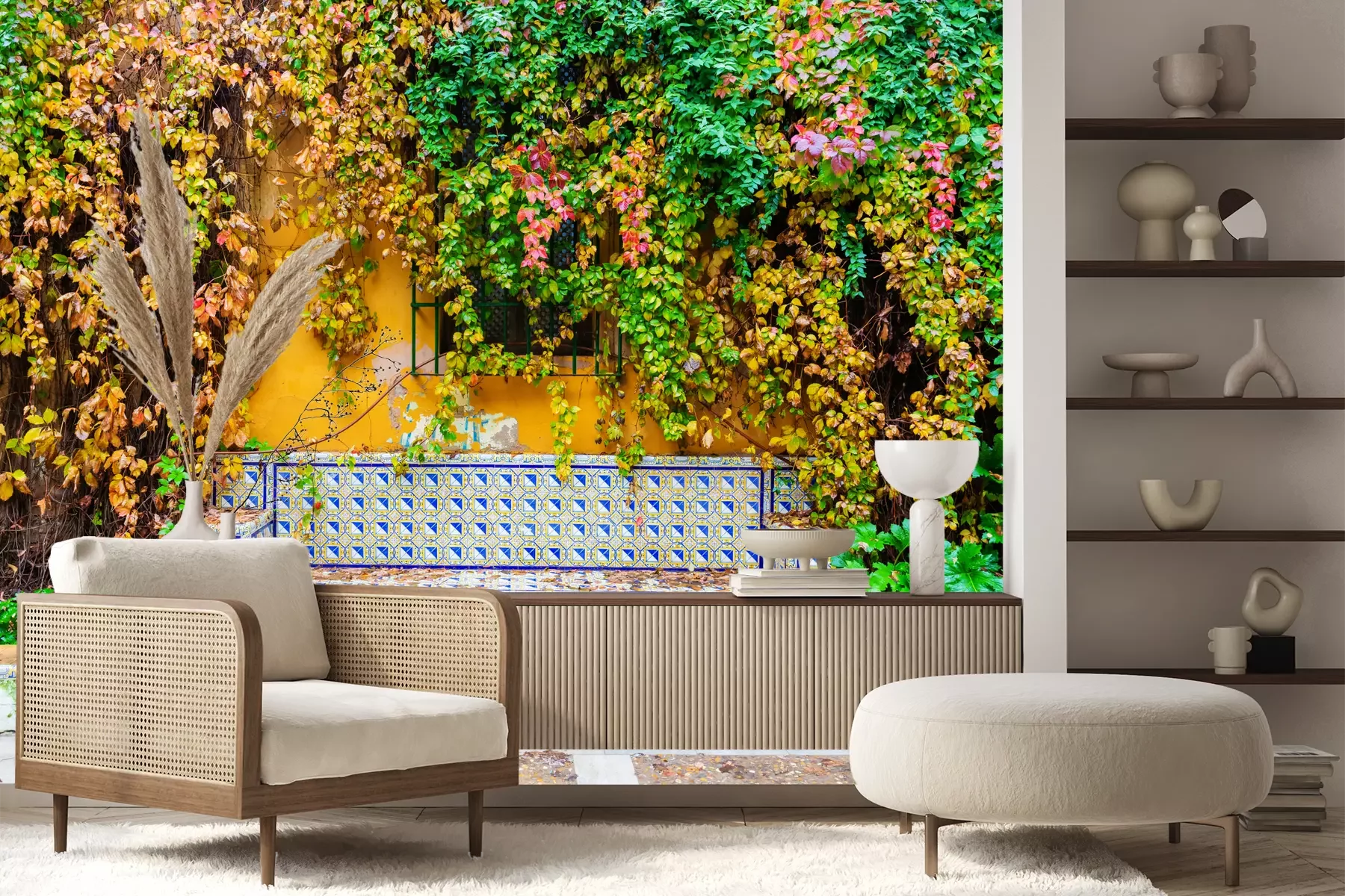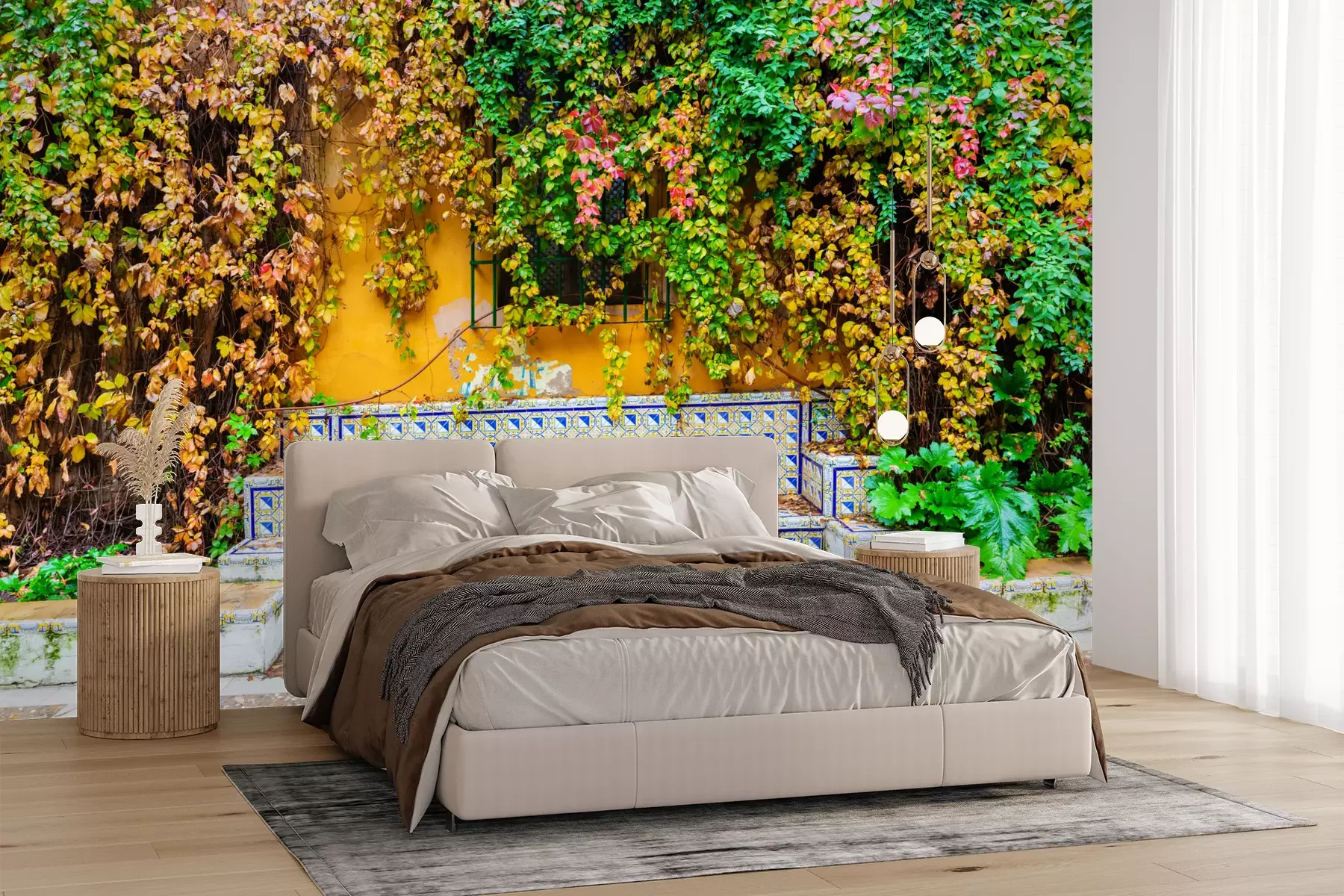 Het materiaal Premium+ is een gestructureerd vinyl op vlies met een gewicht van 255 g/m², dat kleine oneffenheden in de muur effectief camoufleert. De subtiele structuur van fijn zand geeft het oppervlak een exclusieve uitstraling, terwijl de halfmatte afwerking de diepte van de kleuren benadrukt. Het materiaal is dampdoorlatend, waardoor het ook in de keuken en badkamer kan worden gebruikt. De maximale breedte van één baan bedraagt 100 cm – bij grotere afmetingen wordt het fotobehang in meerdere gelijke banen verdeeld. De lijm wordt direct op de muur aangebracht en het behang wordt rand-aan-rand geplakt, wat zorgt voor een esthetisch resultaat zonder zichtbare naden. Het oppervlak kan gemakkelijk worden schoongemaakt door het voorzichtig af te nemen met een vochtige doek.