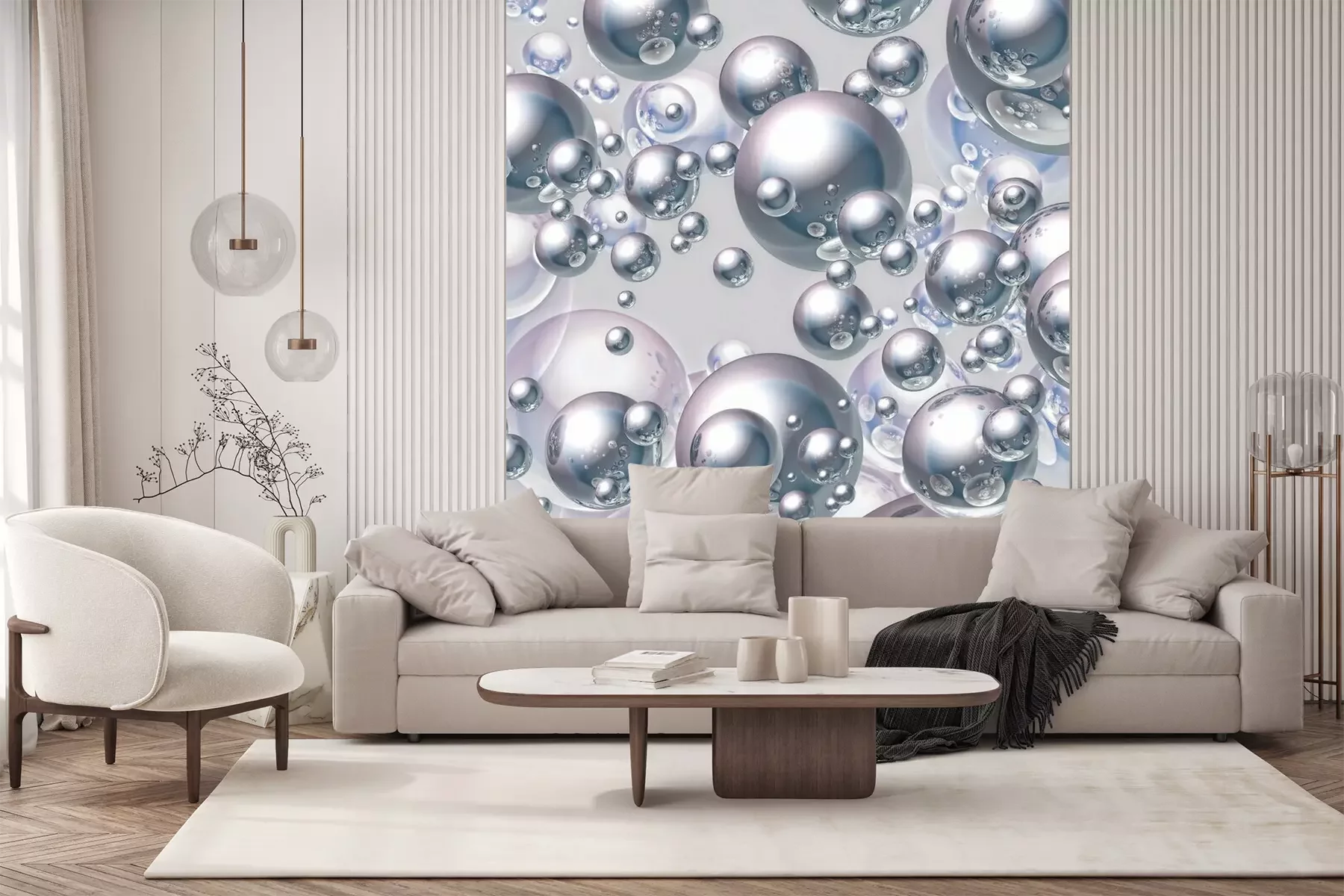Het fotobehang wordt geleverd in banen. De afmetingen en het aantal banen waaruit het volledige fotobehang bestaat, zijn afhankelijk van het gekozen materiaal. Wanneer het formaat de maximale materiaalbreedte overschrijdt, bestaat de print uit meerdere gelijkmatige banen.