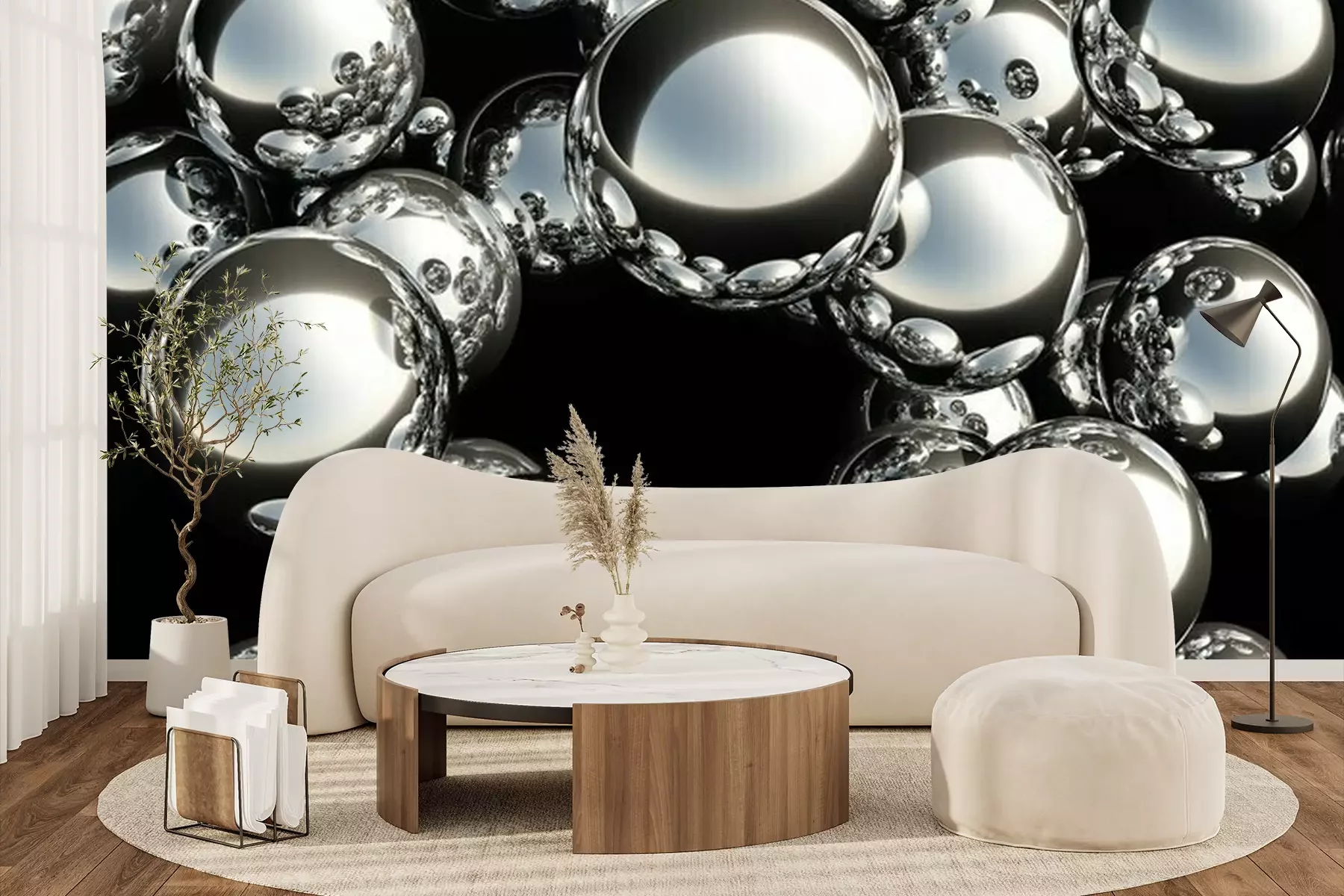 Het materiaal Standard is een hoogwaardig latexmateriaal met een glad, mat oppervlak. Dankzij de HP Latex-printtechnologie zijn de kleuren intens, duurzaam en UV-bestendig, waardoor het patroon jarenlang een onberispelijke uitstraling behoudt. Vervuilde oppervlakken kunnen voorzichtig worden afgeveegd met een droge doek. De maximale breedte van één baan bedraagt 95 cm of 105 cm – afhankelijk van de bestelde fotobehangbreedte. Bij grotere afmetingen wordt het patroon verdeeld over meerdere gelijkmatige banen. Het fotobehang wordt rand-aan-randaangebracht, wat vrijwel onzichtbare naden mogelijk maakt.