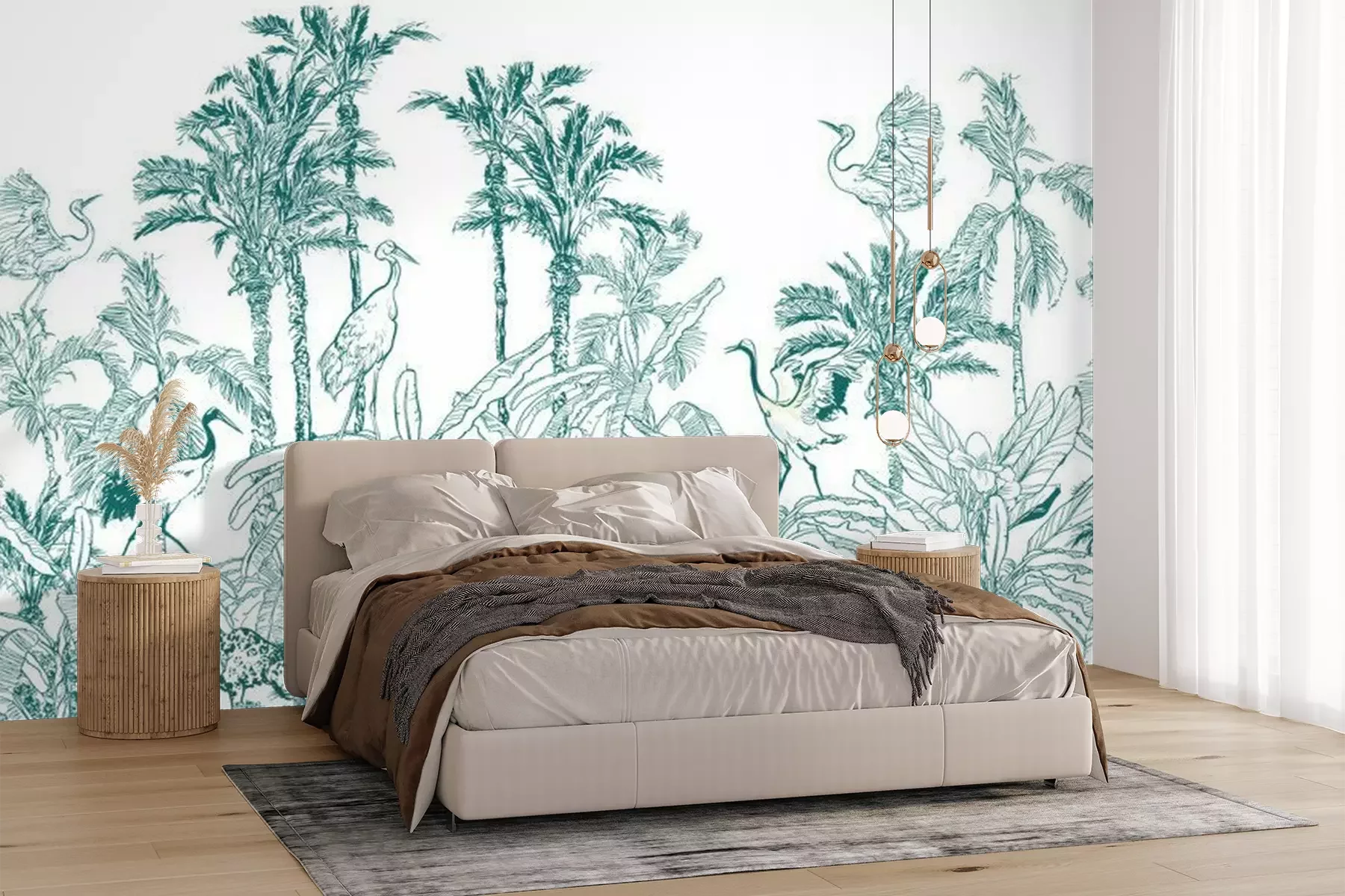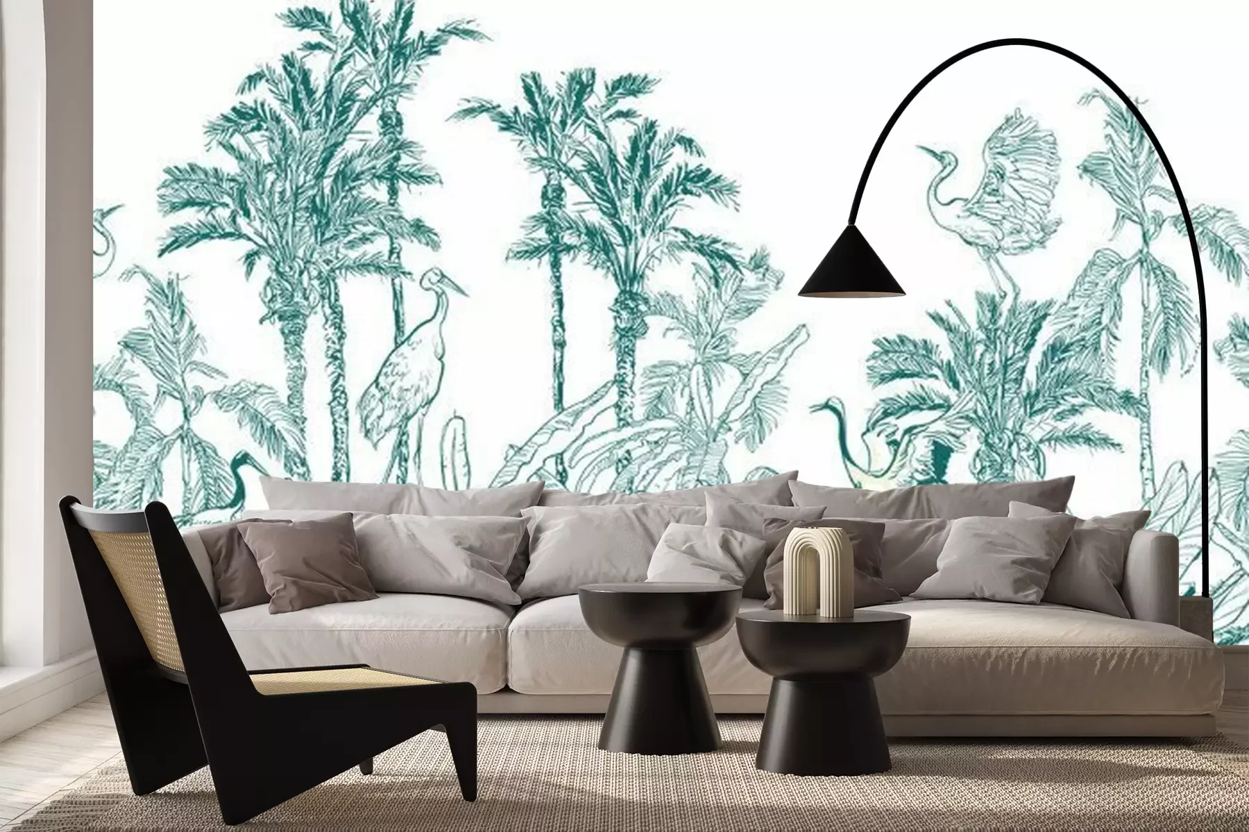 Tropisch zwart-wit ontwerp met giraffenBehang