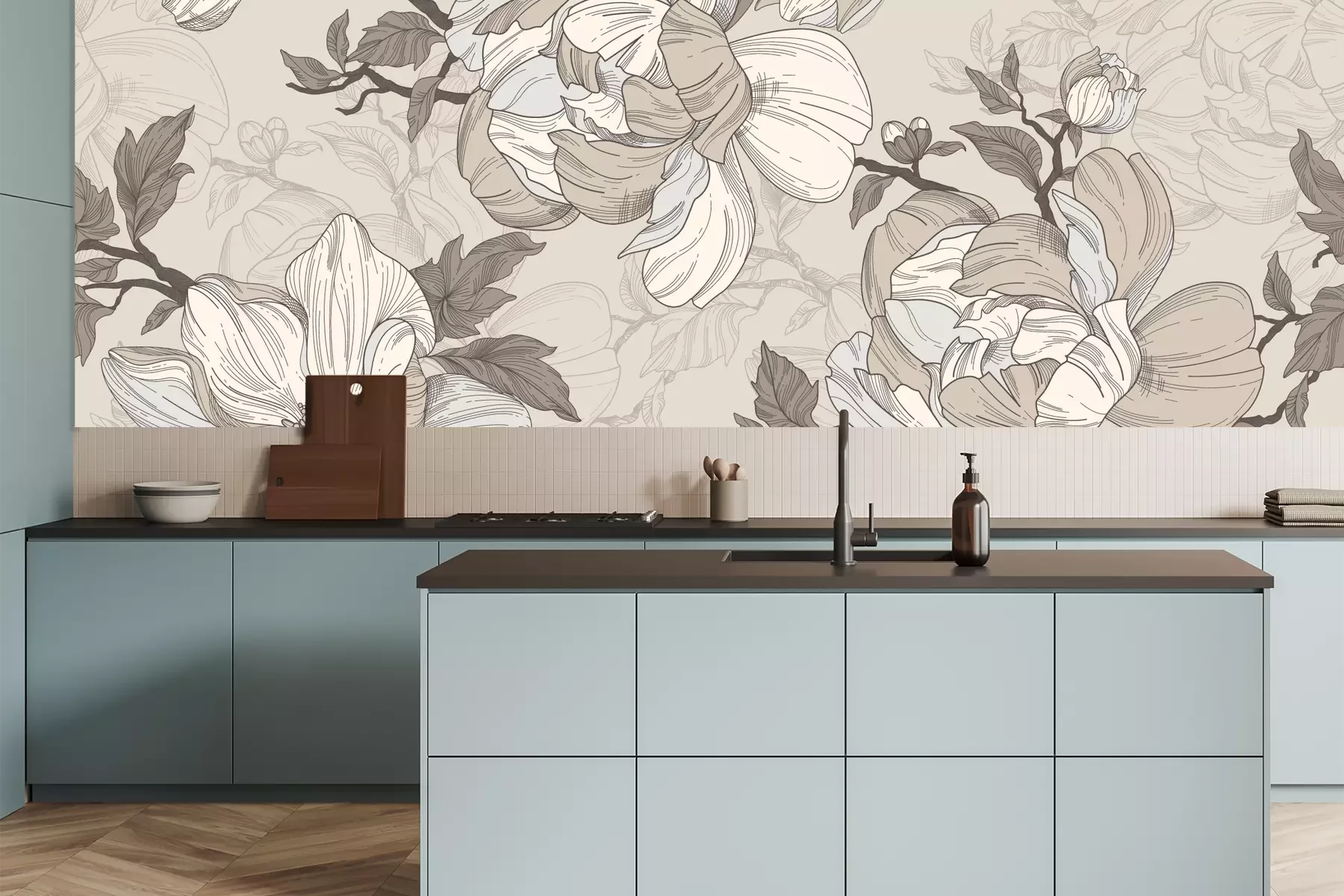 Het materiaal Premium is een glad vinyl op vlies, dat bestand is tegen uitrekken en vervorming. Het is dampdoorlatend – de muren kunnen vrij ademen – waardoor het geschikt is voor gebruik in de keuken en badkamer. Bij vervuiling kan het materiaal worden afgenomen met een vochtige doek. De maximale breedte van één baan bedraagt 95 of 105 cm, afhankelijk van de beschikbaarheid. Montage vindt plaats met de rand-aan-rand methode, wat een esthetisch resultaat zonder zichtbare naden oplevert. Omdat de lijm rechtstreeks op de muur wordt aangebracht, verloopt de installatie van het fotobehang snel en eenvoudig.