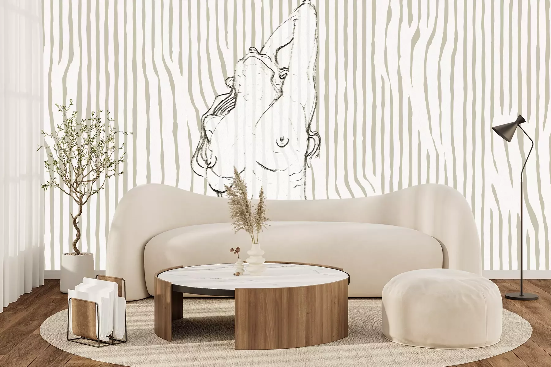 Het materiaal Premium+ is een gestructureerd vinyl op vlies met een gewicht van 255 g/m², dat kleine oneffenheden in de muur effectief camoufleert. De subtiele structuur van fijn zand geeft het oppervlak een exclusieve uitstraling, terwijl de halfmatte afwerking de diepte van de kleuren benadrukt. Het materiaal is dampdoorlatend, waardoor het ook in de keuken en badkamer kan worden gebruikt. De maximale breedte van één baan bedraagt 100 cm – bij grotere afmetingen wordt het fotobehang in meerdere gelijke banen verdeeld. De lijm wordt direct op de muur aangebracht en het behang wordt rand-aan-rand geplakt, wat zorgt voor een esthetisch resultaat zonder zichtbare naden. Het oppervlak kan gemakkelijk worden schoongemaakt door het voorzichtig af te nemen met een vochtige doek.