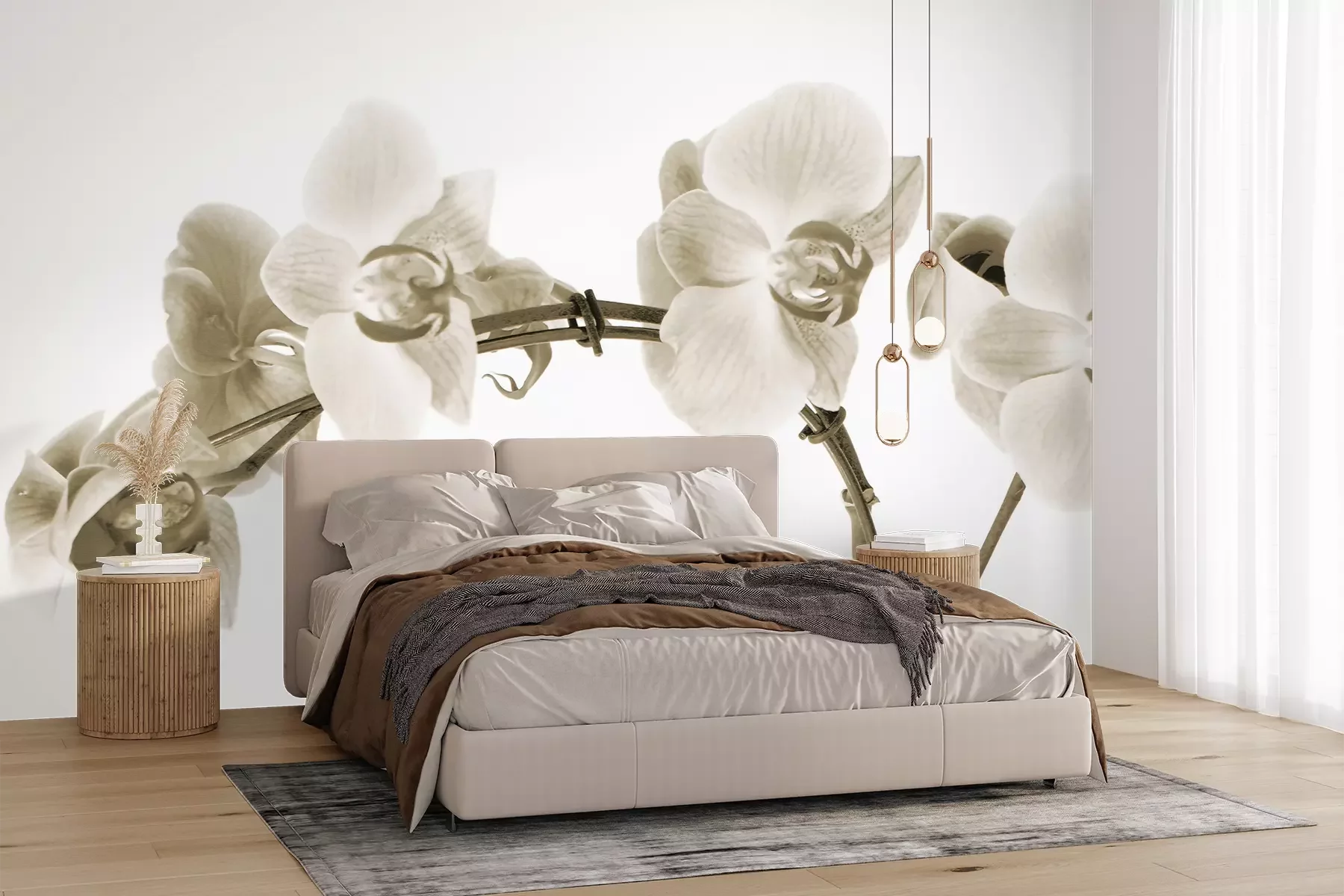 Het materiaal Premium+ is een gestructureerd vinyl op vlies met een gewicht van 255 g/m², dat kleine oneffenheden in de muur effectief camoufleert. De subtiele structuur van fijn zand geeft het oppervlak een exclusieve uitstraling, terwijl de halfmatte afwerking de diepte van de kleuren benadrukt. Het materiaal is dampdoorlatend, waardoor het ook in de keuken en badkamer kan worden gebruikt. De maximale breedte van één baan bedraagt 100 cm – bij grotere afmetingen wordt het fotobehang in meerdere gelijke banen verdeeld. De lijm wordt direct op de muur aangebracht en het behang wordt rand-aan-rand geplakt, wat zorgt voor een esthetisch resultaat zonder zichtbare naden. Het oppervlak kan gemakkelijk worden schoongemaakt door het voorzichtig af te nemen met een vochtige doek.