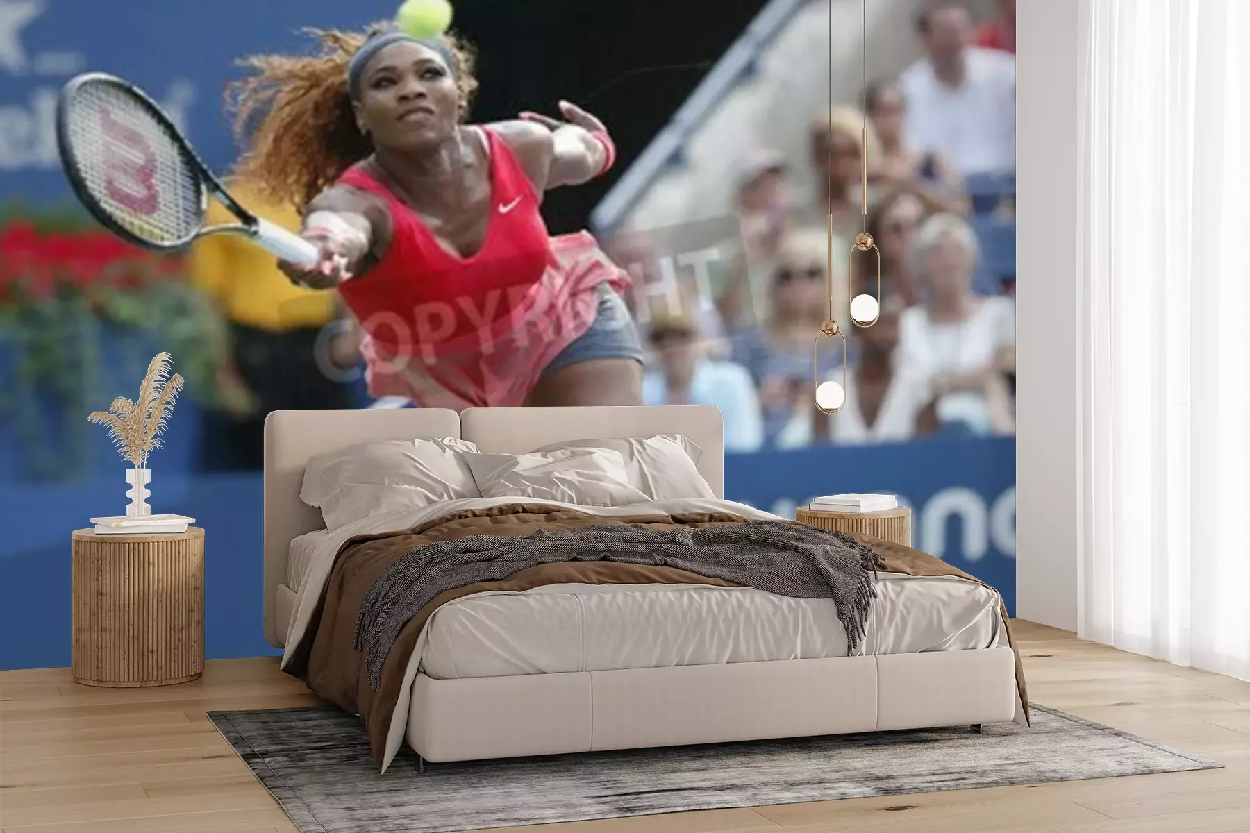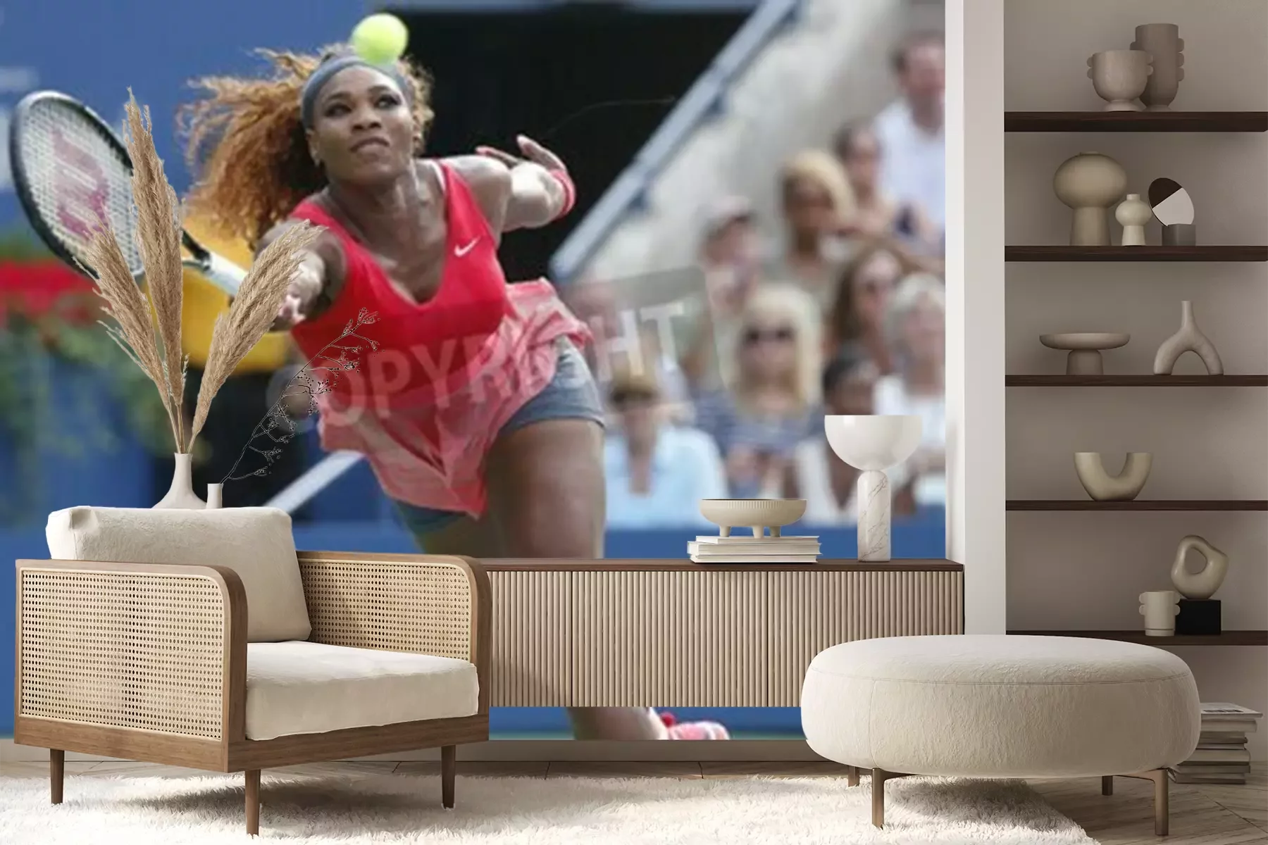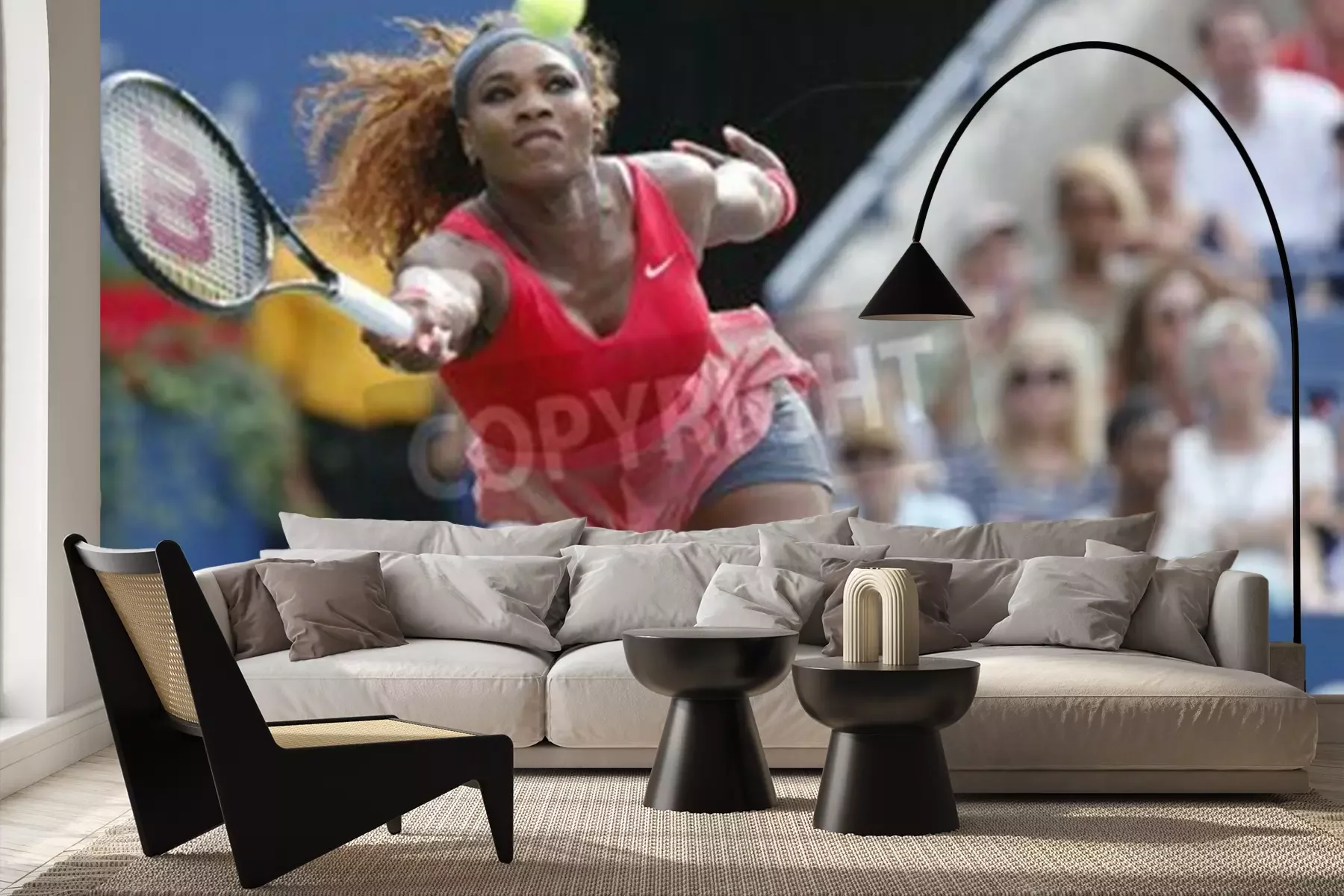 Fotobehang Serena Williams voor het terugslaan van de bal