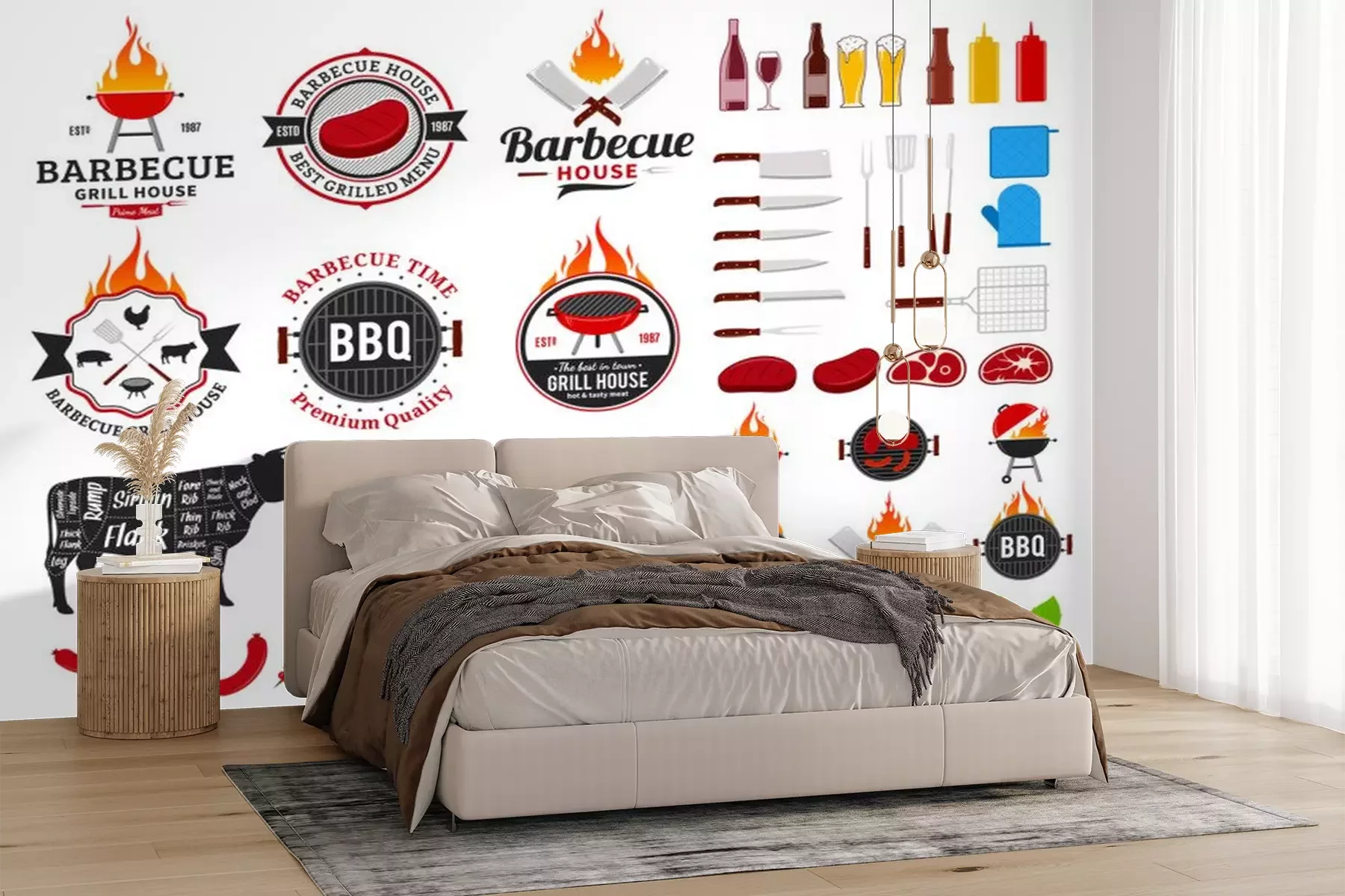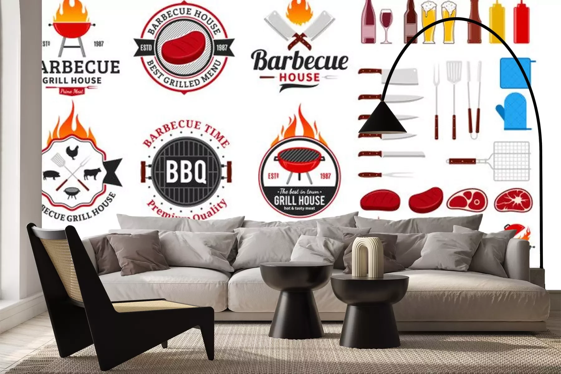 Fotobehang Set of vector barbecue logo, labels and icons