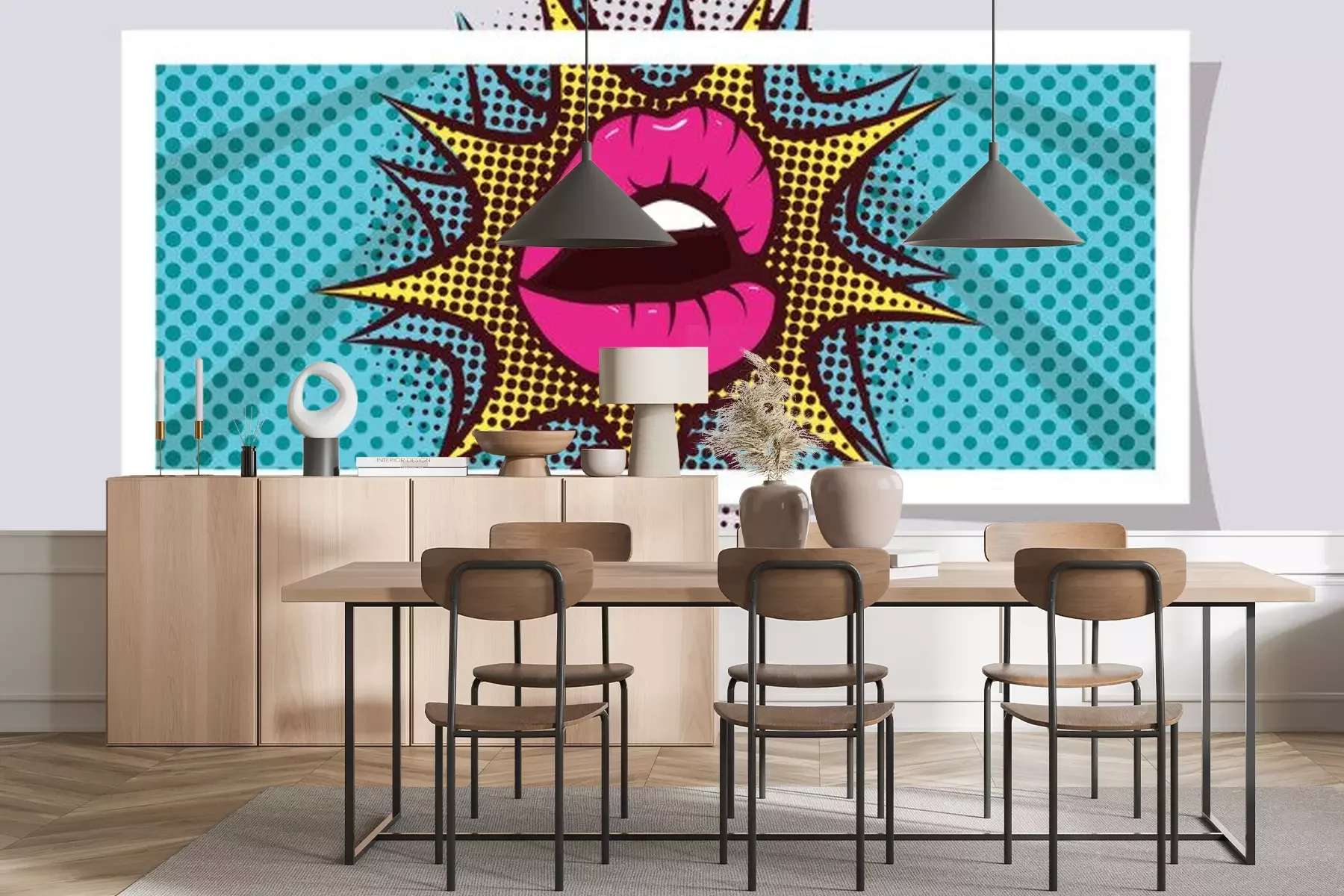 Fotobehang sexy woman mouth with splash expression pop art style