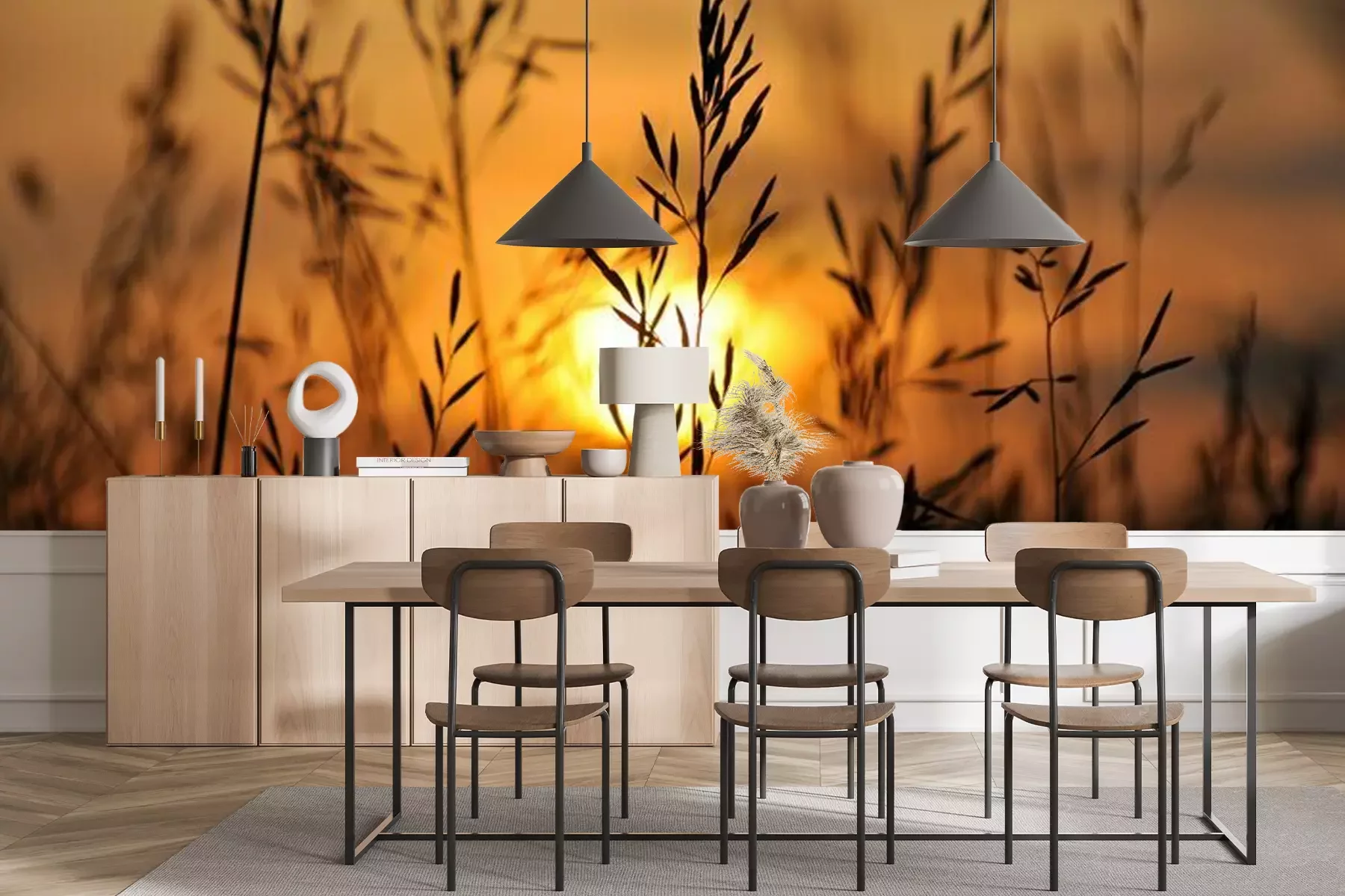 Het materiaal Premium+ is een gestructureerd vinyl op vlies met een gewicht van 255 g/m², dat kleine oneffenheden in de muur effectief camoufleert. De subtiele structuur van fijn zand geeft het oppervlak een exclusieve uitstraling, terwijl de halfmatte afwerking de diepte van de kleuren benadrukt. Het materiaal is dampdoorlatend, waardoor het ook in de keuken en badkamer kan worden gebruikt. De maximale breedte van één baan bedraagt 100 cm – bij grotere afmetingen wordt het fotobehang in meerdere gelijke banen verdeeld. De lijm wordt direct op de muur aangebracht en het behang wordt rand-aan-rand geplakt, wat zorgt voor een esthetisch resultaat zonder zichtbare naden. Het oppervlak kan gemakkelijk worden schoongemaakt door het voorzichtig af te nemen met een vochtige doek.