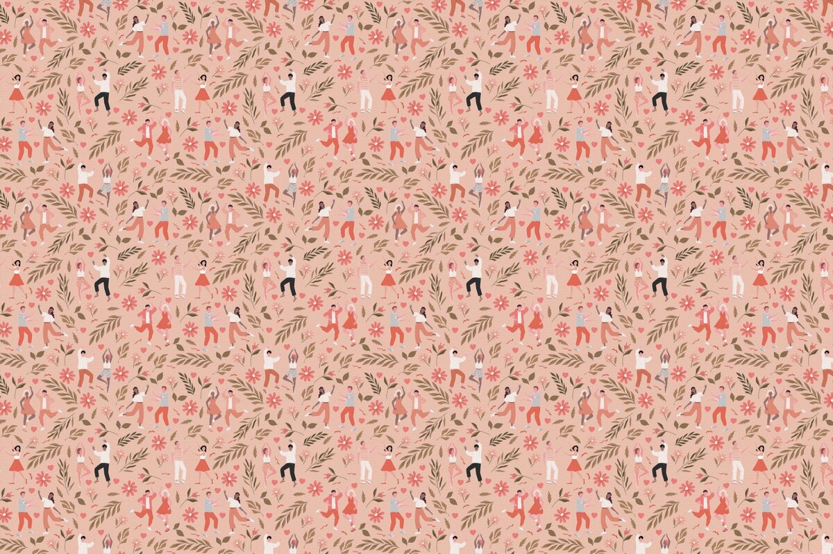 Fotobehang: Silhouetten van dansers in het midden van een bloementuin