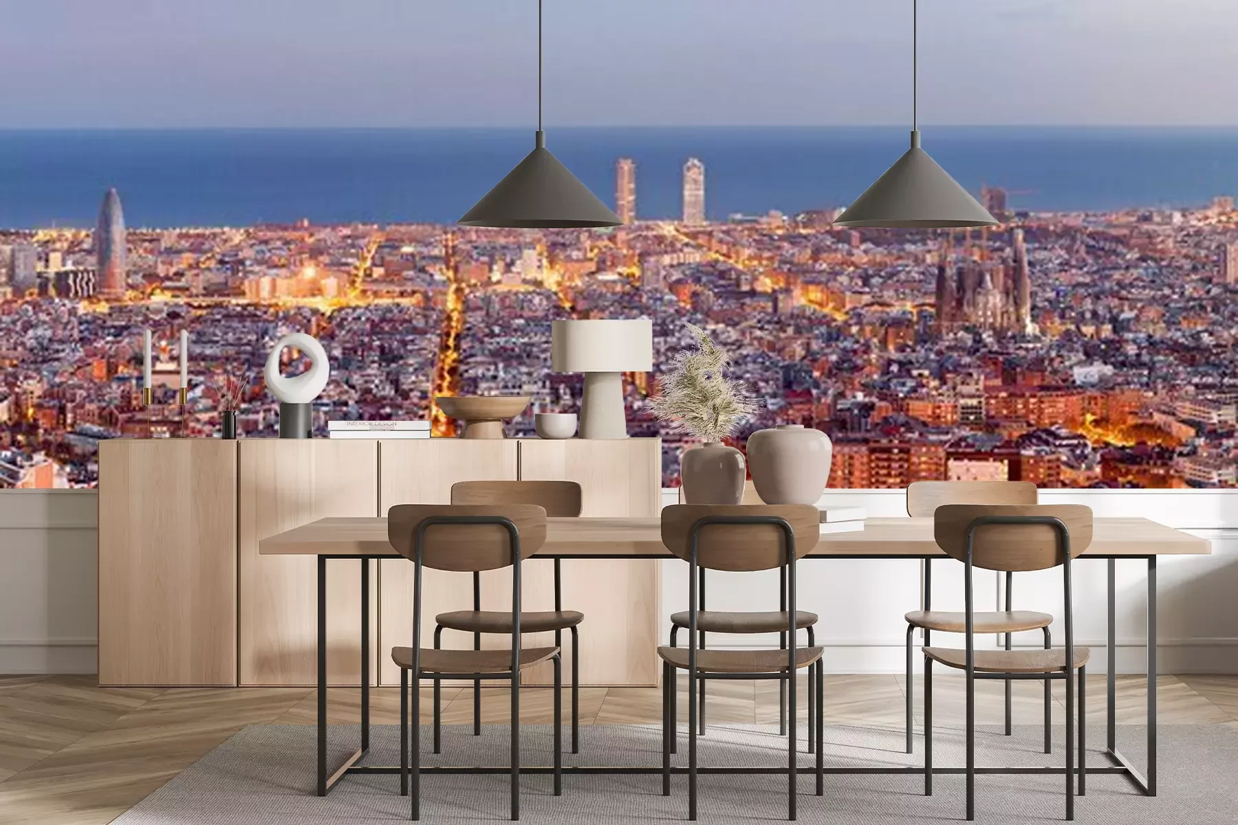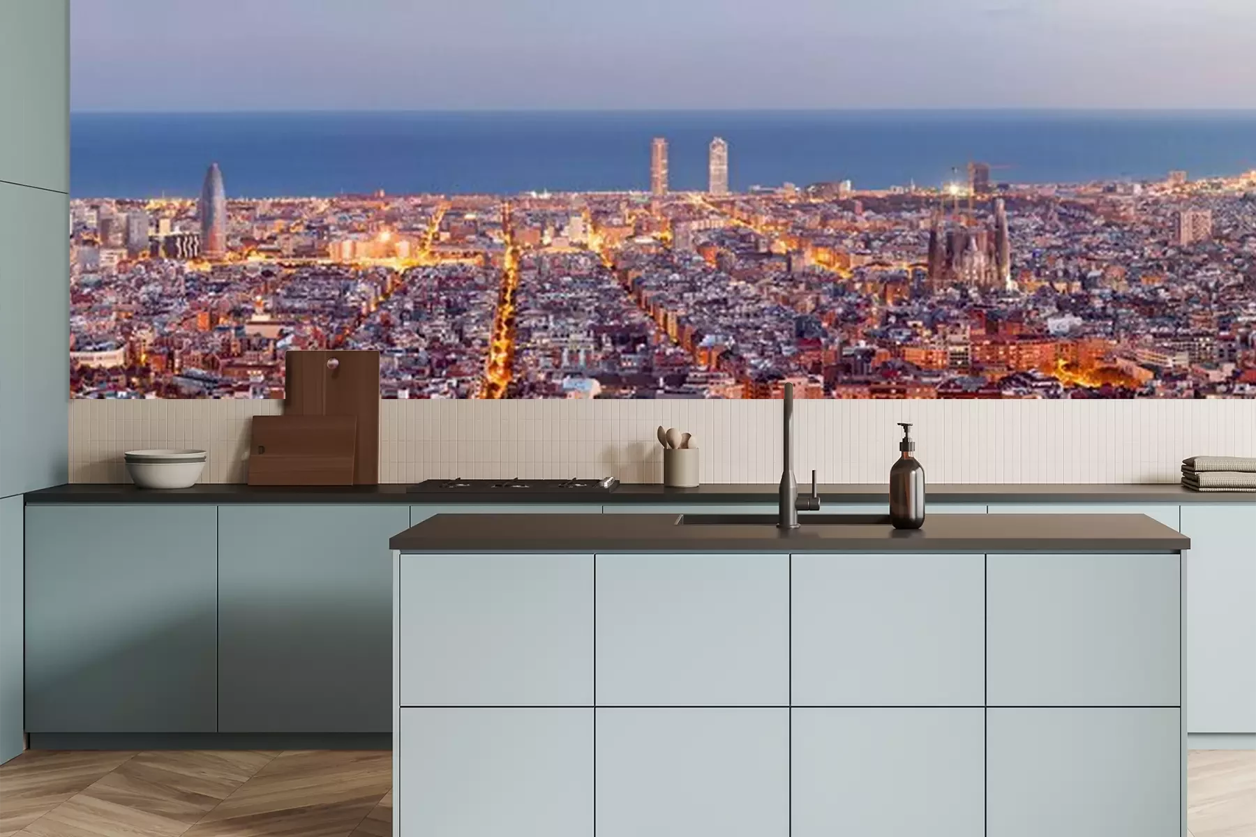 Fotobehang Skyline van Barcelona bij zonsondergang