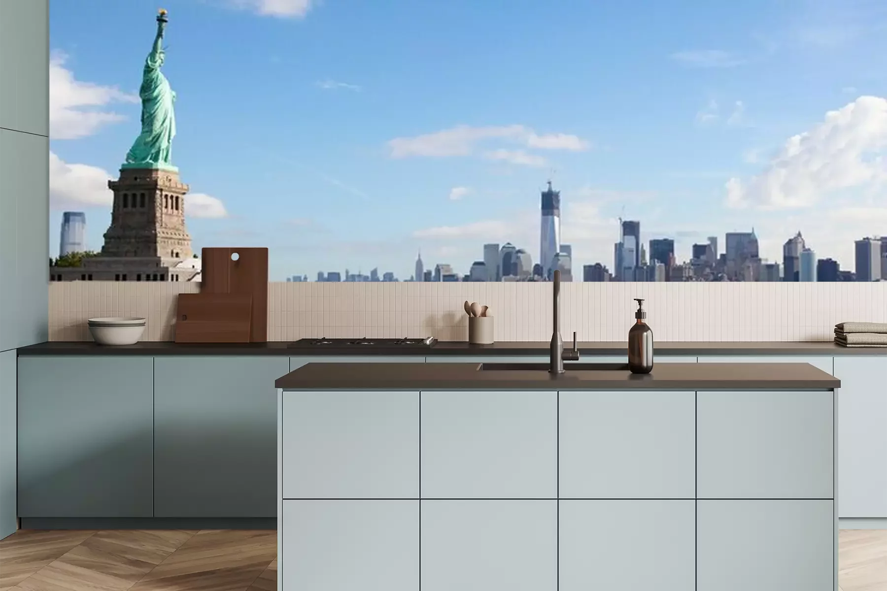 Het materiaal Premium is een glad vinyl op vlies, dat bestand is tegen uitrekken en vervorming. Het is dampdoorlatend – de muren kunnen vrij ademen – waardoor het geschikt is voor gebruik in de keuken en badkamer. Bij vervuiling kan het materiaal worden afgenomen met een vochtige doek. De maximale breedte van één baan bedraagt 95 of 105 cm, afhankelijk van de beschikbaarheid. Montage vindt plaats met de rand-aan-rand methode, wat een esthetisch resultaat zonder zichtbare naden oplevert. Omdat de lijm rechtstreeks op de muur wordt aangebracht, verloopt de installatie van het fotobehang snel en eenvoudig.