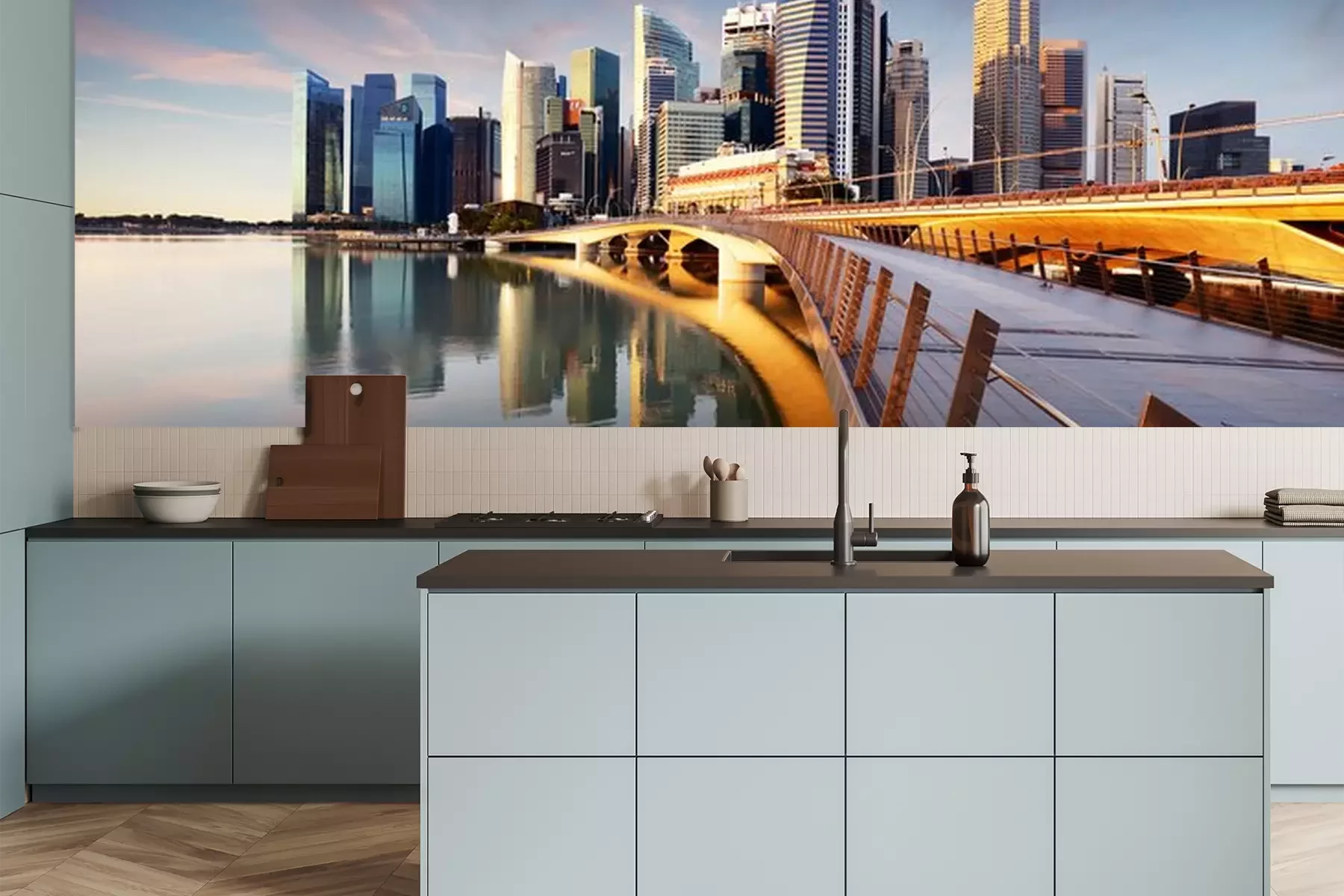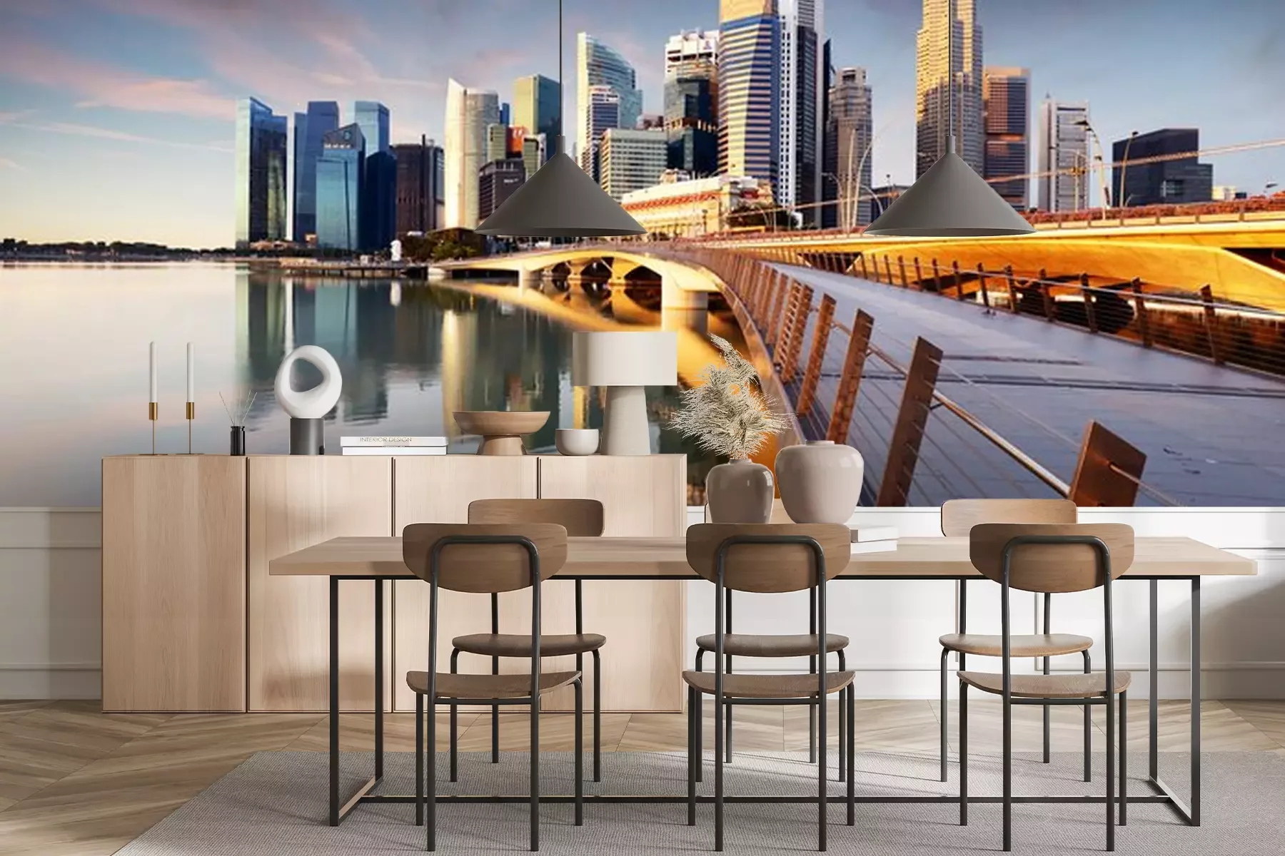 Fotobehang Skyline van Singapore met wolkenkrabbers