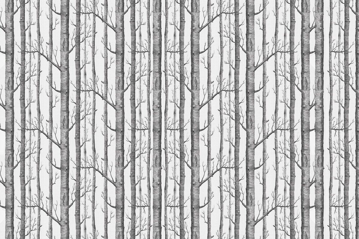 Fotobehang: Slanke grijze bomen op een lichte achtergrond