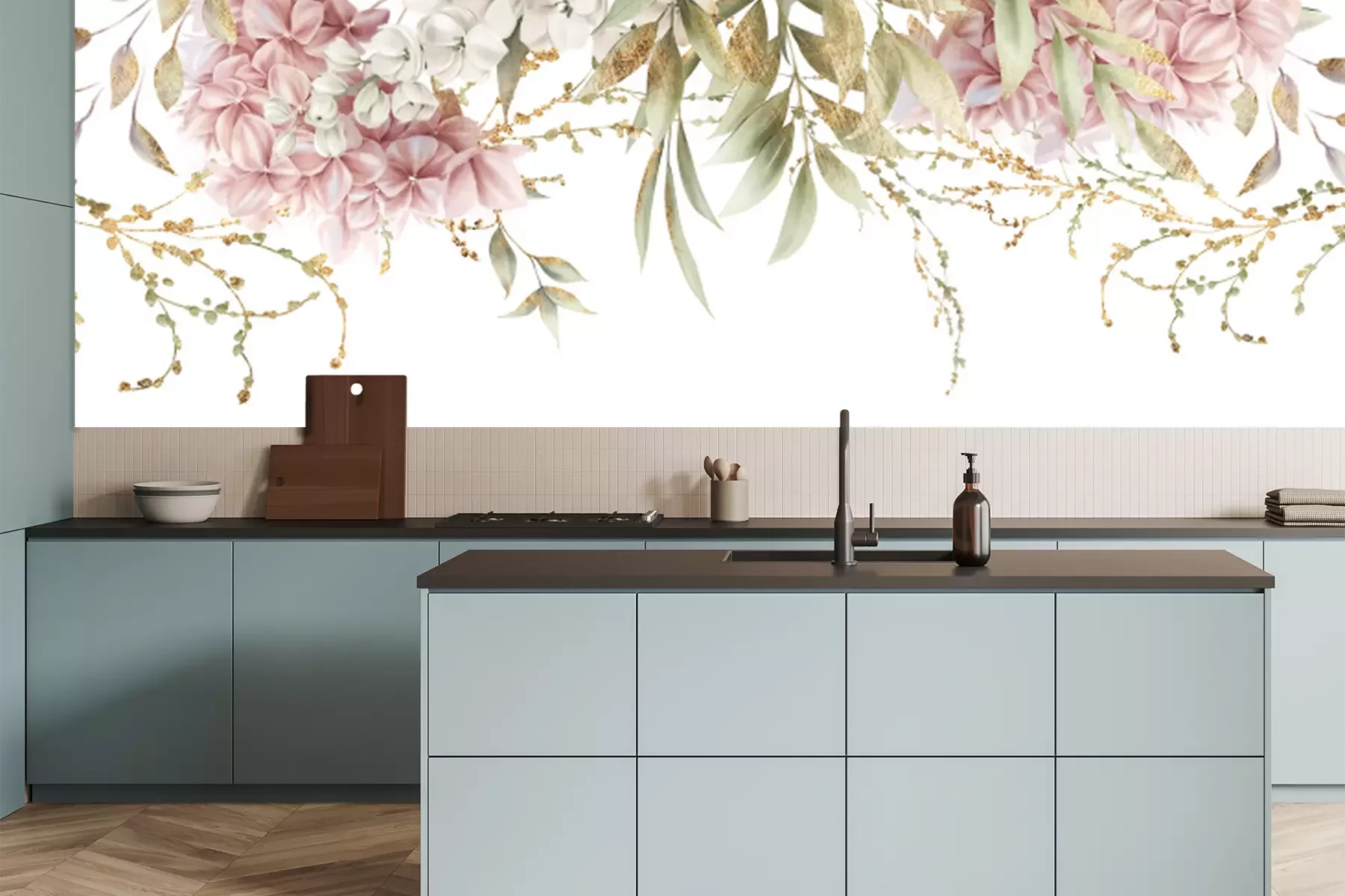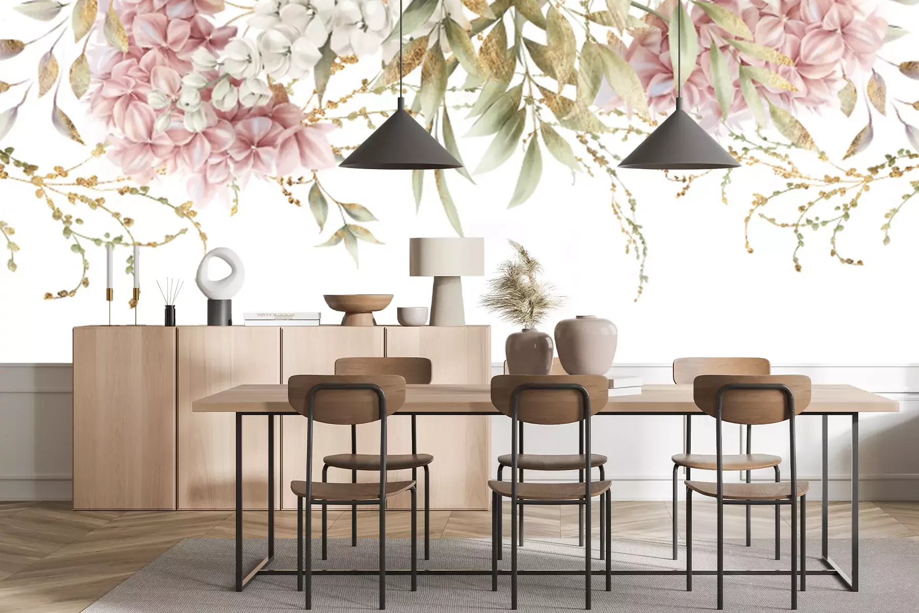 Fotobehang Slinger met pioenrozen