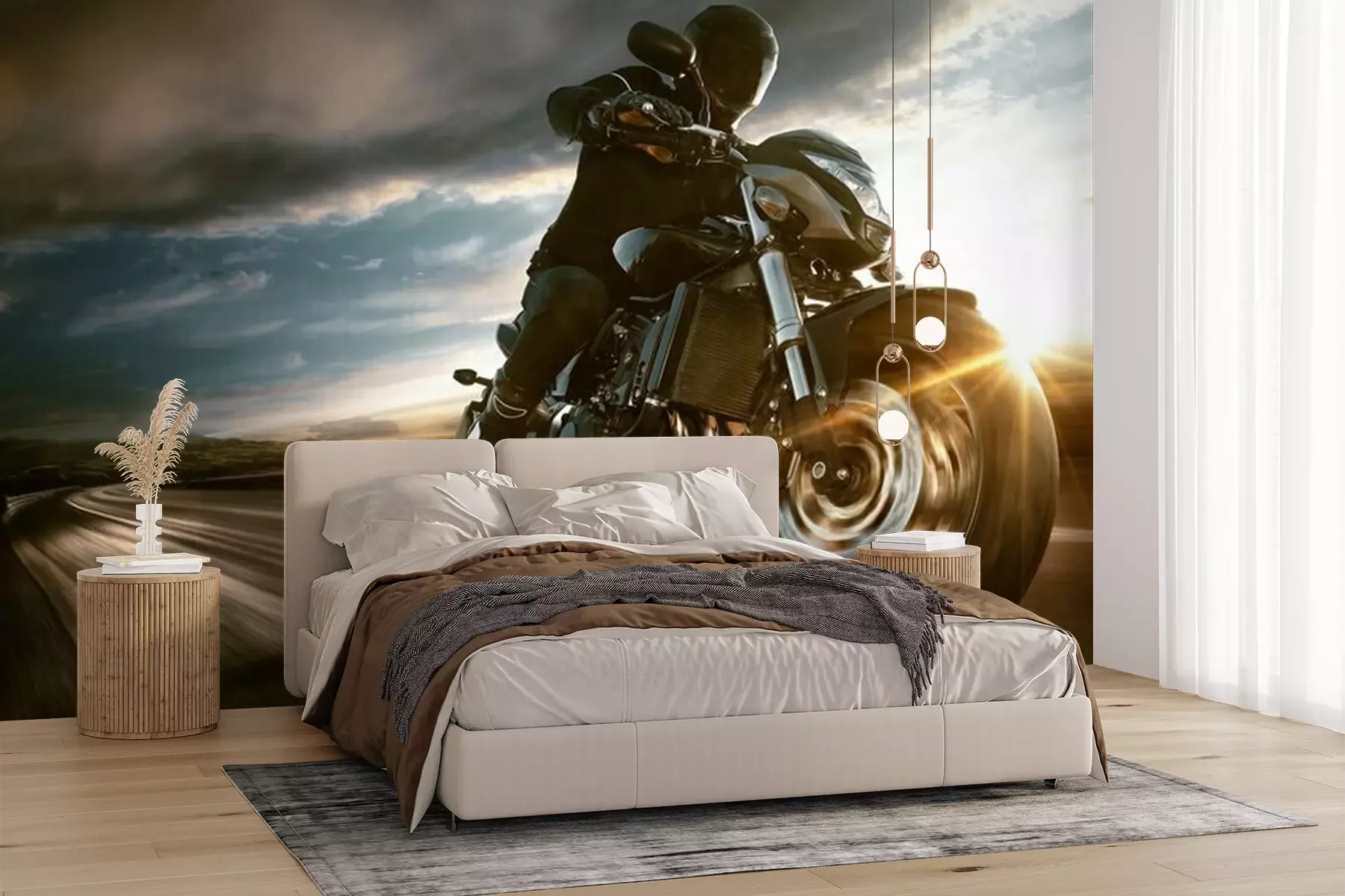 Het materiaal Premium+ is een gestructureerd vinyl op vlies met een gewicht van 255 g/m², dat kleine oneffenheden in de muur effectief camoufleert. De subtiele structuur van fijn zand geeft het oppervlak een exclusieve uitstraling, terwijl de halfmatte afwerking de diepte van de kleuren benadrukt. Het materiaal is dampdoorlatend, waardoor het ook in de keuken en badkamer kan worden gebruikt. De maximale breedte van één baan bedraagt 100 cm – bij grotere afmetingen wordt het fotobehang in meerdere gelijke banen verdeeld. De lijm wordt direct op de muur aangebracht en het behang wordt rand-aan-rand geplakt, wat zorgt voor een esthetisch resultaat zonder zichtbare naden. Het oppervlak kan gemakkelijk worden schoongemaakt door het voorzichtig af te nemen met een vochtige doek.