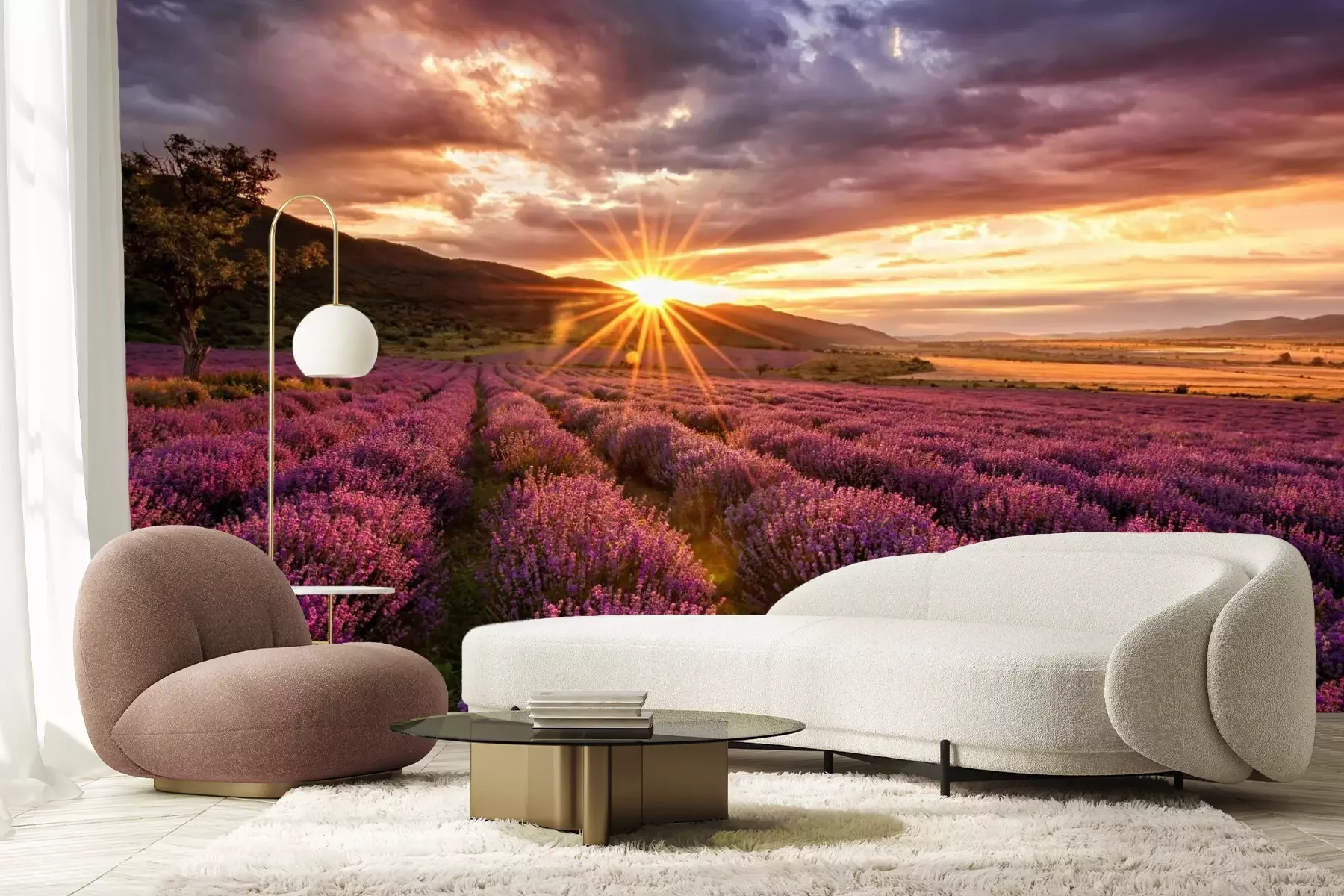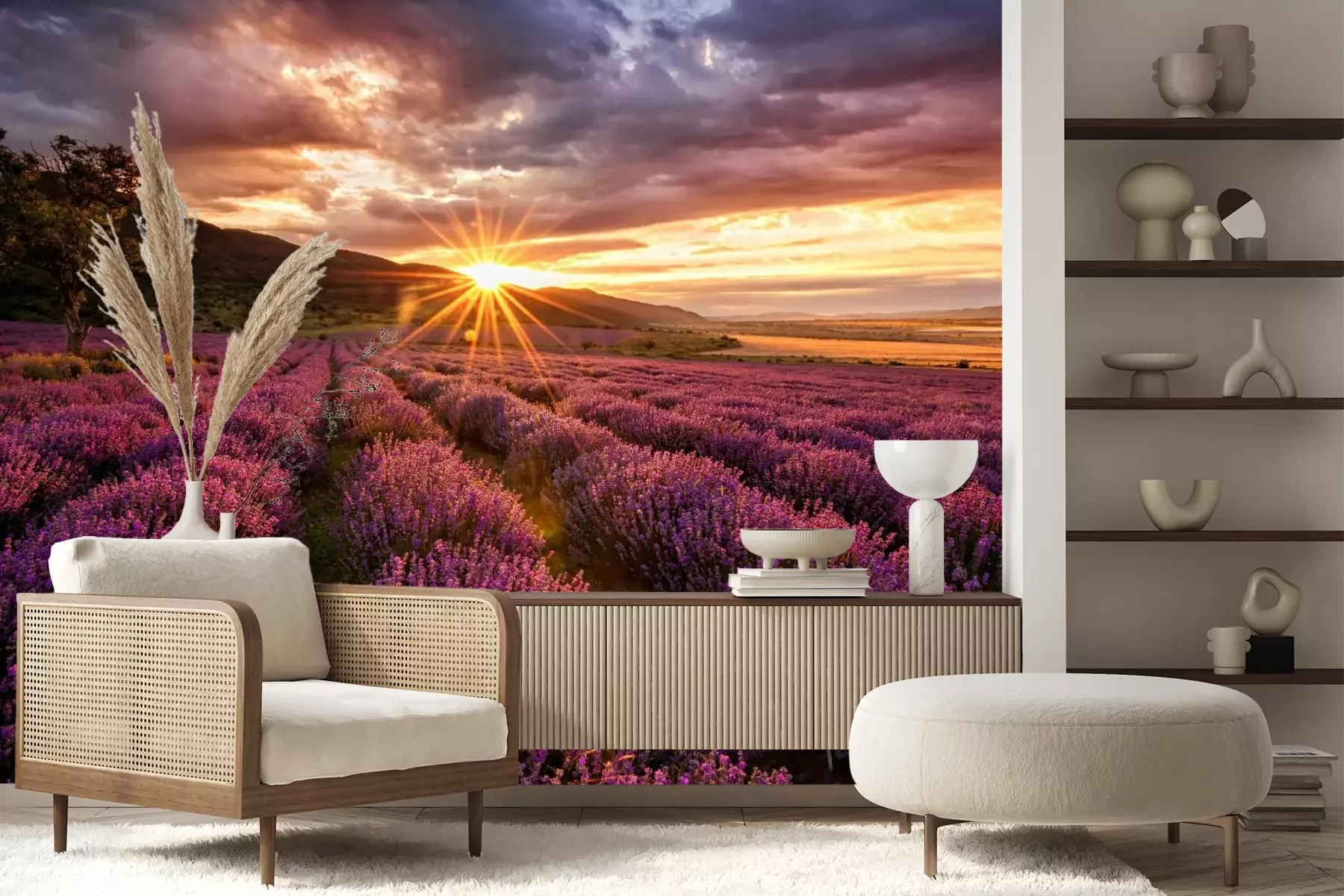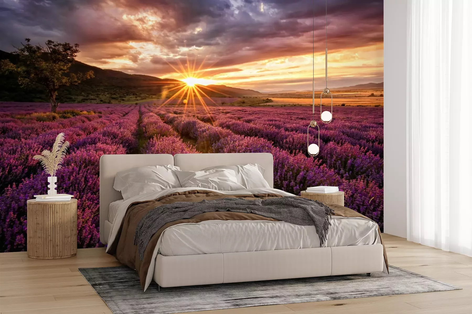 Zonsondergang boven een paars lavendelveldProbleemloze bezorging verzorgd door vertrouwde vervoerders