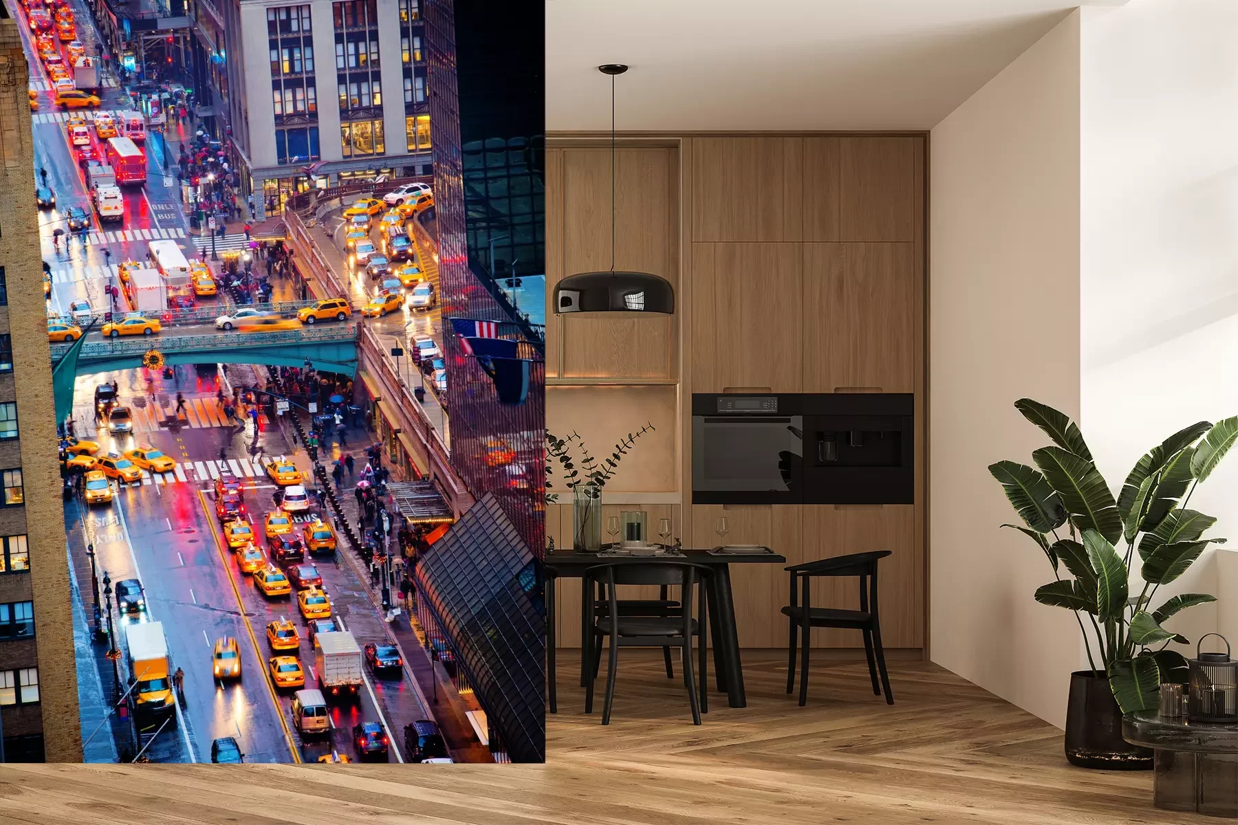 Het materiaal Premium is een glad vinyl op vlies, dat bestand is tegen uitrekken en vervorming. Het is dampdoorlatend – de muren kunnen vrij ademen – waardoor het geschikt is voor gebruik in de keuken en badkamer. Bij vervuiling kan het materiaal worden afgenomen met een vochtige doek. De maximale breedte van één baan bedraagt 95 of 105 cm, afhankelijk van de beschikbaarheid. Montage vindt plaats met de rand-aan-rand methode, wat een esthetisch resultaat zonder zichtbare naden oplevert. Omdat de lijm rechtstreeks op de muur wordt aangebracht, verloopt de installatie van het fotobehang snel en eenvoudig.
