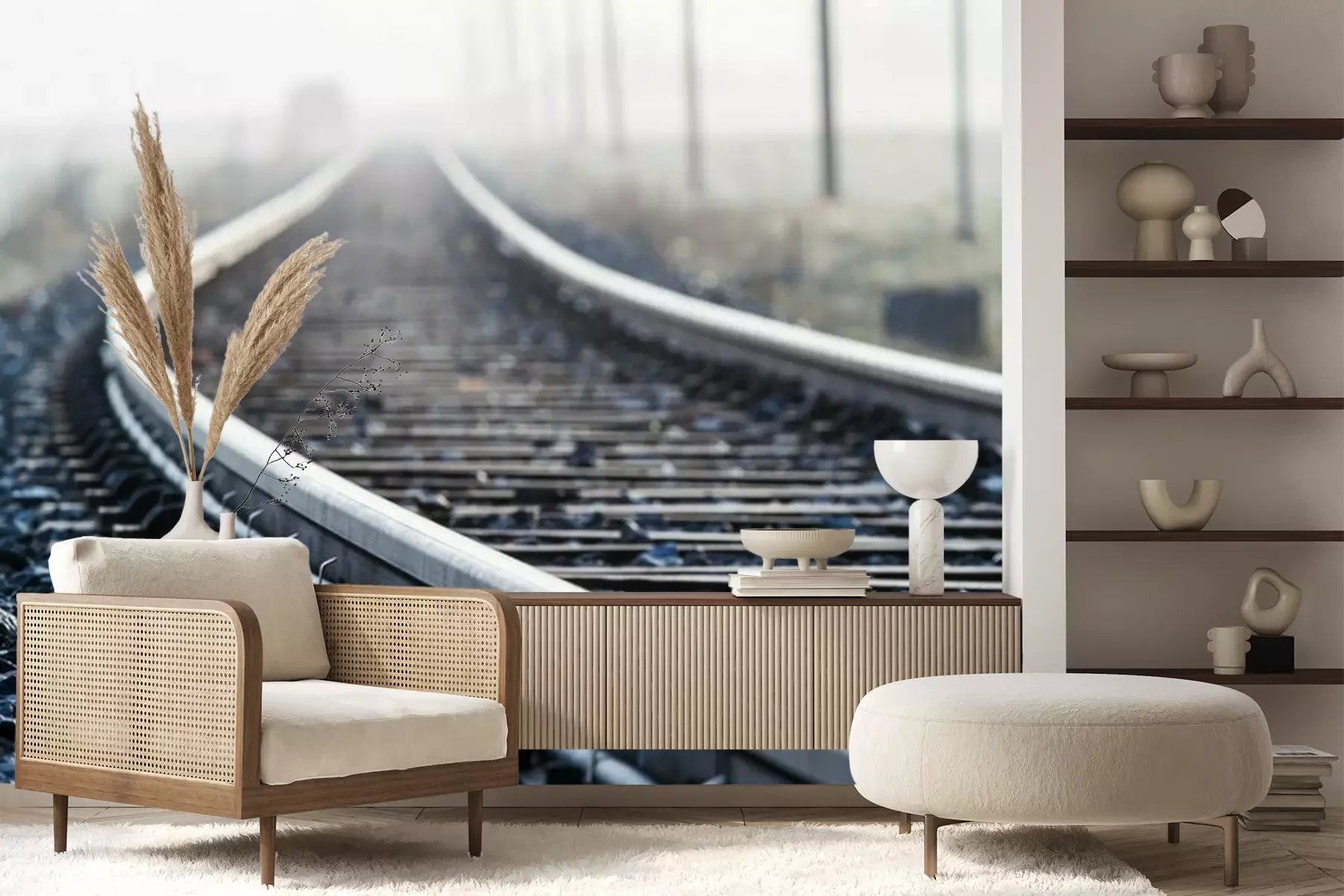 Het materiaal Premium+ is een gestructureerd vinyl op vlies met een gewicht van 255 g/m², dat kleine oneffenheden in de muur effectief camoufleert. De subtiele structuur van fijn zand geeft het oppervlak een exclusieve uitstraling, terwijl de halfmatte afwerking de diepte van de kleuren benadrukt. Het materiaal is dampdoorlatend, waardoor het ook in de keuken en badkamer kan worden gebruikt. De maximale breedte van één baan bedraagt 100 cm – bij grotere afmetingen wordt het fotobehang in meerdere gelijke banen verdeeld. De lijm wordt direct op de muur aangebracht en het behang wordt rand-aan-rand geplakt, wat zorgt voor een esthetisch resultaat zonder zichtbare naden. Het oppervlak kan gemakkelijk worden schoongemaakt door het voorzichtig af te nemen met een vochtige doek.