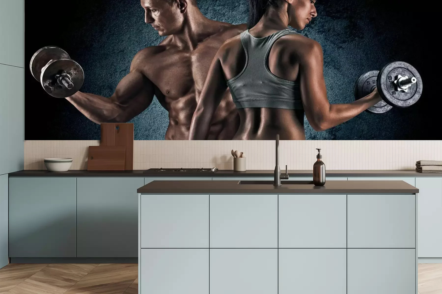 Het materiaal Premium is een glad vinyl op vlies, dat bestand is tegen uitrekken en vervorming. Het is dampdoorlatend – de muren kunnen vrij ademen – waardoor het geschikt is voor gebruik in de keuken en badkamer. Bij vervuiling kan het materiaal worden afgenomen met een vochtige doek. De maximale breedte van één baan bedraagt 95 of 105 cm, afhankelijk van de beschikbaarheid. Montage vindt plaats met de rand-aan-rand methode, wat een esthetisch resultaat zonder zichtbare naden oplevert. Omdat de lijm rechtstreeks op de muur wordt aangebracht, verloopt de installatie van het fotobehang snel en eenvoudig.