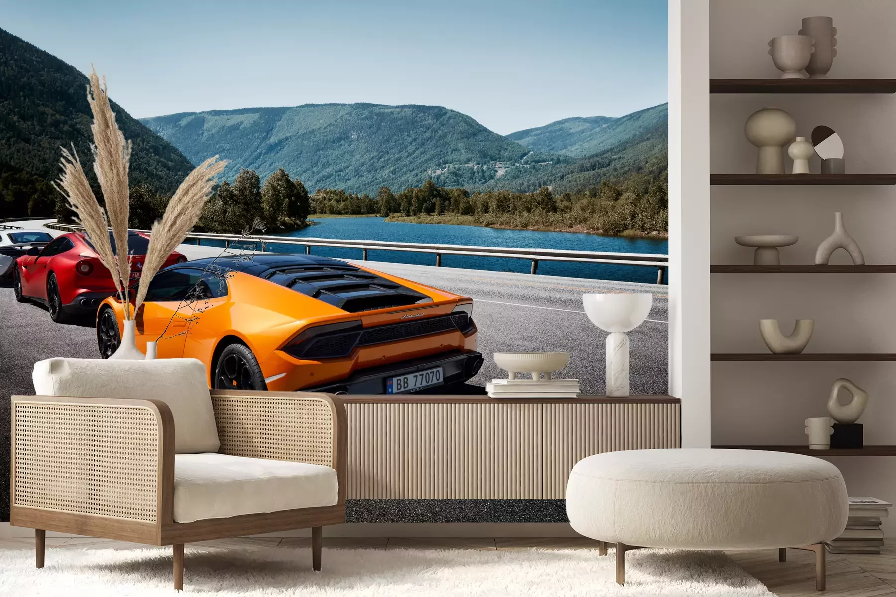 Het materiaal Premium+ is een gestructureerd vinyl op vlies met een gewicht van 255 g/m², dat kleine oneffenheden in de muur effectief camoufleert. De subtiele structuur van fijn zand geeft het oppervlak een exclusieve uitstraling, terwijl de halfmatte afwerking de diepte van de kleuren benadrukt. Het materiaal is dampdoorlatend, waardoor het ook in de keuken en badkamer kan worden gebruikt. De maximale breedte van één baan bedraagt 100 cm – bij grotere afmetingen wordt het fotobehang in meerdere gelijke banen verdeeld. De lijm wordt direct op de muur aangebracht en het behang wordt rand-aan-rand geplakt, wat zorgt voor een esthetisch resultaat zonder zichtbare naden. Het oppervlak kan gemakkelijk worden schoongemaakt door het voorzichtig af te nemen met een vochtige doek.