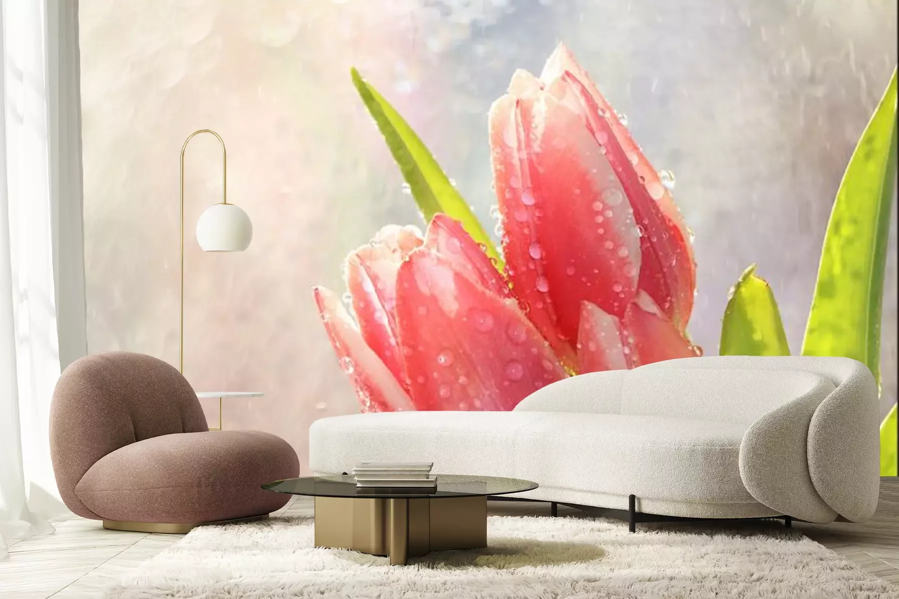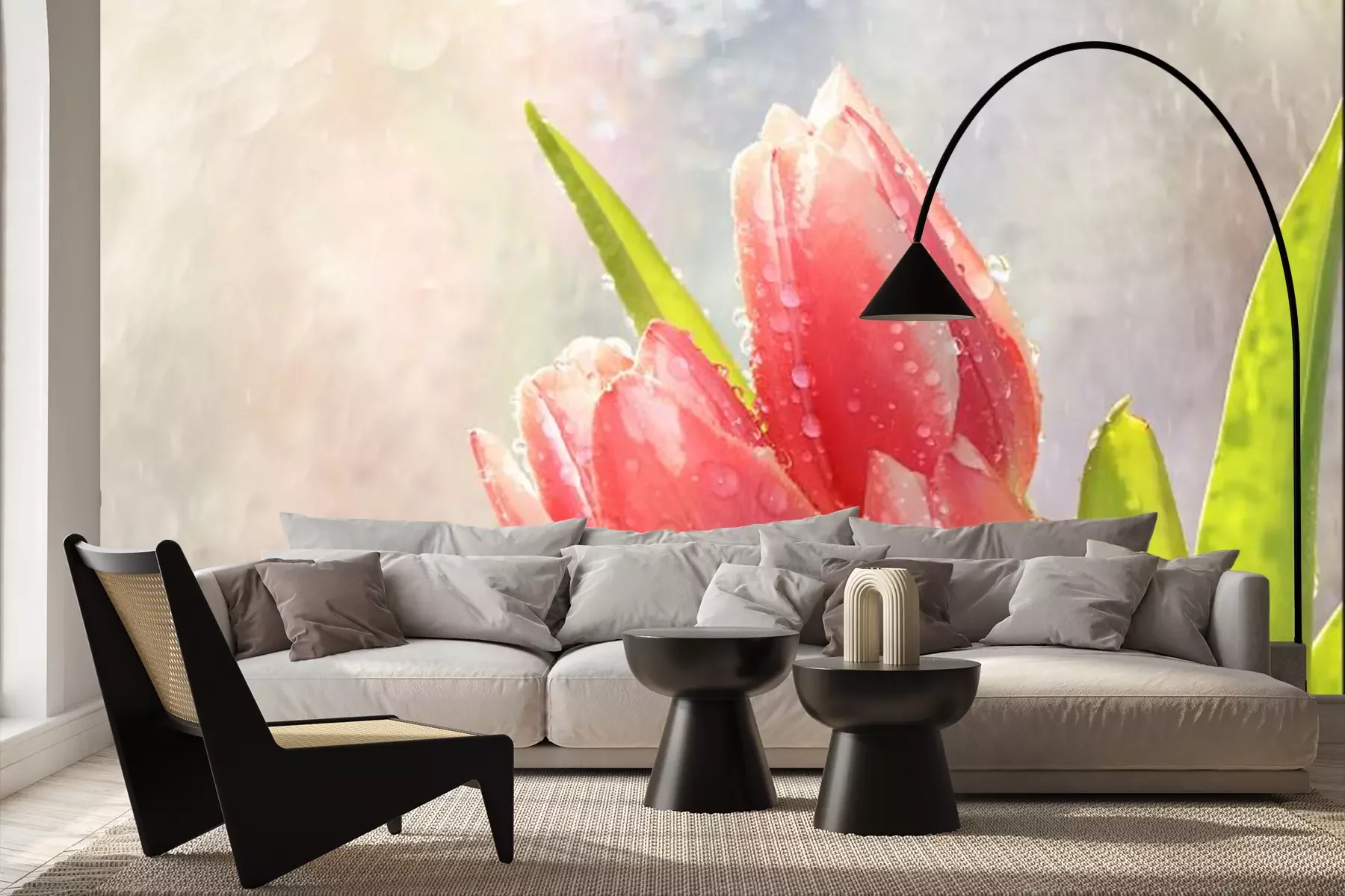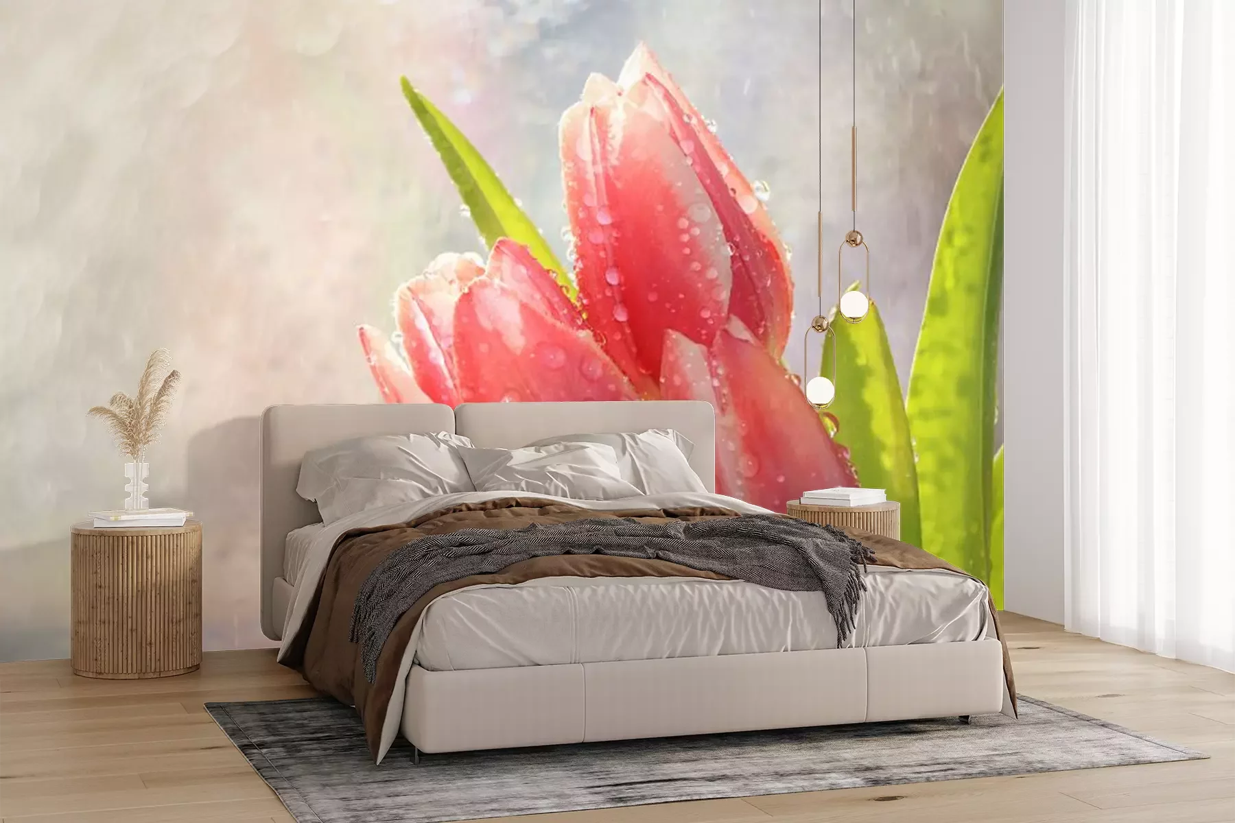 Het materiaal Premium+ is een gestructureerd vinyl op vlies met een gewicht van 255 g/m², dat kleine oneffenheden in de muur effectief camoufleert. De subtiele structuur van fijn zand geeft het oppervlak een exclusieve uitstraling, terwijl de halfmatte afwerking de diepte van de kleuren benadrukt. Het materiaal is dampdoorlatend, waardoor het ook in de keuken en badkamer kan worden gebruikt. De maximale breedte van één baan bedraagt 100 cm – bij grotere afmetingen wordt het fotobehang in meerdere gelijke banen verdeeld. De lijm wordt direct op de muur aangebracht en het behang wordt rand-aan-rand geplakt, wat zorgt voor een esthetisch resultaat zonder zichtbare naden. Het oppervlak kan gemakkelijk worden schoongemaakt door het voorzichtig af te nemen met een vochtige doek.