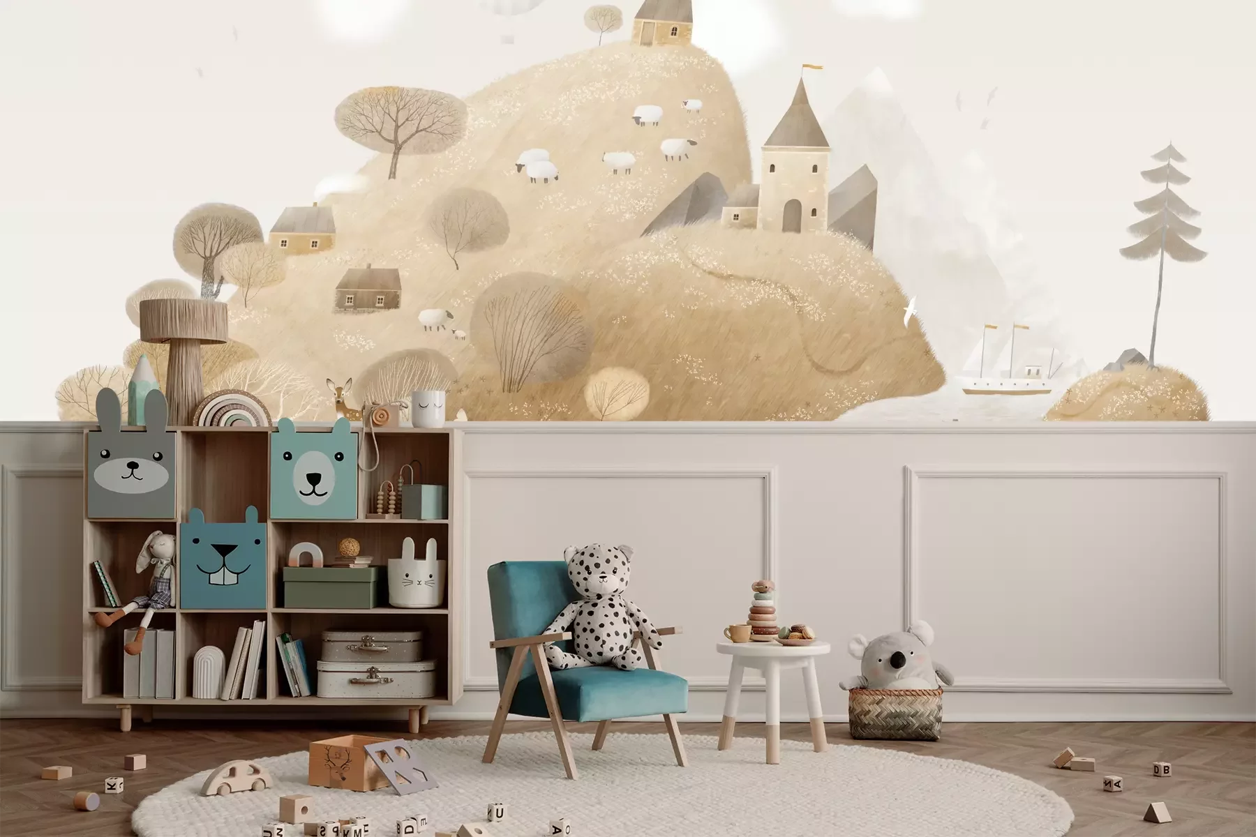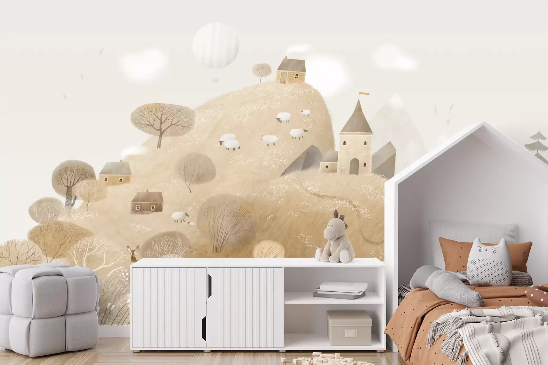 Het materiaal Premium+ is een gestructureerd vinyl op vlies met een gewicht van 255 g/m², dat kleine oneffenheden in de muur effectief camoufleert. De subtiele structuur van fijn zand geeft het oppervlak een exclusieve uitstraling, terwijl de halfmatte afwerking de diepte van de kleuren benadrukt. Het materiaal is dampdoorlatend, waardoor het ook in de keuken en badkamer kan worden gebruikt. De maximale breedte van één baan bedraagt 100 cm – bij grotere afmetingen wordt het fotobehang in meerdere gelijke banen verdeeld. De lijm wordt direct op de muur aangebracht en het behang wordt rand-aan-rand geplakt, wat zorgt voor een esthetisch resultaat zonder zichtbare naden. Het oppervlak kan gemakkelijk worden schoongemaakt door het voorzichtig af te nemen met een vochtige doek.