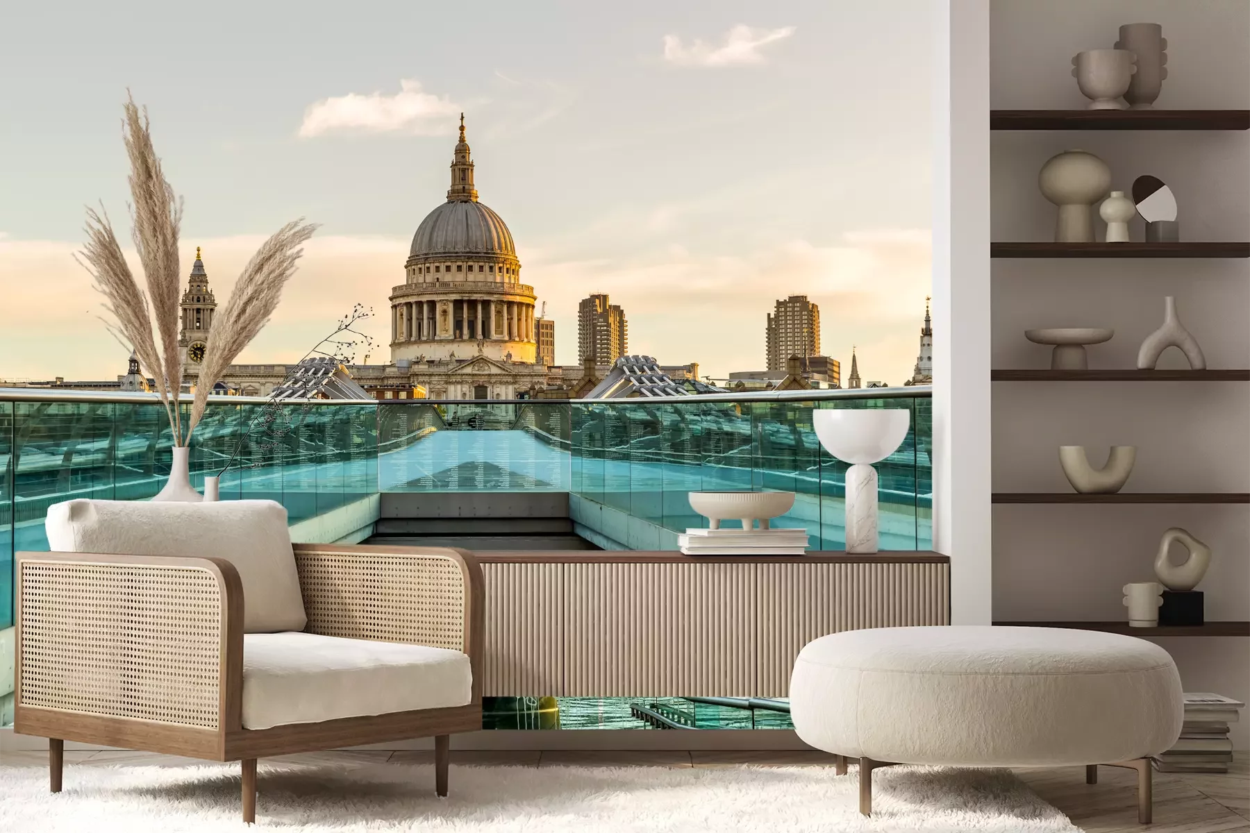 Het materiaal Premium+ is een gestructureerd vinyl op vlies met een gewicht van 255 g/m², dat kleine oneffenheden in de muur effectief camoufleert. De subtiele structuur van fijn zand geeft het oppervlak een exclusieve uitstraling, terwijl de halfmatte afwerking de diepte van de kleuren benadrukt. Het materiaal is dampdoorlatend, waardoor het ook in de keuken en badkamer kan worden gebruikt. De maximale breedte van één baan bedraagt 100 cm – bij grotere afmetingen wordt het fotobehang in meerdere gelijke banen verdeeld. De lijm wordt direct op de muur aangebracht en het behang wordt rand-aan-rand geplakt, wat zorgt voor een esthetisch resultaat zonder zichtbare naden. Het oppervlak kan gemakkelijk worden schoongemaakt door het voorzichtig af te nemen met een vochtige doek.