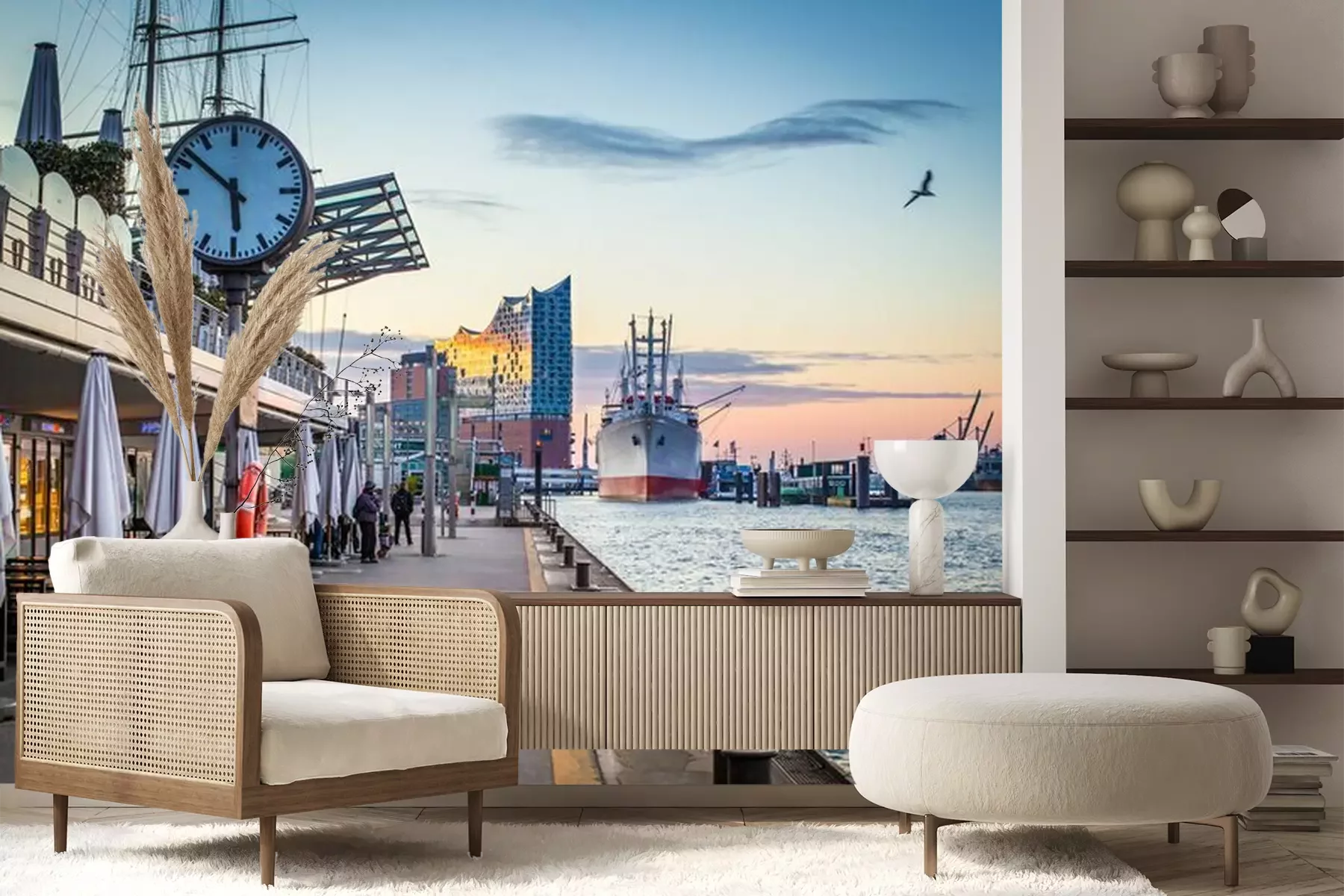 Het materiaal Premium+ is een gestructureerd vinyl op vlies met een gewicht van 255 g/m², dat kleine oneffenheden in de muur effectief camoufleert. De subtiele structuur van fijn zand geeft het oppervlak een exclusieve uitstraling, terwijl de halfmatte afwerking de diepte van de kleuren benadrukt. Het materiaal is dampdoorlatend, waardoor het ook in de keuken en badkamer kan worden gebruikt. De maximale breedte van één baan bedraagt 100 cm – bij grotere afmetingen wordt het fotobehang in meerdere gelijke banen verdeeld. De lijm wordt direct op de muur aangebracht en het behang wordt rand-aan-rand geplakt, wat zorgt voor een esthetisch resultaat zonder zichtbare naden. Het oppervlak kan gemakkelijk worden schoongemaakt door het voorzichtig af te nemen met een vochtige doek.