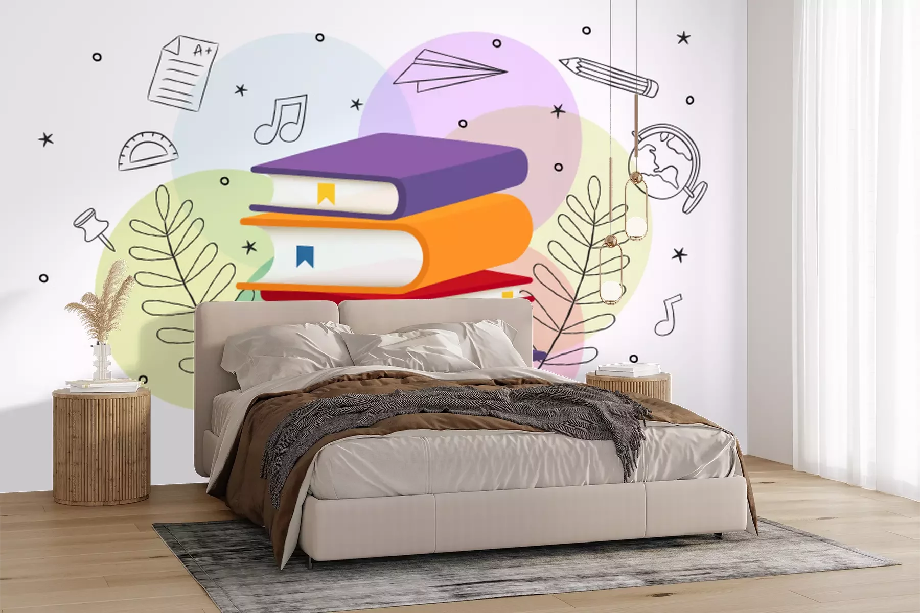 Fotobehang Stapel kleurrijke boeken - leerconcept