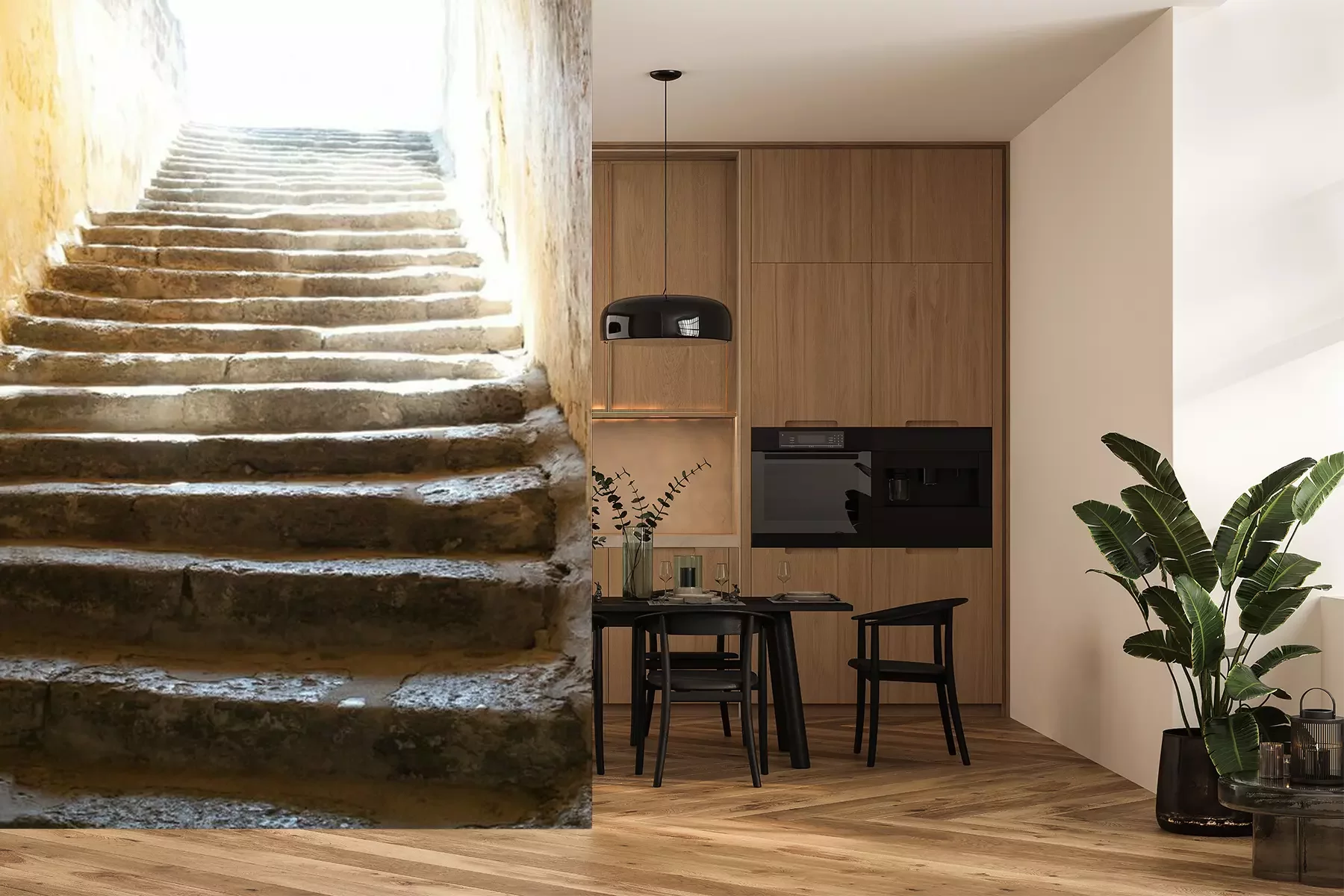 Het materiaal Premium+ is een gestructureerd vinyl op vlies met een gewicht van 255 g/m², dat kleine oneffenheden in de muur effectief camoufleert. De subtiele structuur van fijn zand geeft het oppervlak een exclusieve uitstraling, terwijl de halfmatte afwerking de diepte van de kleuren benadrukt. Het materiaal is dampdoorlatend, waardoor het ook in de keuken en badkamer kan worden gebruikt. De maximale breedte van één baan bedraagt 100 cm – bij grotere afmetingen wordt het fotobehang in meerdere gelijke banen verdeeld. De lijm wordt direct op de muur aangebracht en het behang wordt rand-aan-rand geplakt, wat zorgt voor een esthetisch resultaat zonder zichtbare naden. Het oppervlak kan gemakkelijk worden schoongemaakt door het voorzichtig af te nemen met een vochtige doek.