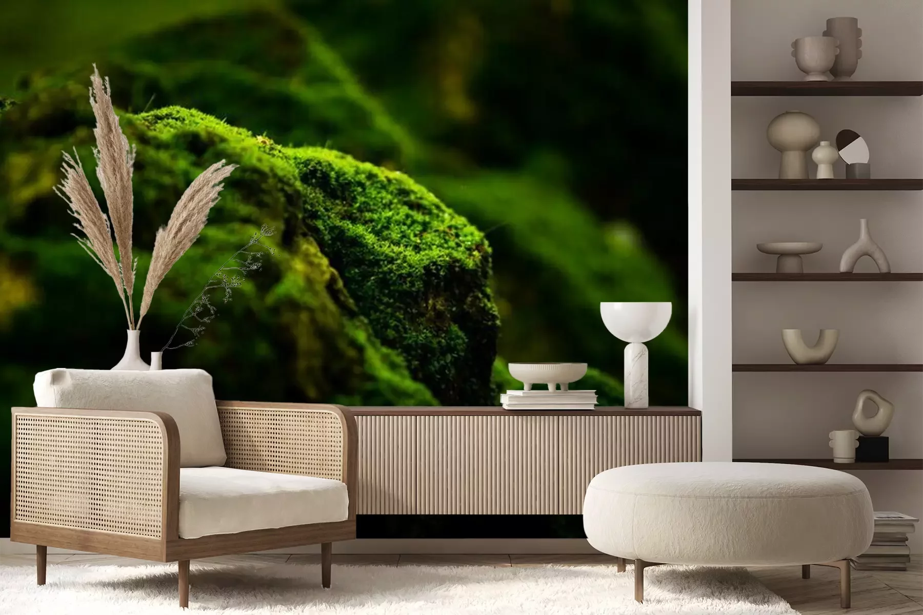 Fotobehang Stenen bedekt met mos