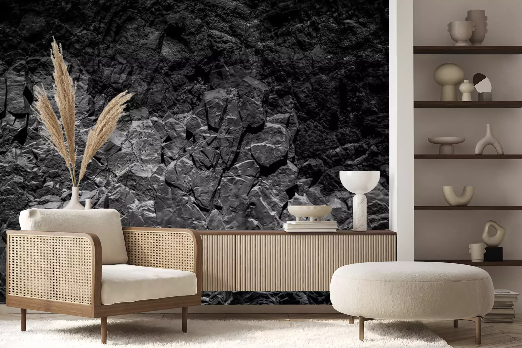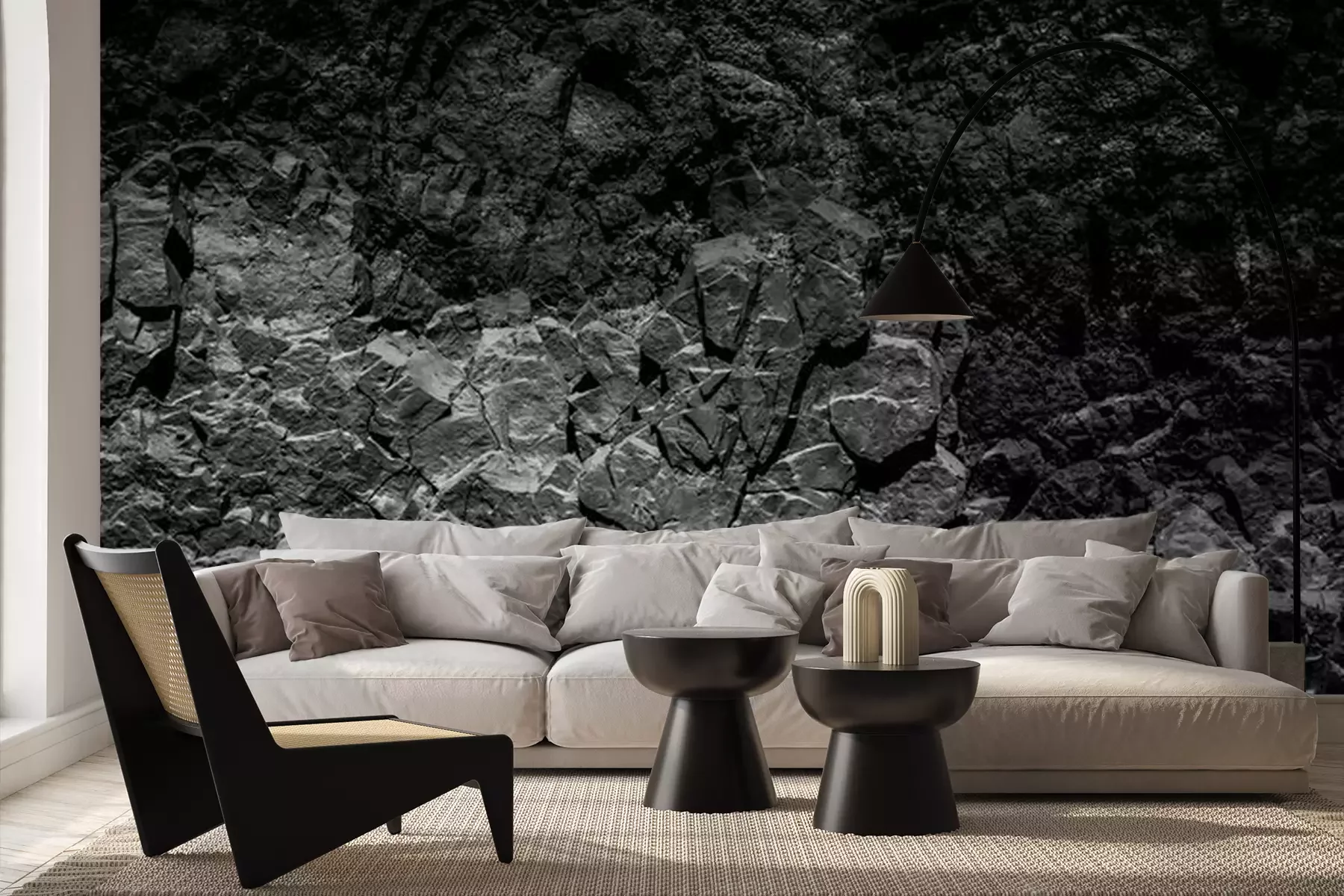 Het materiaal Premium+ is een gestructureerd vinyl op vlies met een gewicht van 255 g/m², dat kleine oneffenheden in de muur effectief camoufleert. De subtiele structuur van fijn zand geeft het oppervlak een exclusieve uitstraling, terwijl de halfmatte afwerking de diepte van de kleuren benadrukt. Het materiaal is dampdoorlatend, waardoor het ook in de keuken en badkamer kan worden gebruikt. De maximale breedte van één baan bedraagt 100 cm – bij grotere afmetingen wordt het fotobehang in meerdere gelijke banen verdeeld. De lijm wordt direct op de muur aangebracht en het behang wordt rand-aan-rand geplakt, wat zorgt voor een esthetisch resultaat zonder zichtbare naden. Het oppervlak kan gemakkelijk worden schoongemaakt door het voorzichtig af te nemen met een vochtige doek.