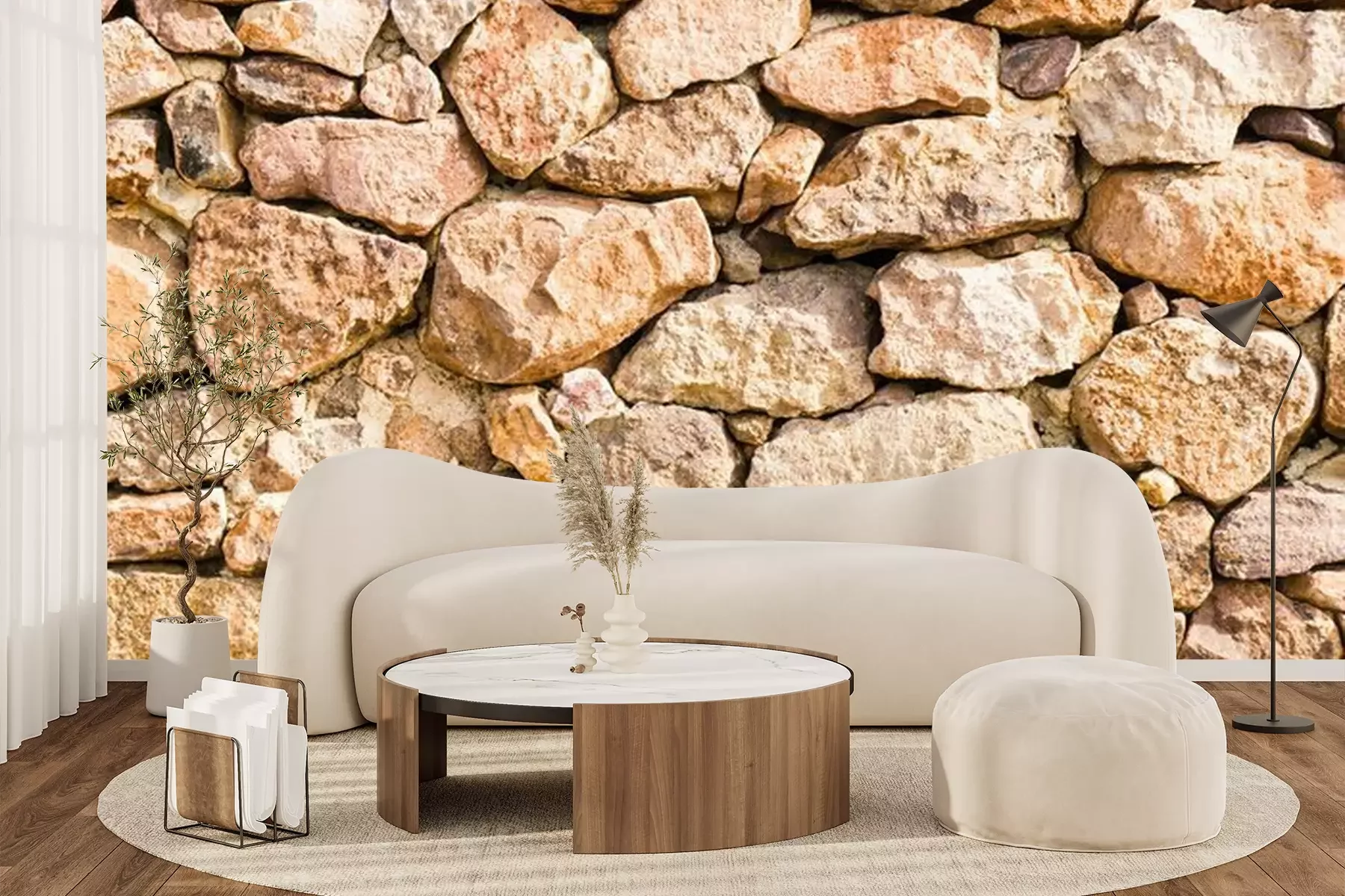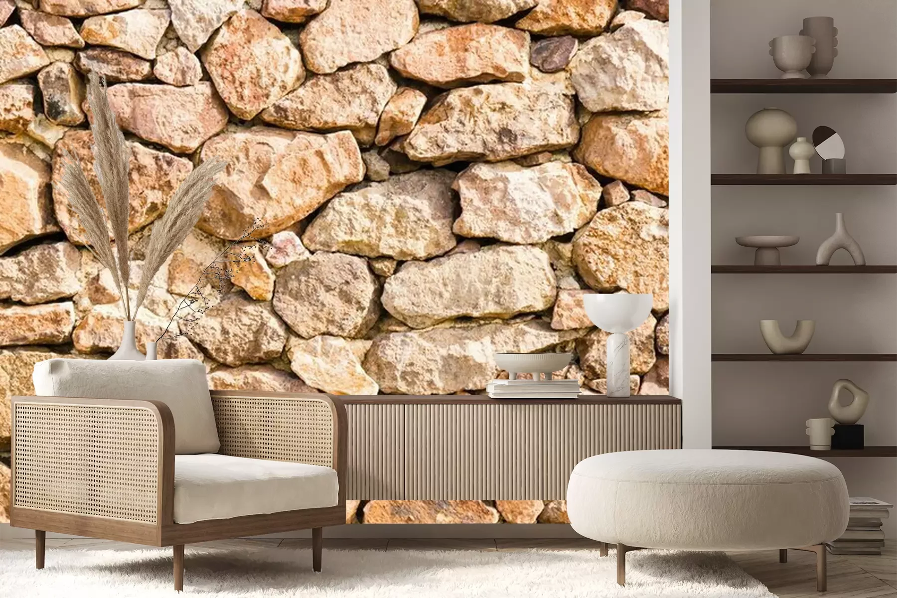 Fotobehang Stenen muur van onregelmatige stenen