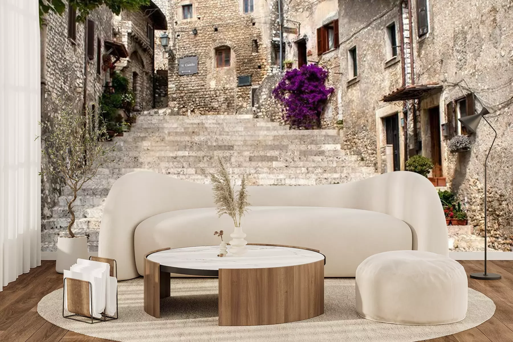Het materiaal Premium+ is een gestructureerd vinyl op vlies met een gewicht van 255 g/m², dat kleine oneffenheden in de muur effectief camoufleert. De subtiele structuur van fijn zand geeft het oppervlak een exclusieve uitstraling, terwijl de halfmatte afwerking de diepte van de kleuren benadrukt. Het materiaal is dampdoorlatend, waardoor het ook in de keuken en badkamer kan worden gebruikt. De maximale breedte van één baan bedraagt 100 cm – bij grotere afmetingen wordt het fotobehang in meerdere gelijke banen verdeeld. De lijm wordt direct op de muur aangebracht en het behang wordt rand-aan-rand geplakt, wat zorgt voor een esthetisch resultaat zonder zichtbare naden. Het oppervlak kan gemakkelijk worden schoongemaakt door het voorzichtig af te nemen met een vochtige doek.