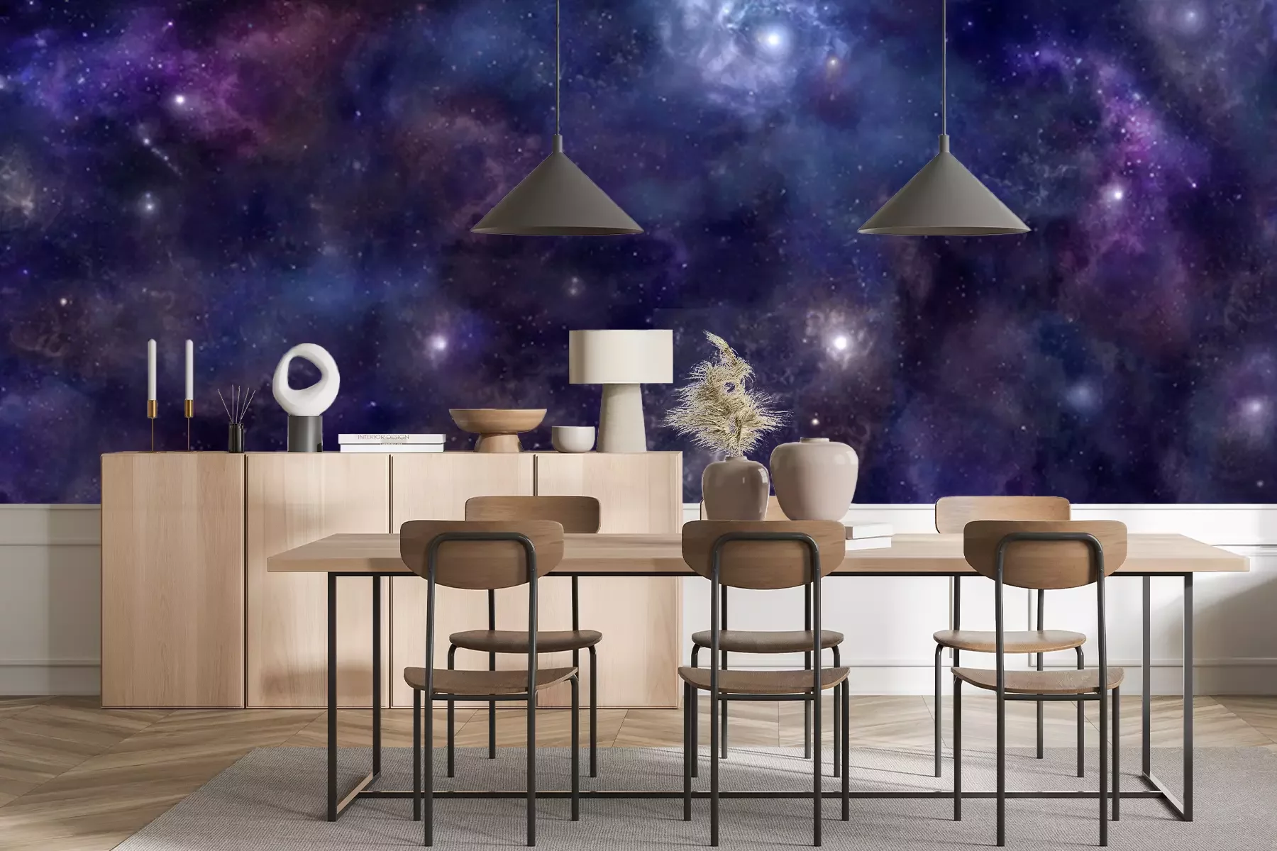Het materiaal Standard is een hoogwaardig latexmateriaal met een glad, mat oppervlak. Dankzij de HP Latex-printtechnologie zijn de kleuren intens, duurzaam en UV-bestendig, waardoor het patroon jarenlang een onberispelijke uitstraling behoudt. Vervuilde oppervlakken kunnen voorzichtig worden afgeveegd met een droge doek. De maximale breedte van één baan bedraagt 95 cm of 105 cm – afhankelijk van de bestelde fotobehangbreedte. Bij grotere afmetingen wordt het patroon verdeeld over meerdere gelijkmatige banen. Het fotobehang wordt rand-aan-randaangebracht, wat vrijwel onzichtbare naden mogelijk maakt.