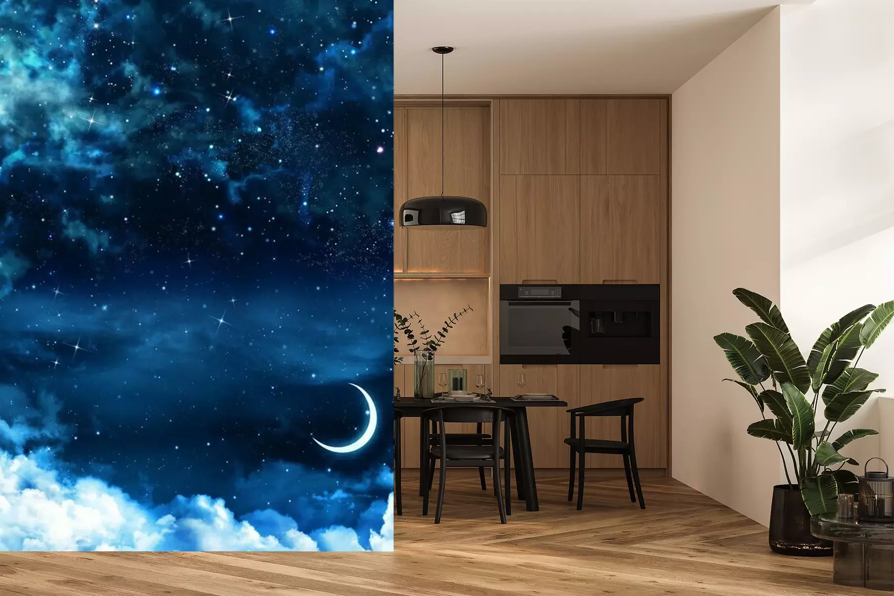 Het materiaal Premium+ is een gestructureerd vinyl op vlies met een gewicht van 255 g/m², dat kleine oneffenheden in de muur effectief camoufleert. De subtiele structuur van fijn zand geeft het oppervlak een exclusieve uitstraling, terwijl de halfmatte afwerking de diepte van de kleuren benadrukt. Het materiaal is dampdoorlatend, waardoor het ook in de keuken en badkamer kan worden gebruikt. De maximale breedte van één baan bedraagt 100 cm – bij grotere afmetingen wordt het fotobehang in meerdere gelijke banen verdeeld. De lijm wordt direct op de muur aangebracht en het behang wordt rand-aan-rand geplakt, wat zorgt voor een esthetisch resultaat zonder zichtbare naden. Het oppervlak kan gemakkelijk worden schoongemaakt door het voorzichtig af te nemen met een vochtige doek.