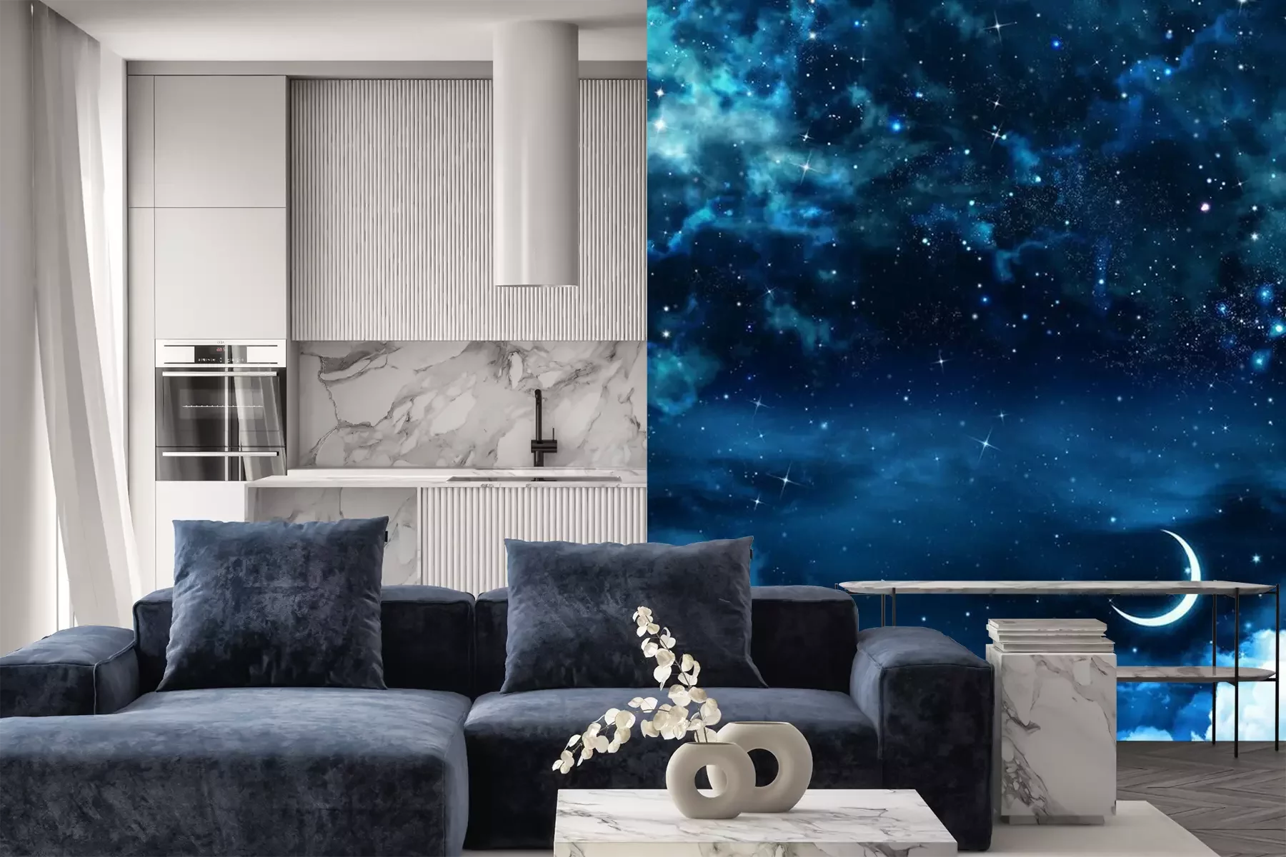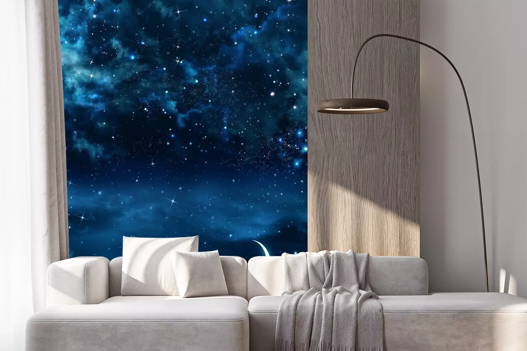 Een sterrenstelsel in tinten blauw en paarsProbleemloze bezorging verzorgd door vertrouwde vervoerders
